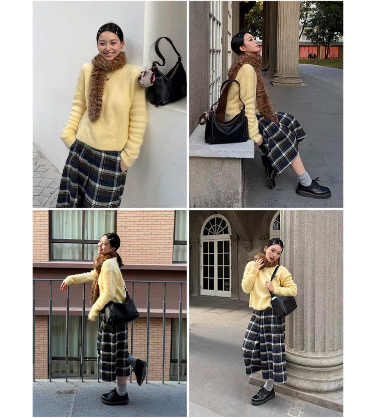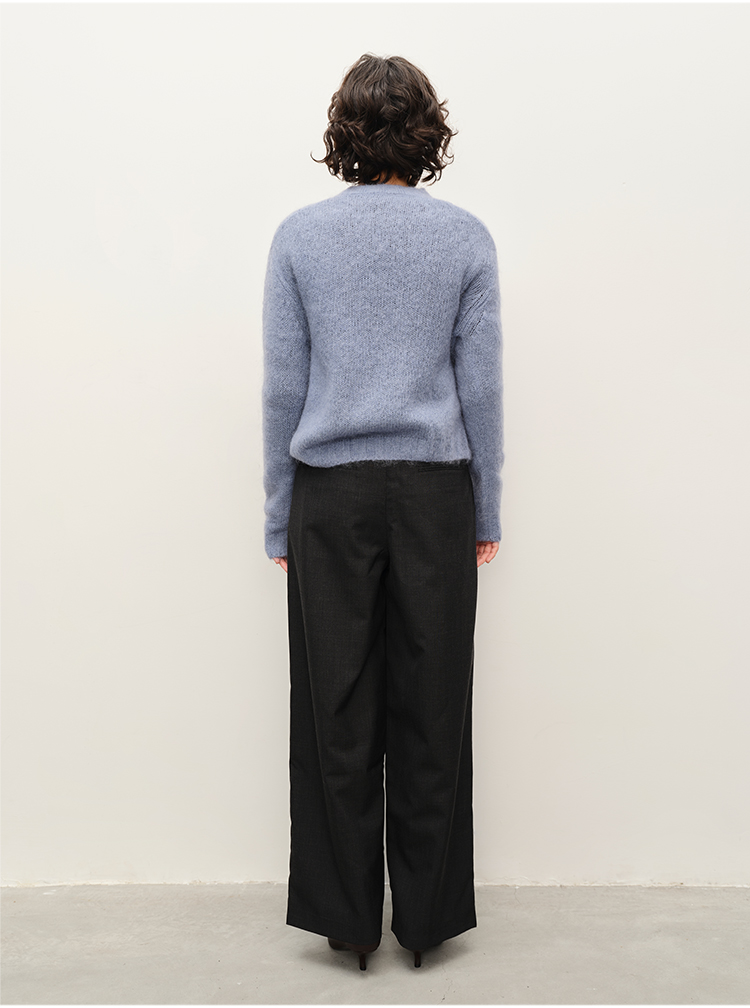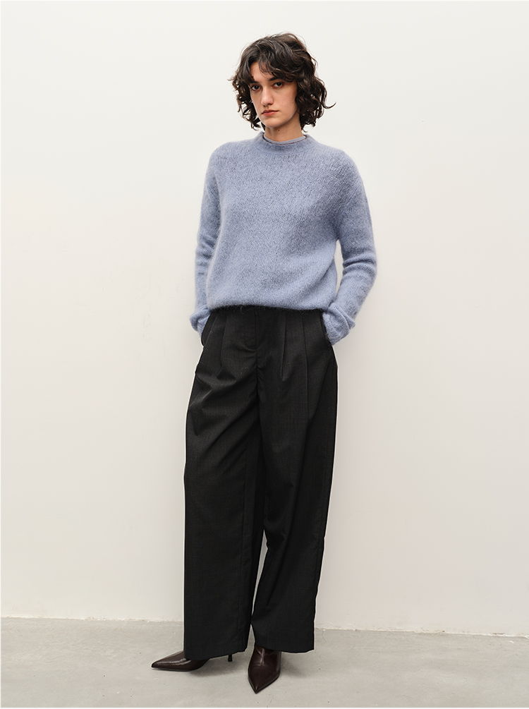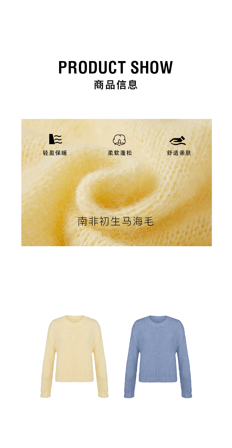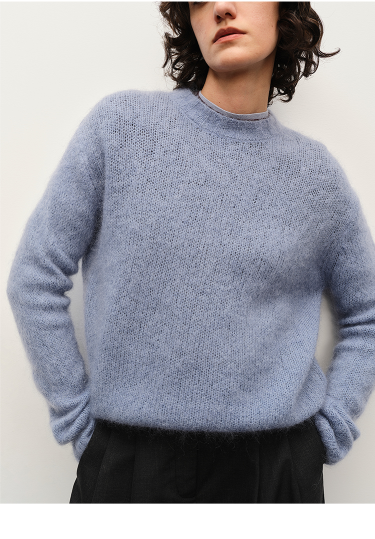 HIDEMI 南非初生马海毛粗针圆领毛衣