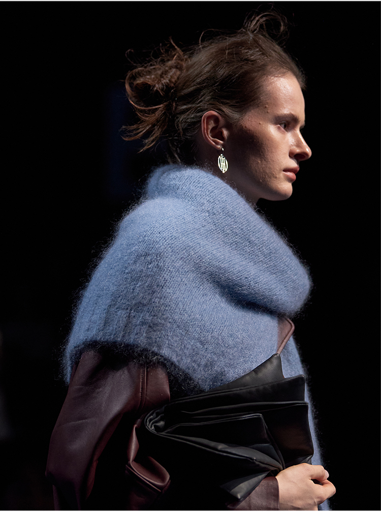 HIDEMI 美利奴羊毛斜门襟设计感开衫