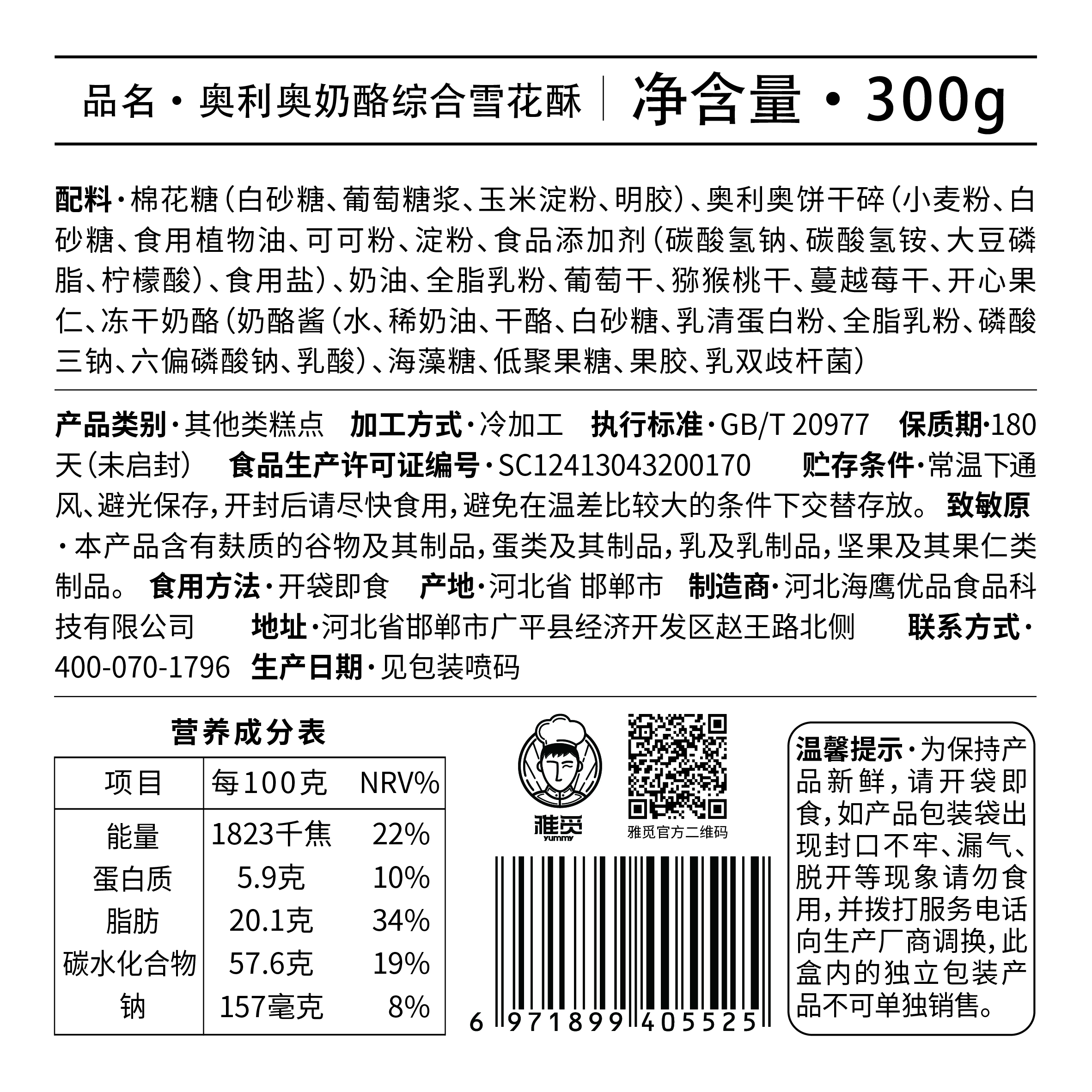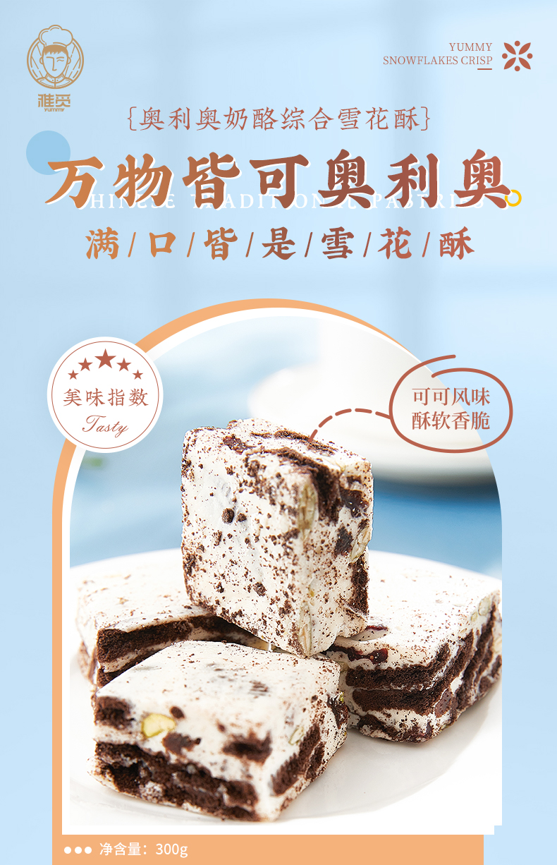 雅觅 奥利奥奶酪综合雪花酥300g 15枚 网红手工零食休闲牛轧小吃食品