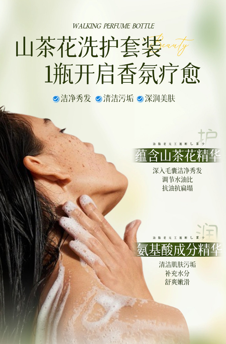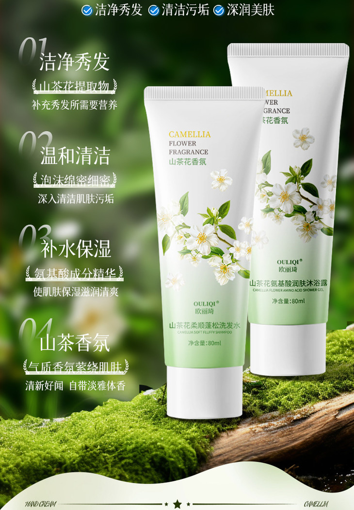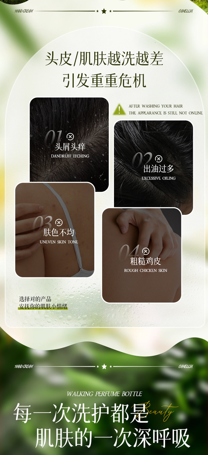 【山茶花沐浴露洗发水套装】去屑蓬松持久留香家用洗护套装旅行便携