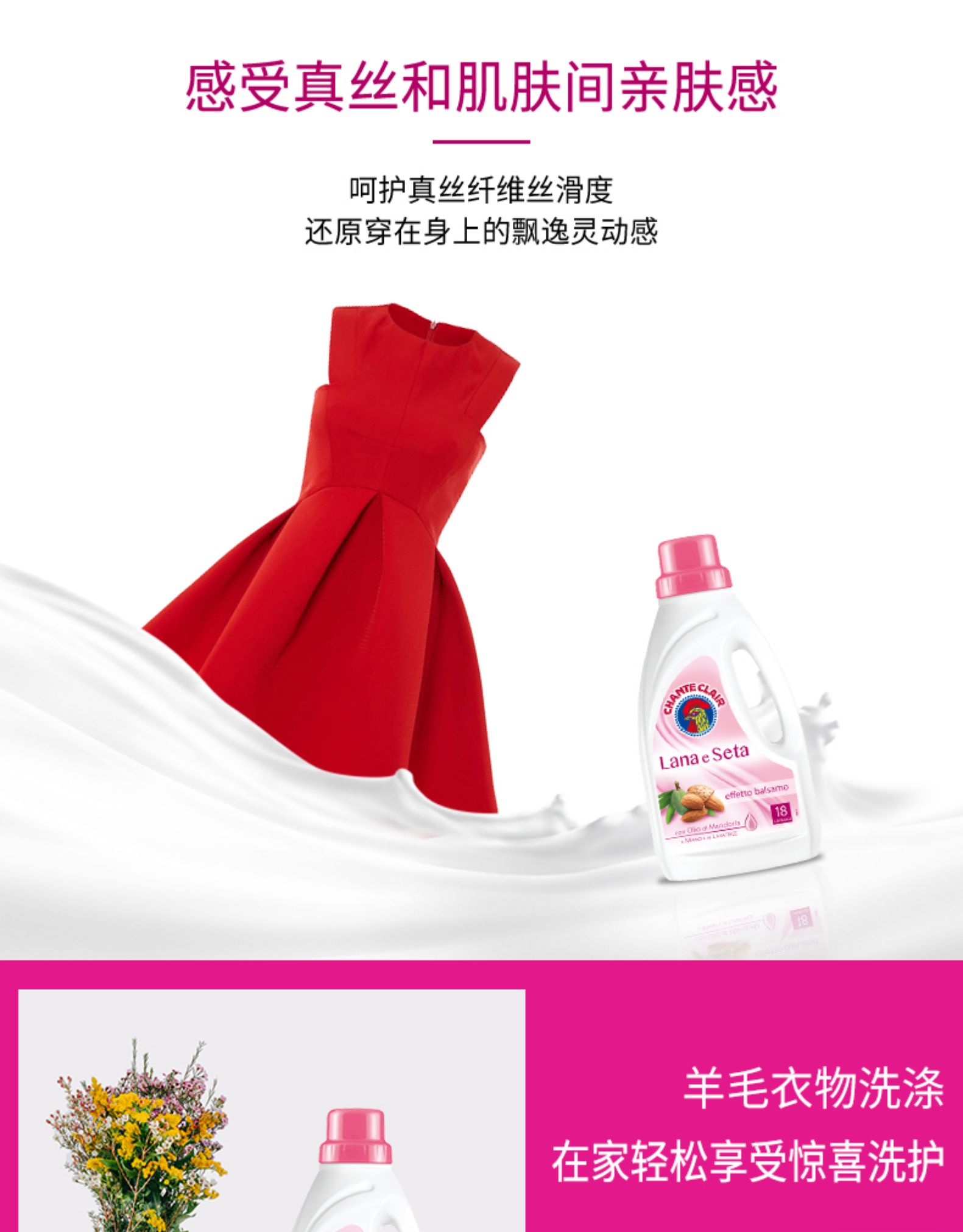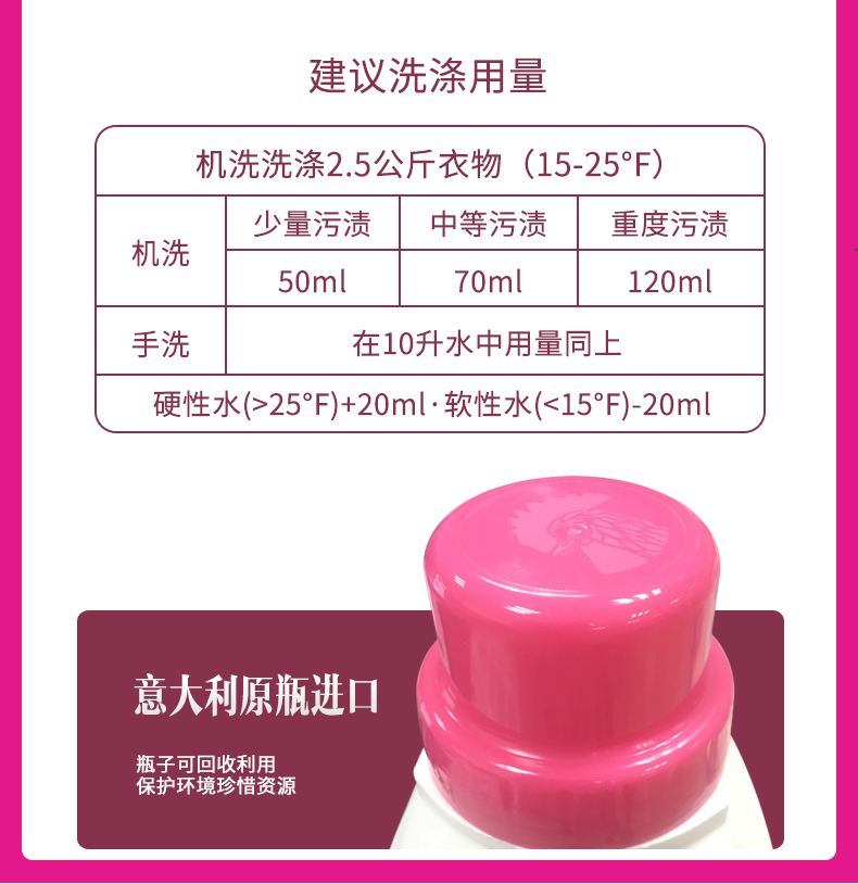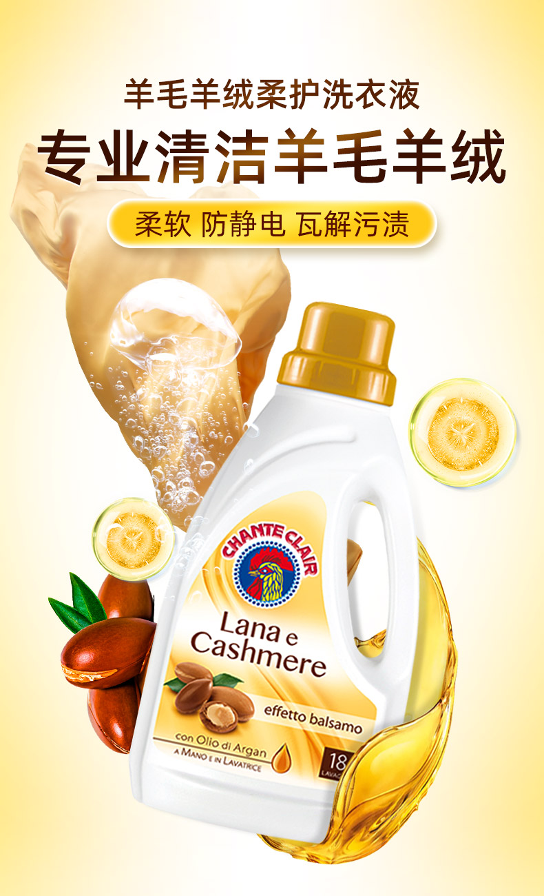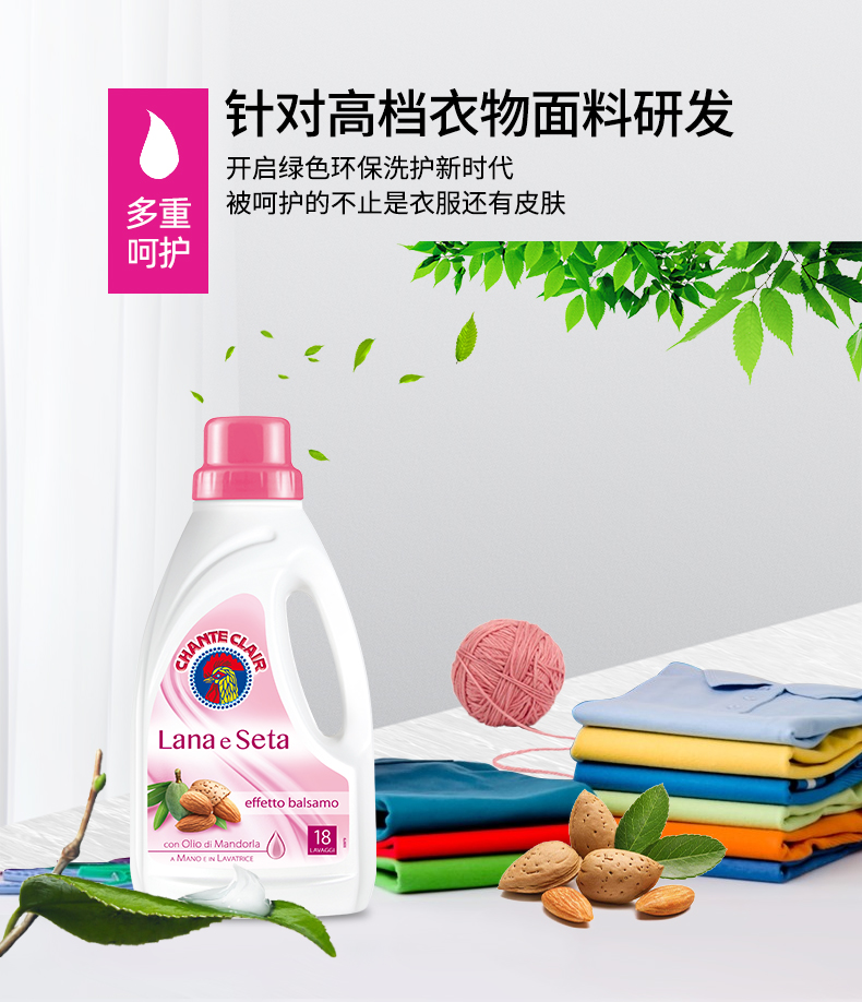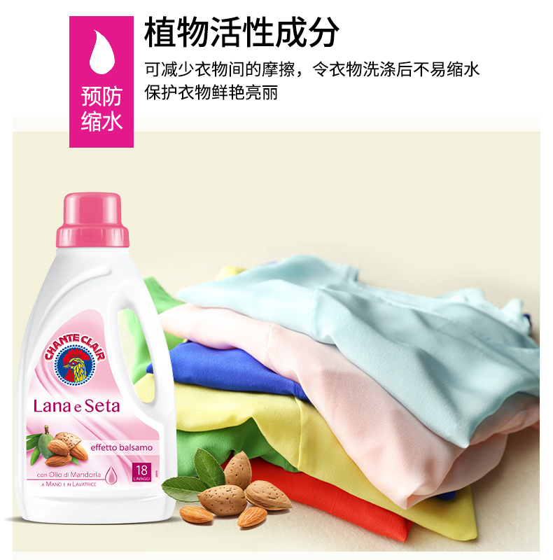 【中欧班列精选2瓶】意大利洗衣液 大公鸡管家羊毛羊绒柔护/亮彩护色/丝绸真丝衣物/运动/洗衣液900ml