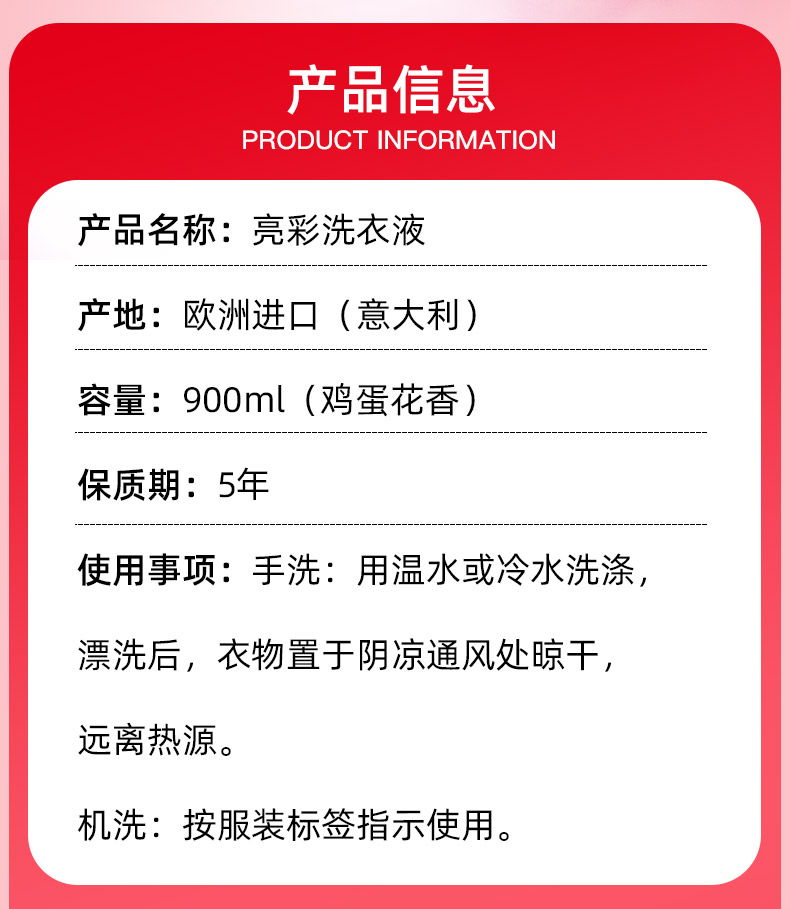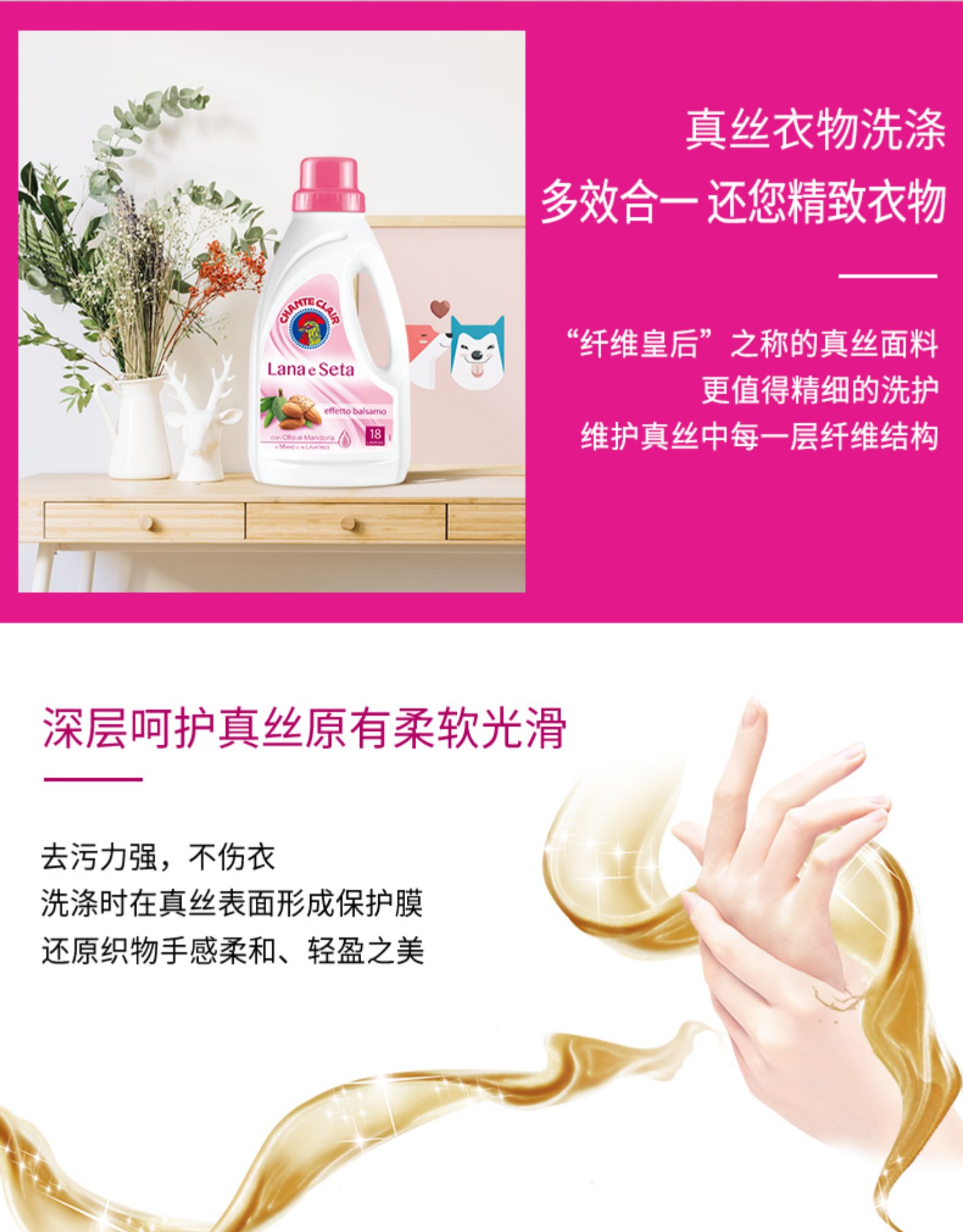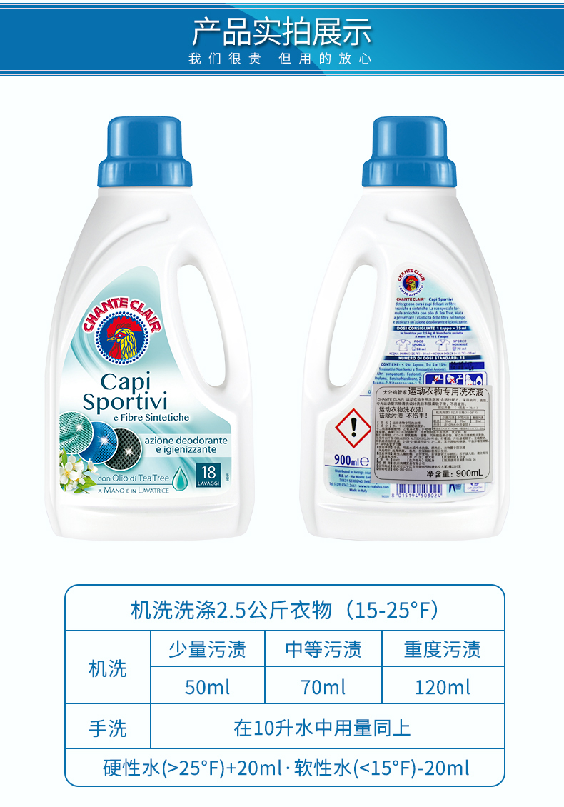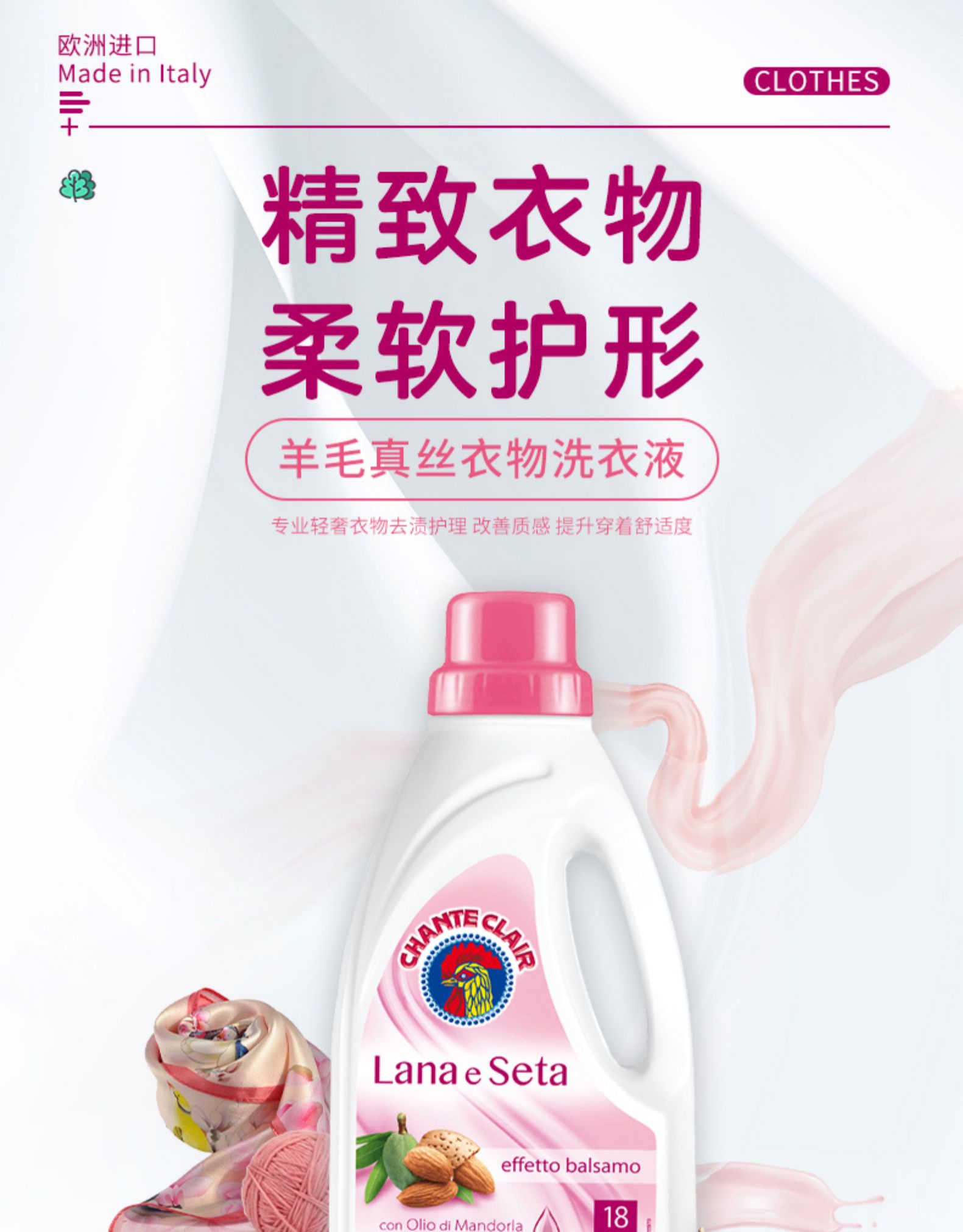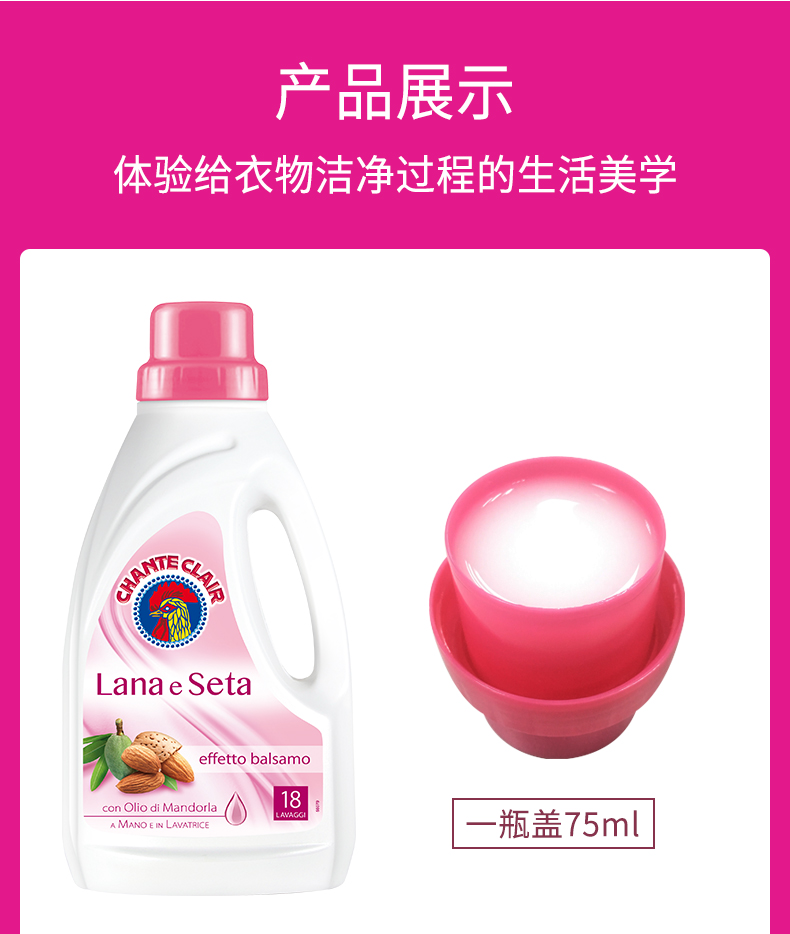 【中欧班列精选2瓶】意大利洗衣液 大公鸡管家羊毛羊绒柔护/亮彩护色/丝绸真丝衣物/运动/洗衣液900ml