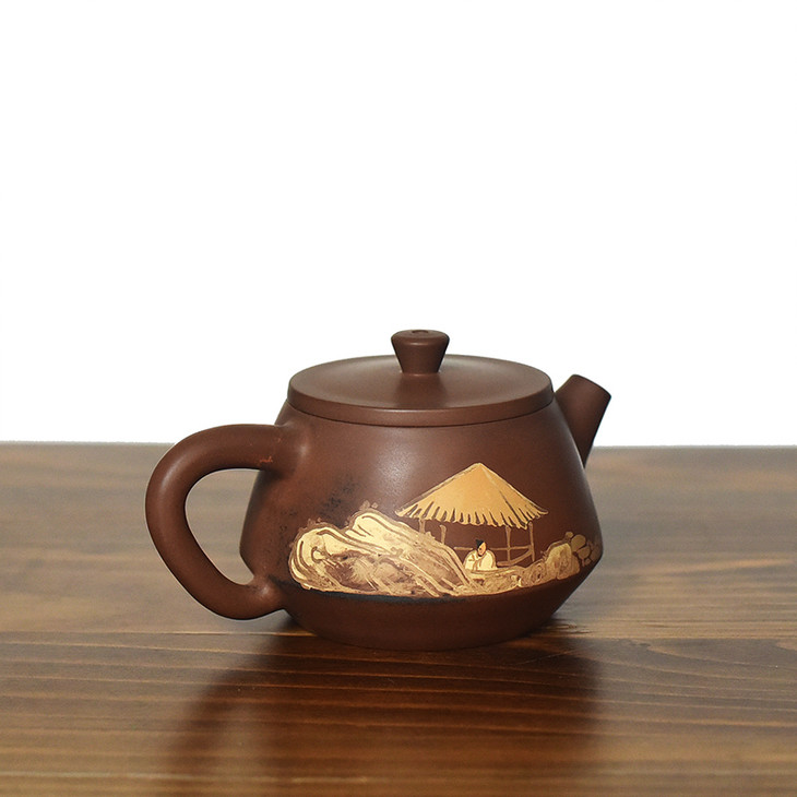 三金,本名李鑫,启正陶社社员,2010年在朝阳楼跟随半根先生学习制壶。三金制陶随性而发,平淡天真,器型古朴,装饰淡雅,常作闲人、傻鱼、呆僧图饰······生趣盎然。制陶应是玩,不作高态,能让喜欢的人观之用之心生愉悦,便是乐事。虽有不足,但制陶路漫漫,坚持下去,必有所收获。