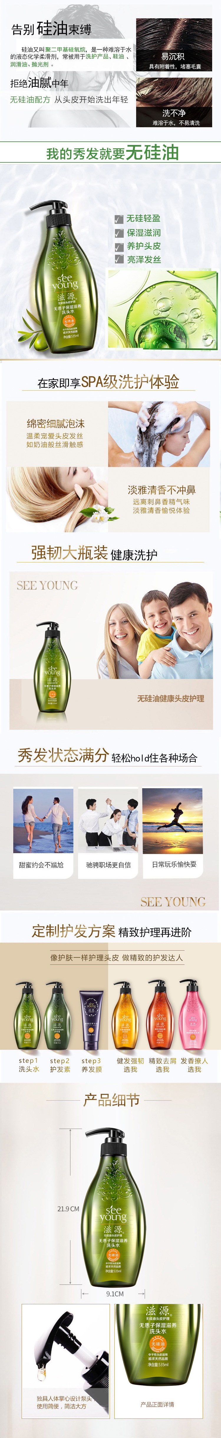 滋源无患子洗发水 无硅油保湿滋养洗发露洗头膏535ml(补水保湿 抚平干枯毛躁 温和清洁 男女士 中干性)