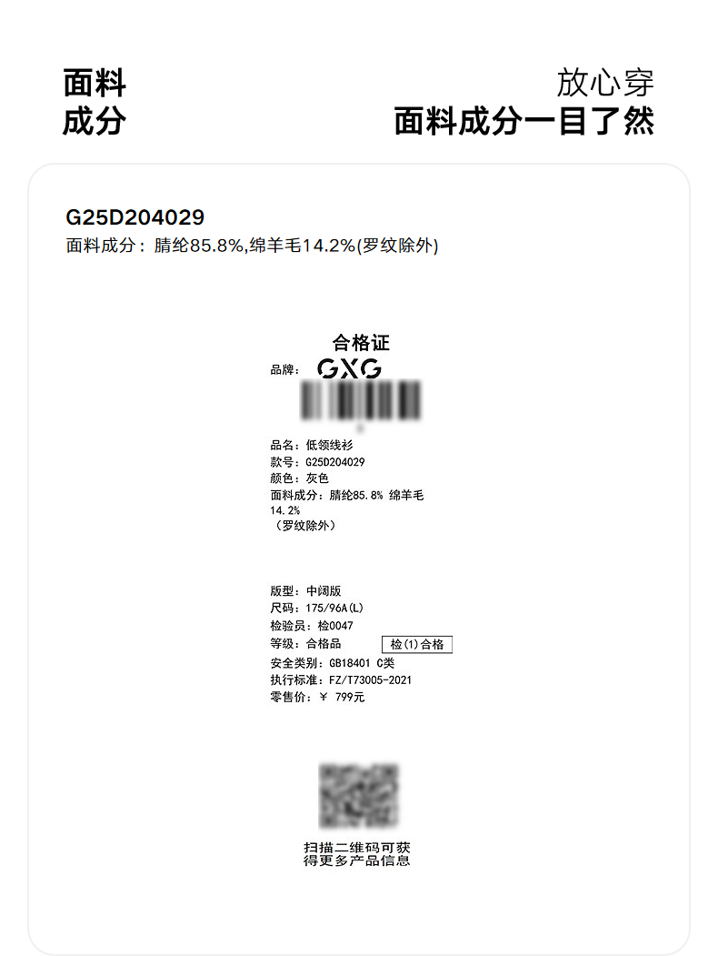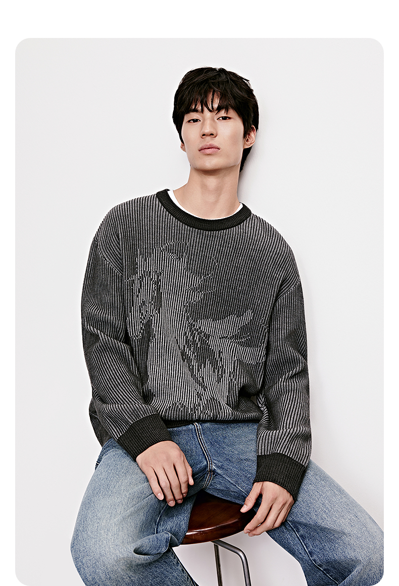 GXG男装 双色字母提花毛衫宽松针织衫男低领打底衫 2024秋季热卖