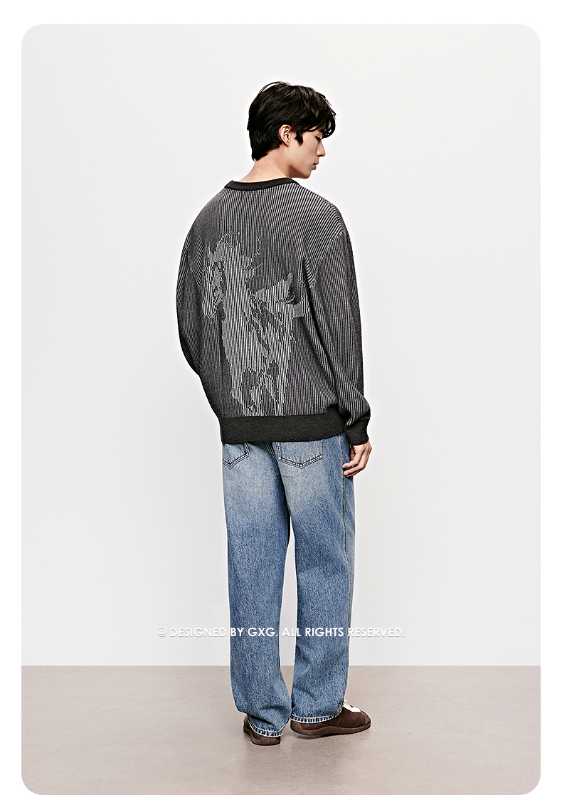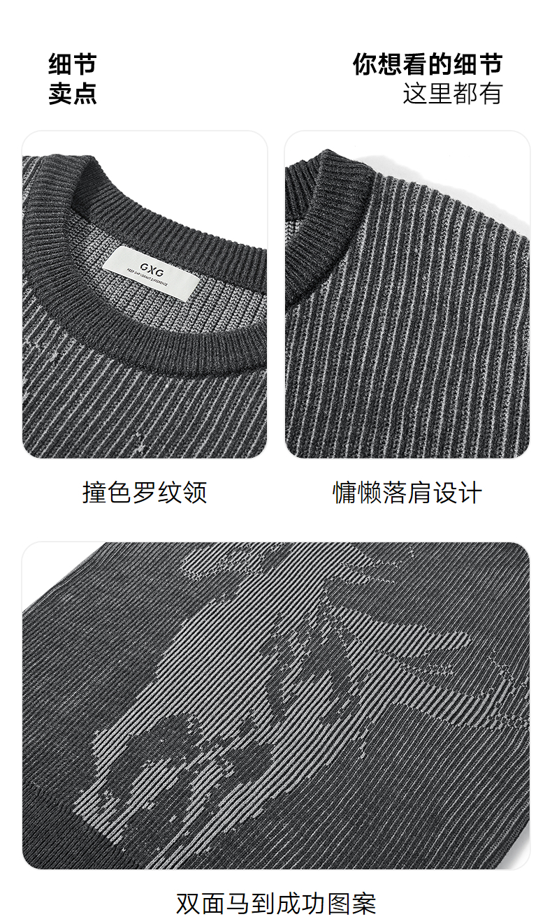 GXG男装 新年马图案印花毛衣通勤简约休闲针织衫 2025年冬季新品