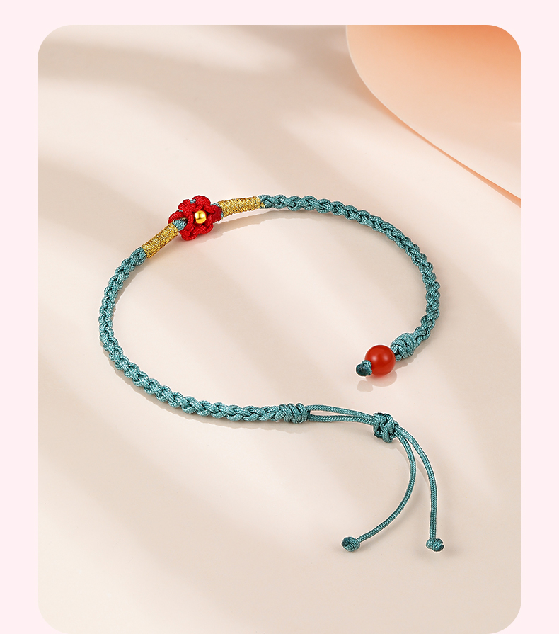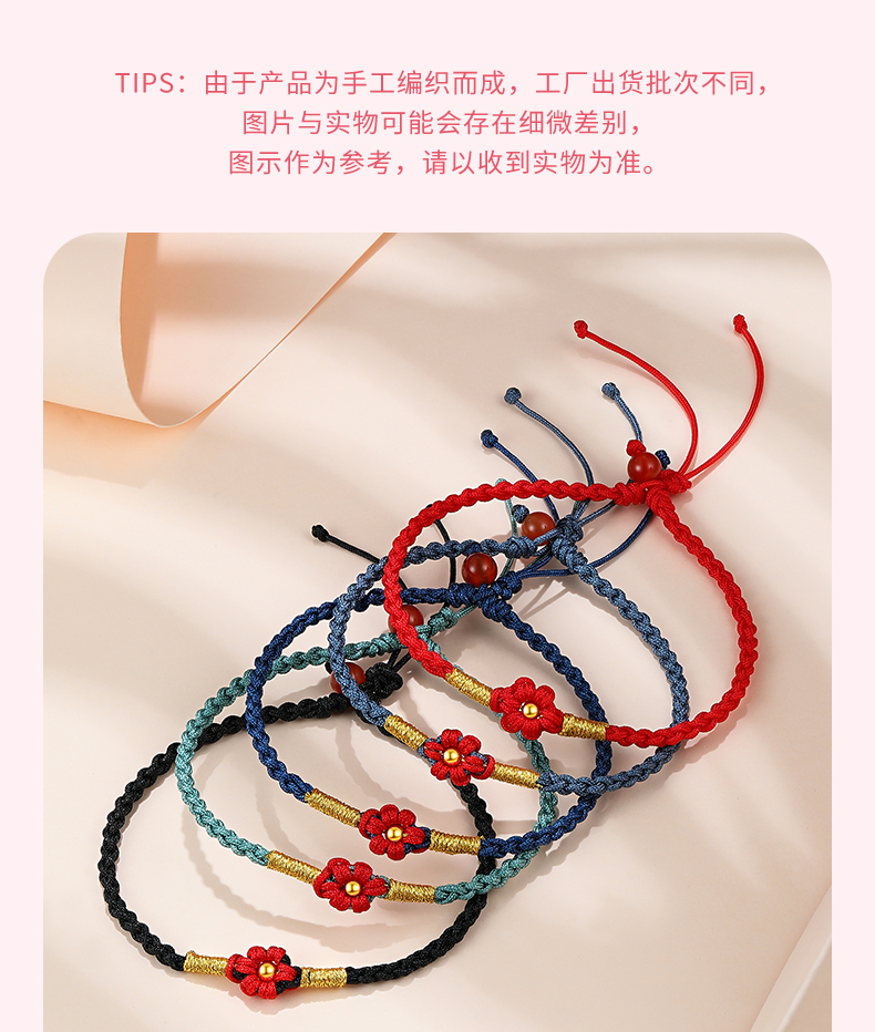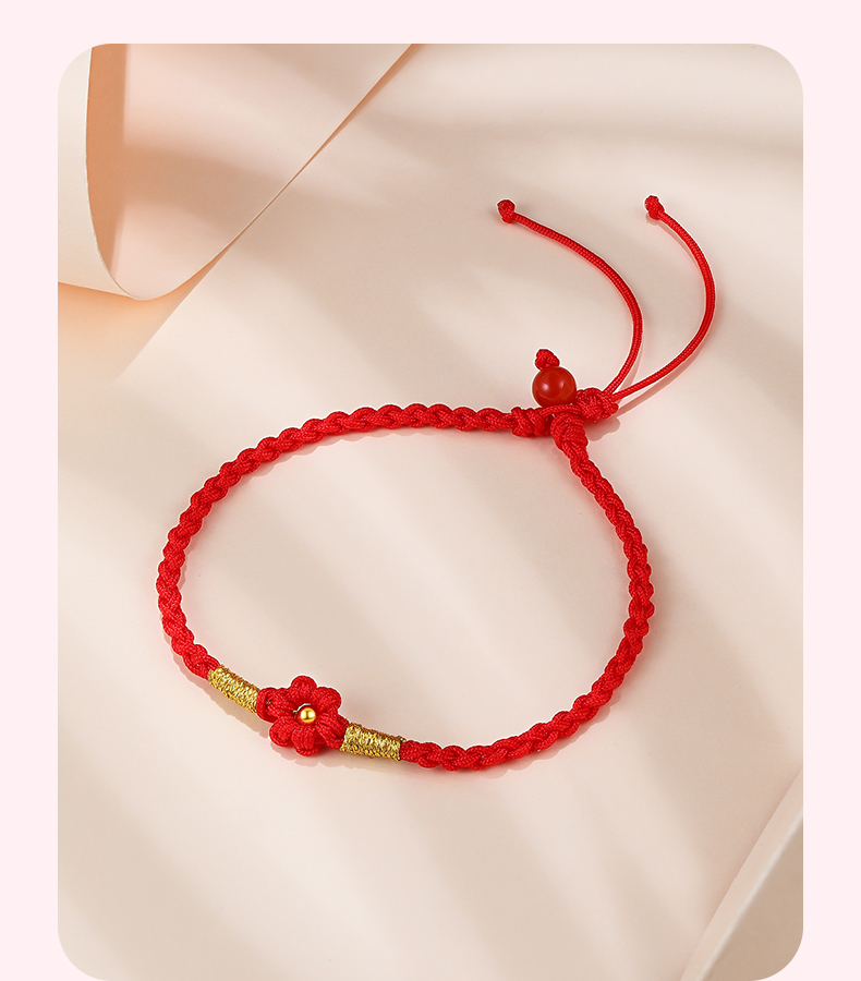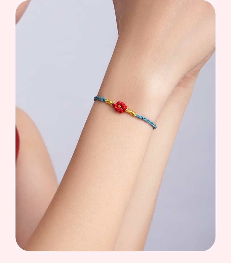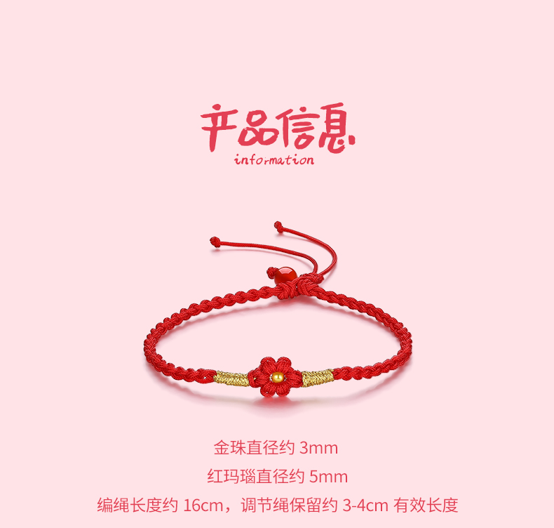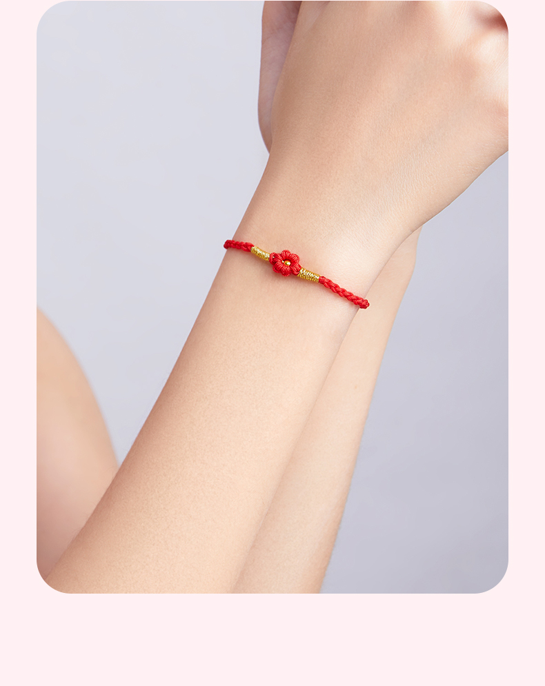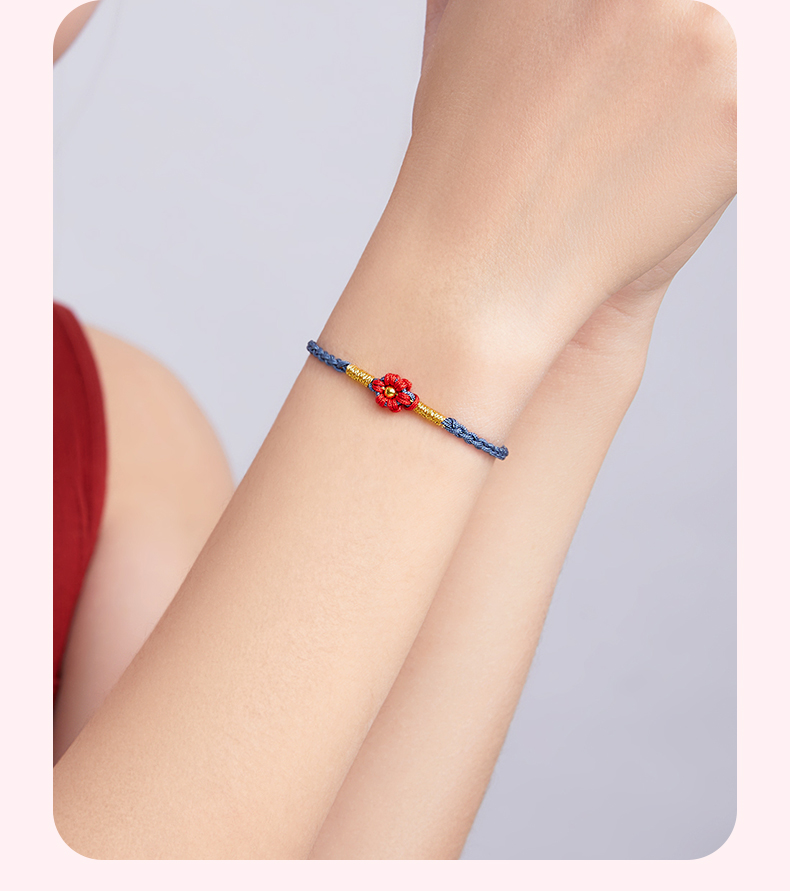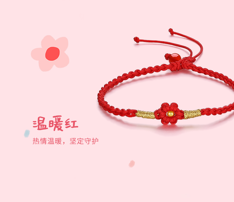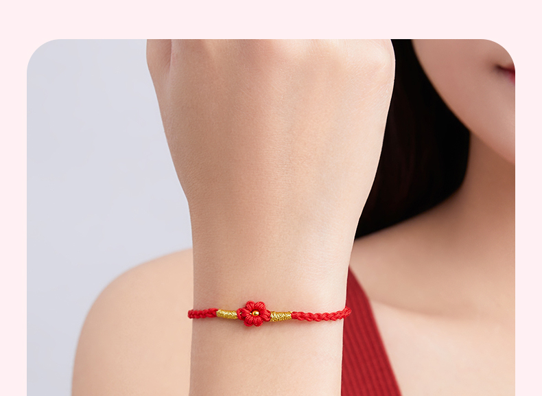 周六福黄金转运珠手链女送你一朵小红花足金官方旗舰店官网正品