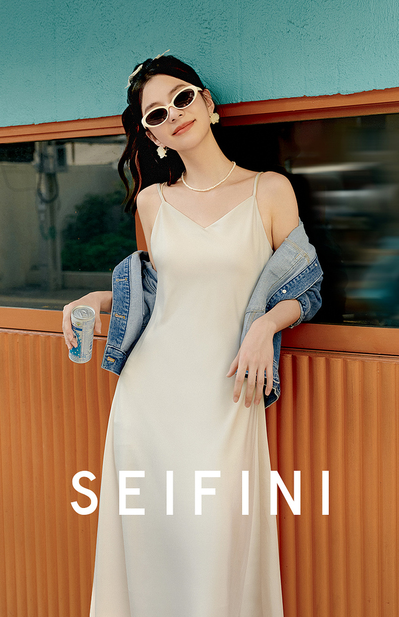 【严选】诗凡黎绸面吊带质感连衣裙SF4490901