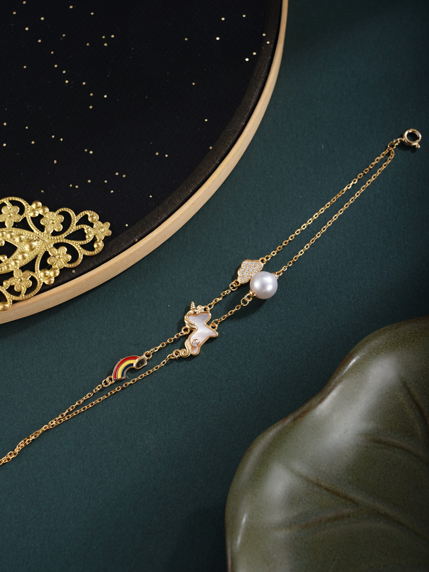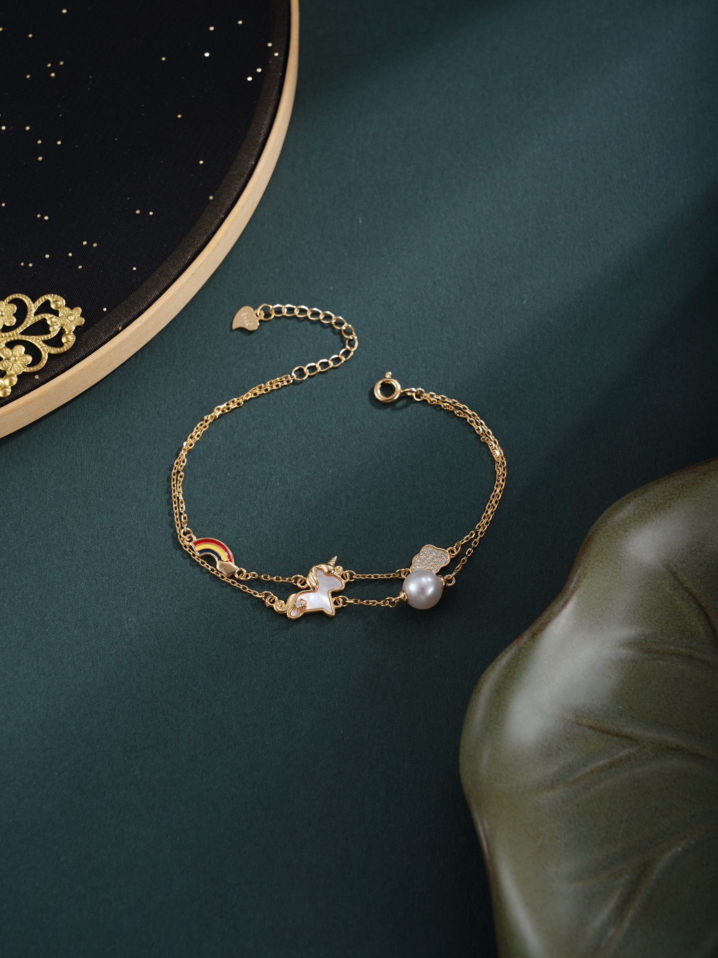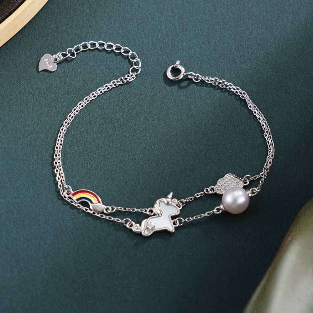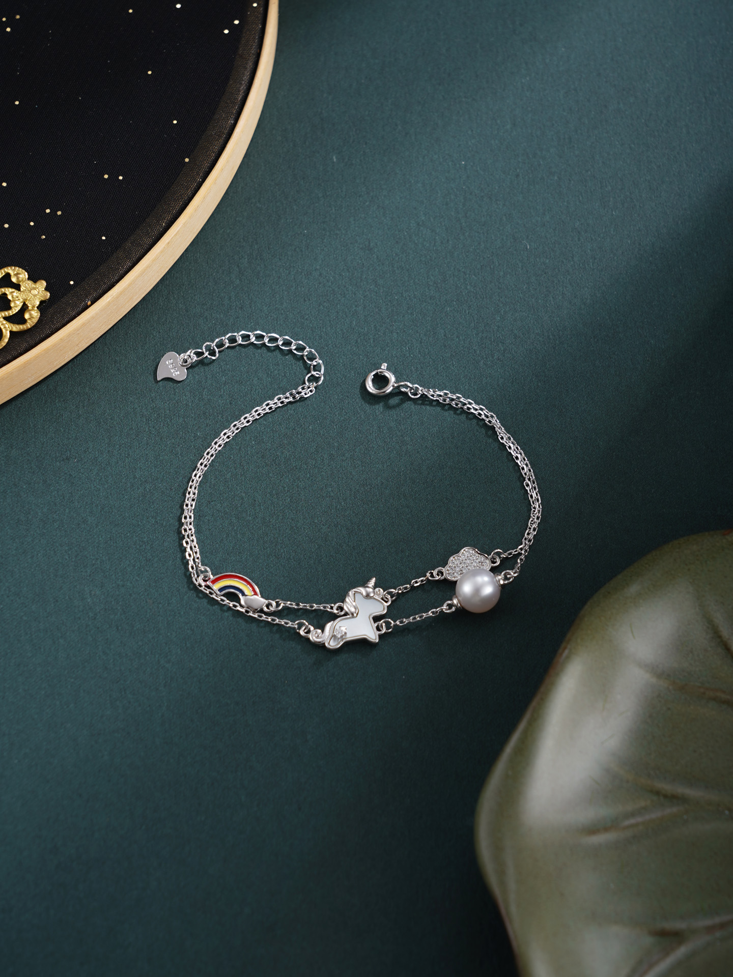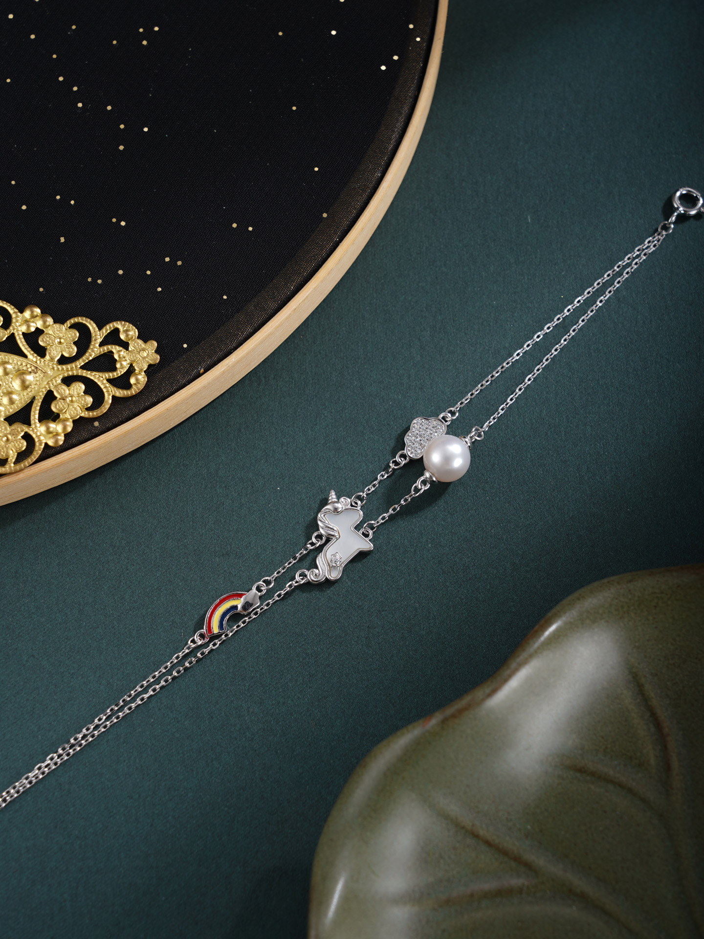 子佩集【萌马奇遇】银S925珍珠惜王妃手链【W5125】双色小马彩虹2602