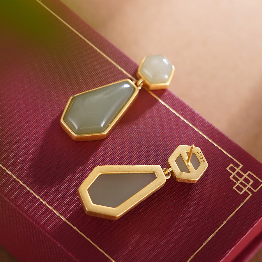 子佩集S925银青玉耳钉【WSC8451】镀金2308