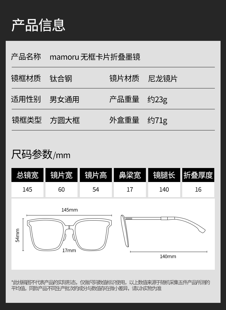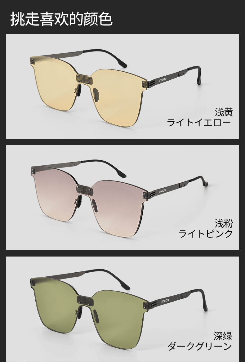 【分仓直发包邮】Mamoru无框太阳镜超轻可折叠(颜色可选:黑/粉/绿/黄)