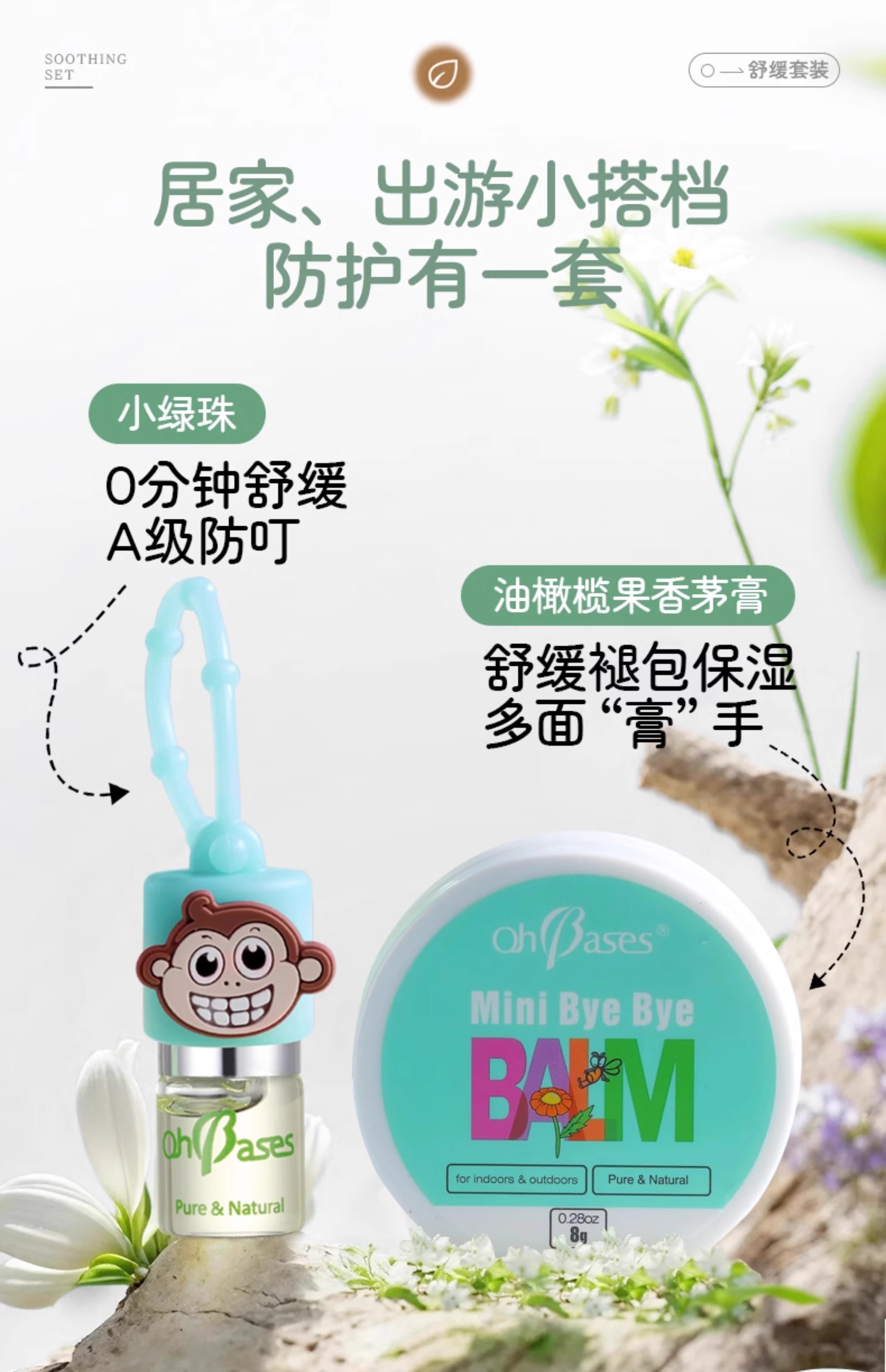 美国欧比信婴儿童止叮痒滚珠非紫草膏舒缓防叮止蚊虫叮咬便携套装