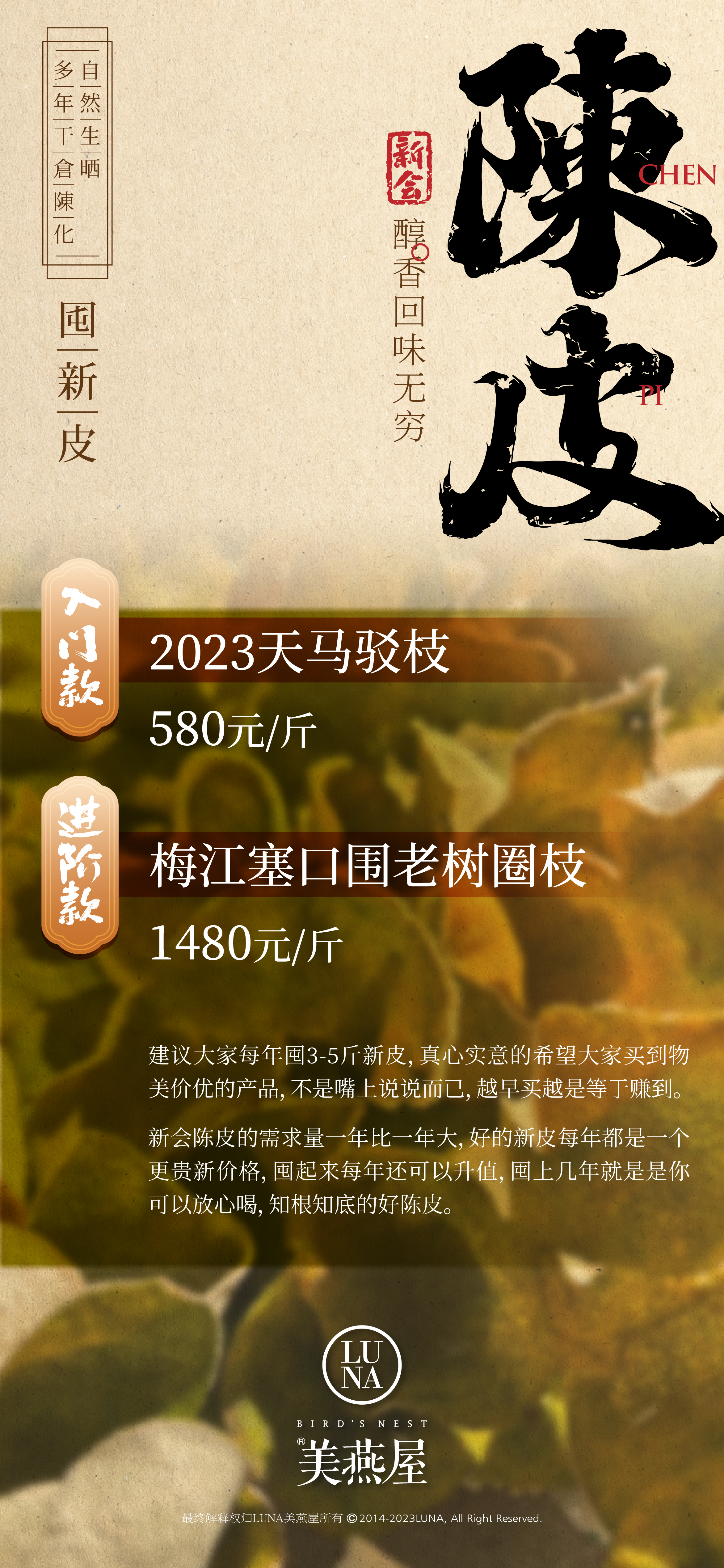 luna今年为大家精选了两款2023年的新会新皮:2023天马驳枝(入门款)和2023年梅江塞口围老树圈枝(进阶款)