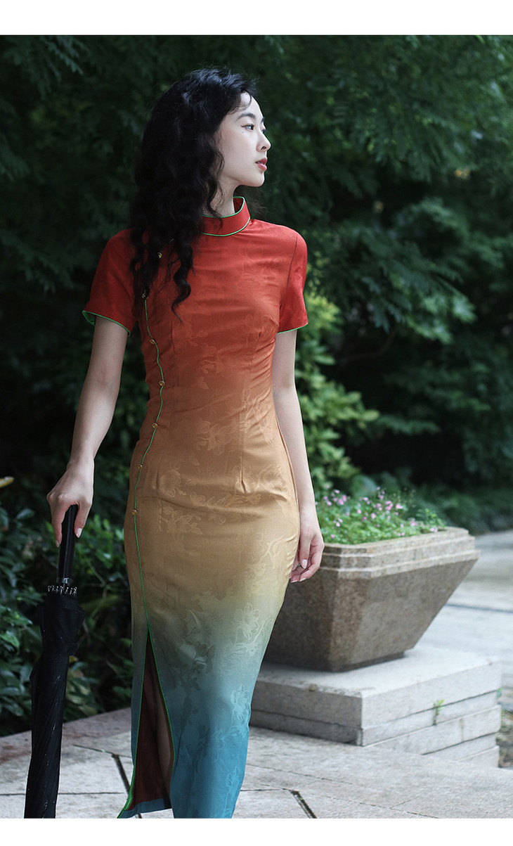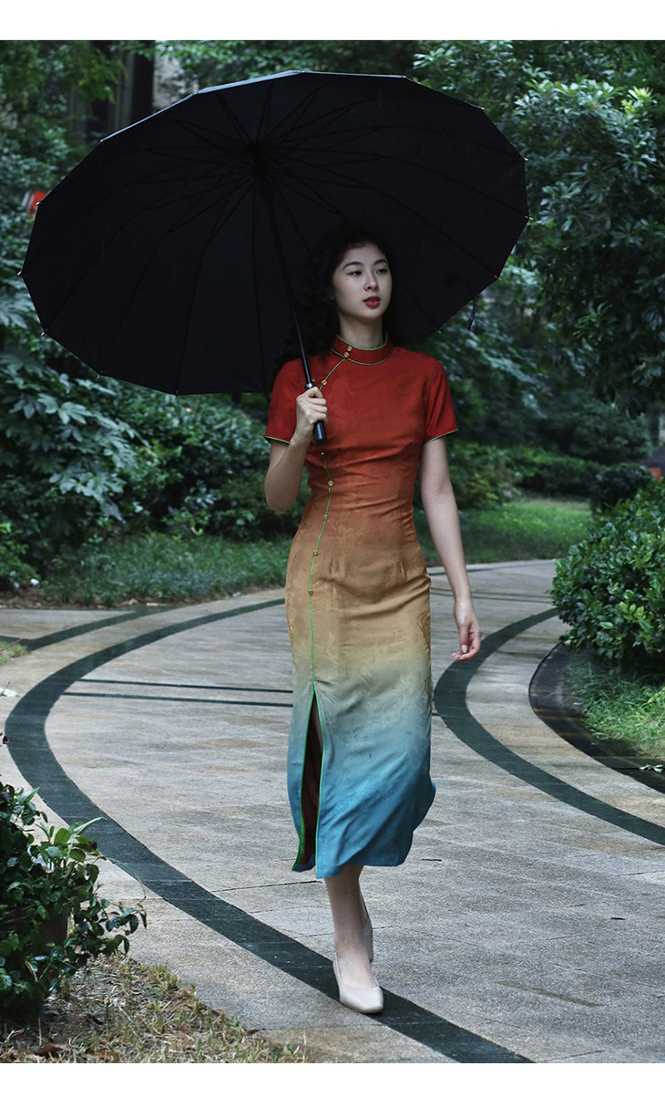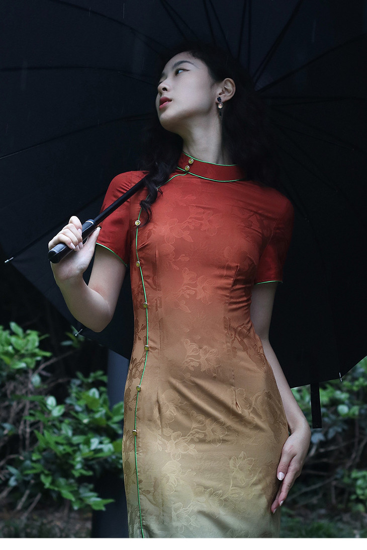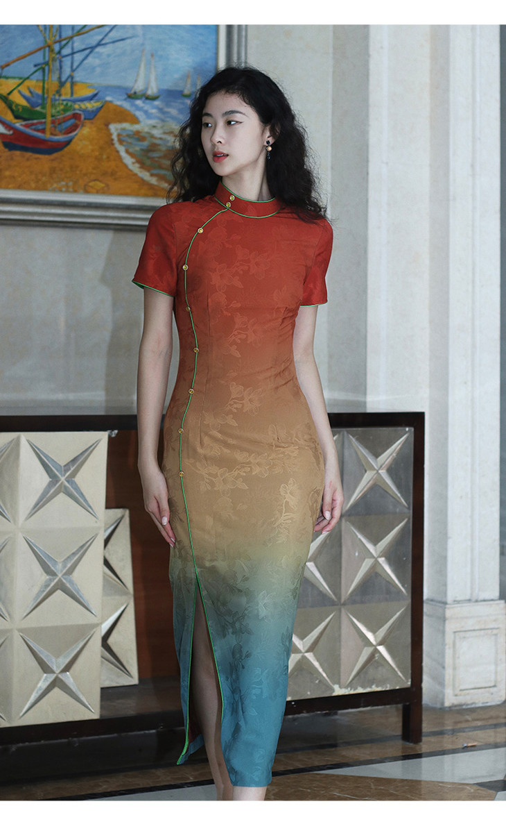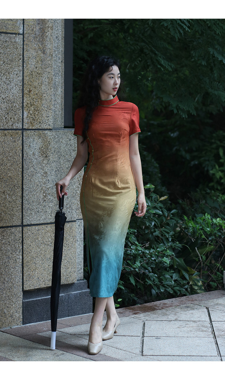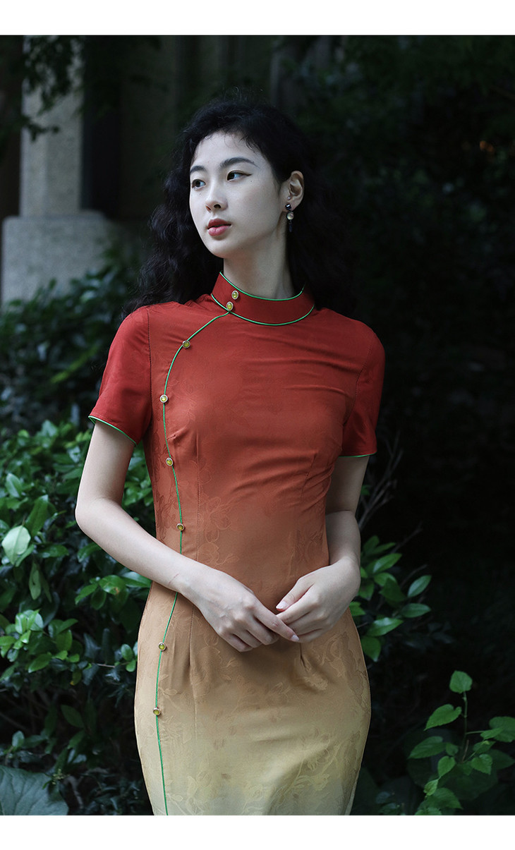 气质筒子领优雅复古新中式改良长款旗袍LSB2218