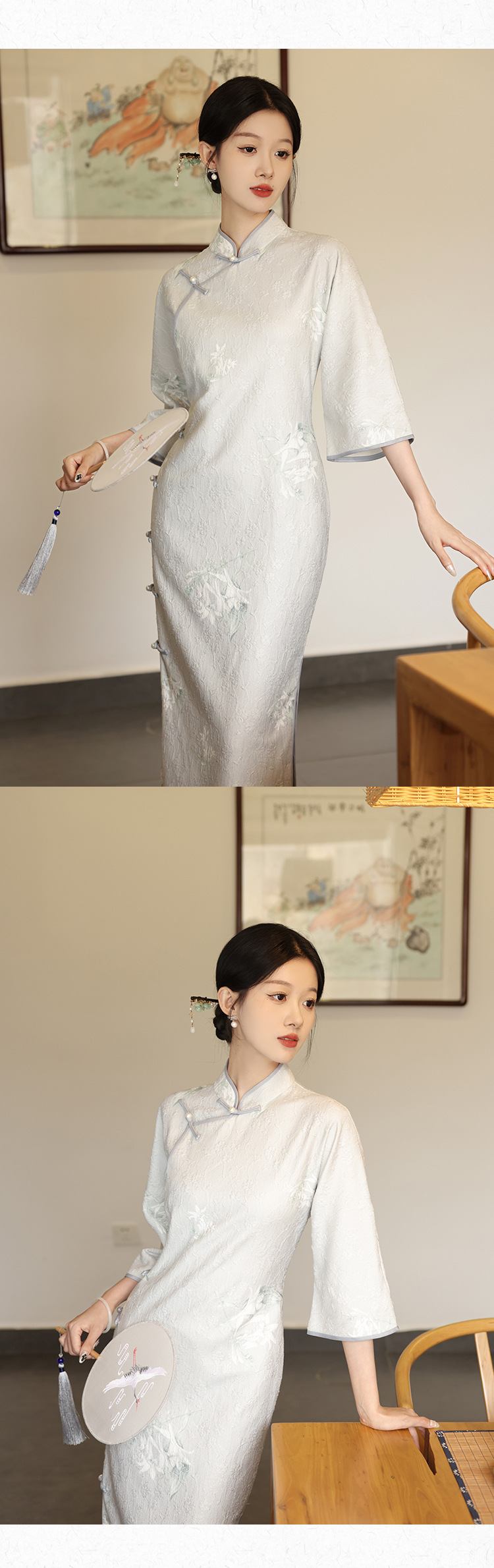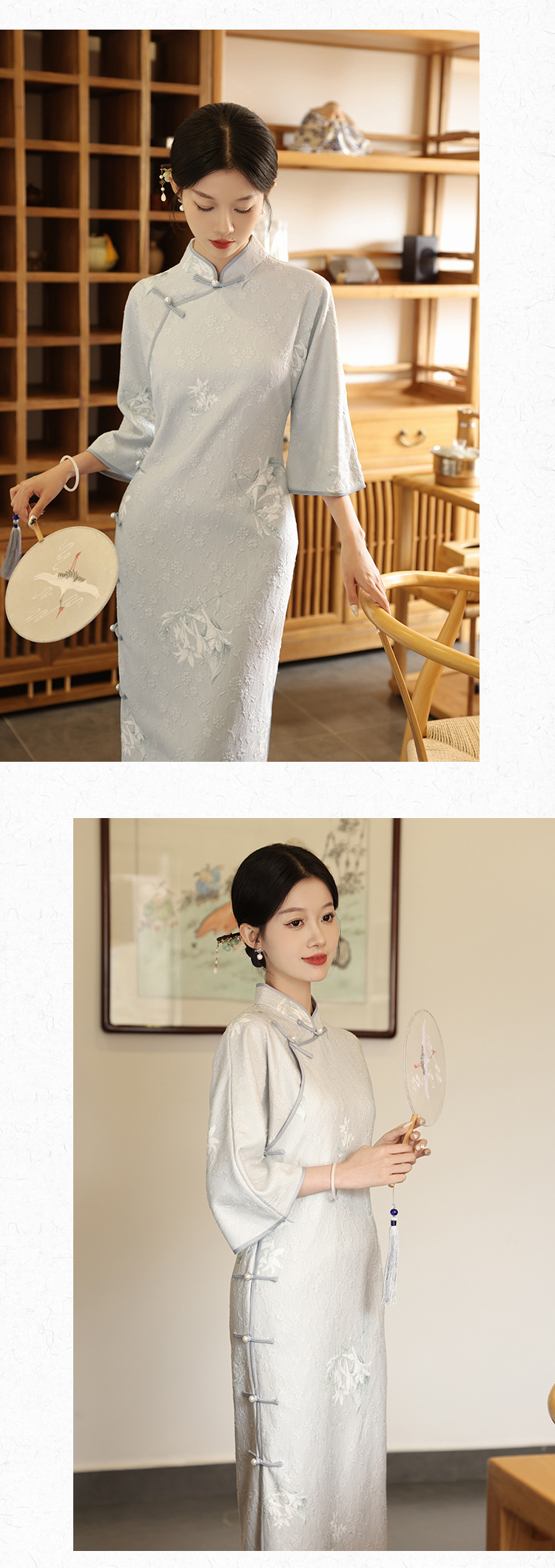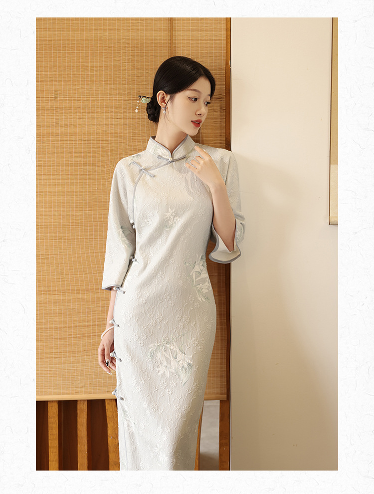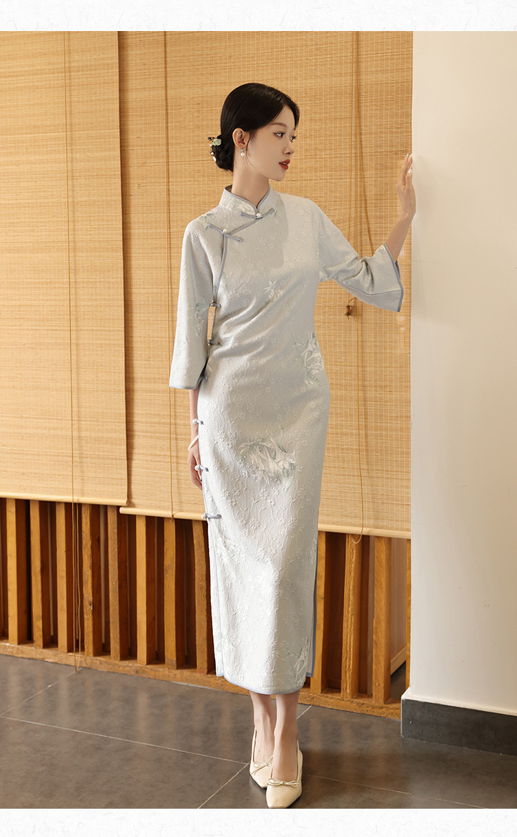 2024春季新款新中式提花复古民国淑女风改良版长袖旗袍LSB2241