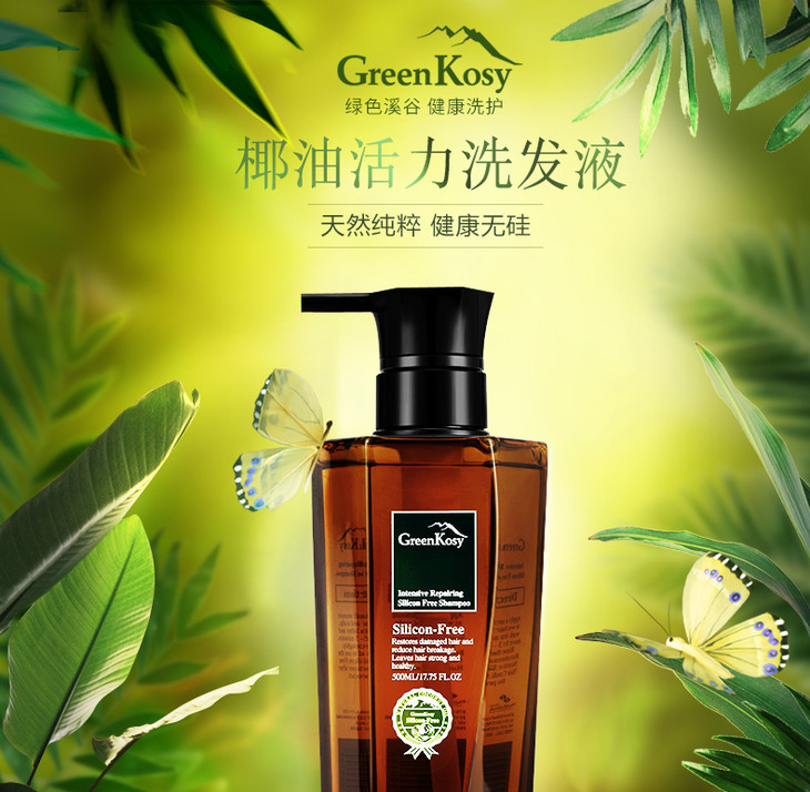 李佳琦推荐!绿色溪谷椰油滋润柔顺洗发水改善毛躁无硅油洗发乳净爽去屑止痒洗发露