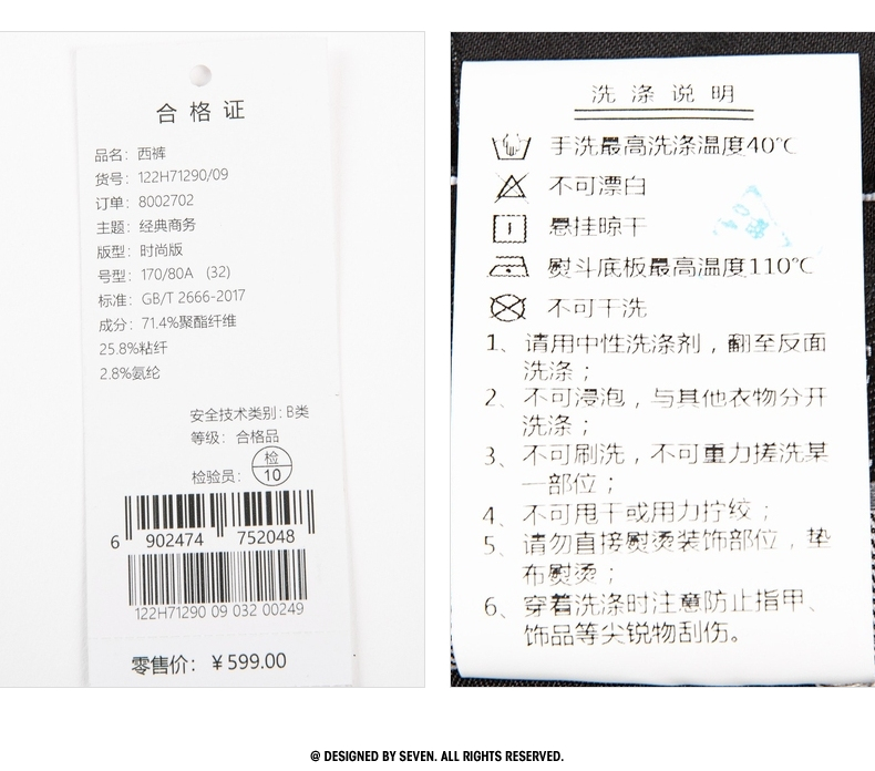 【特价】柒牌西裤男商务正装年春秋新款时尚休闲青年男裤子直筒薄长裤 122H71290