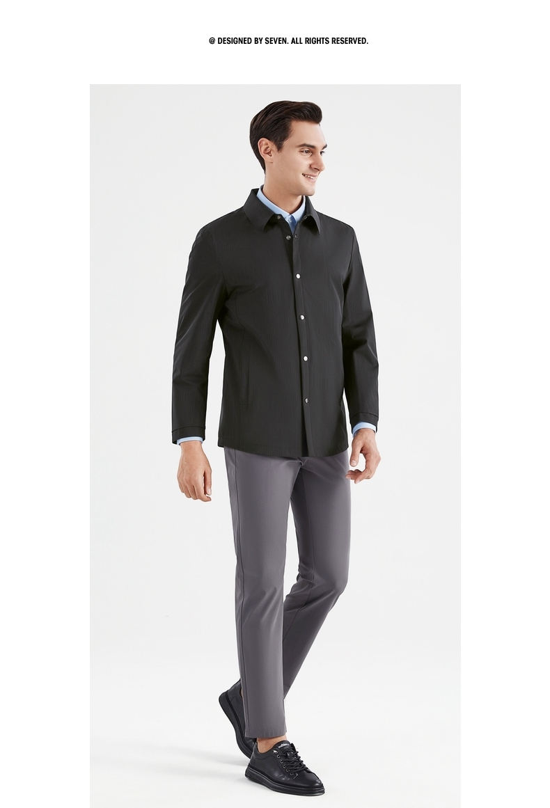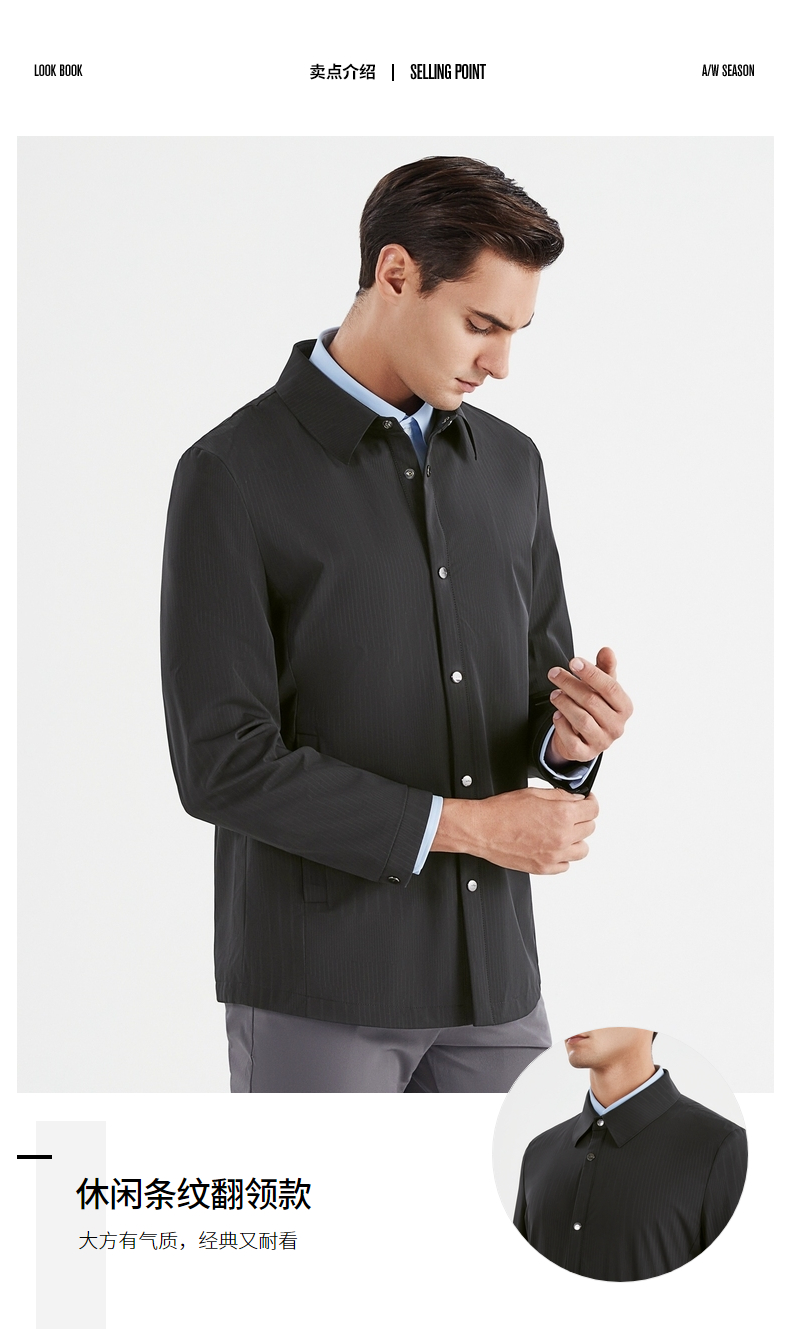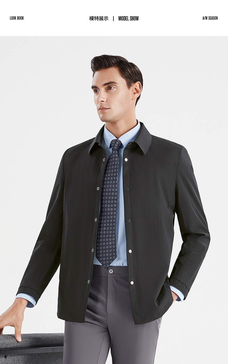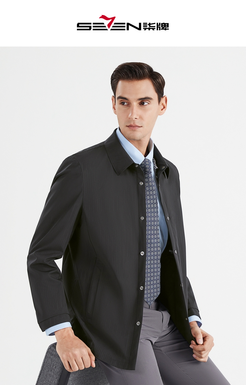 【特价】柒牌夹克外套男春秋新款商务休闲翻领条纹印花长袖茄克衫上衣 122K70120