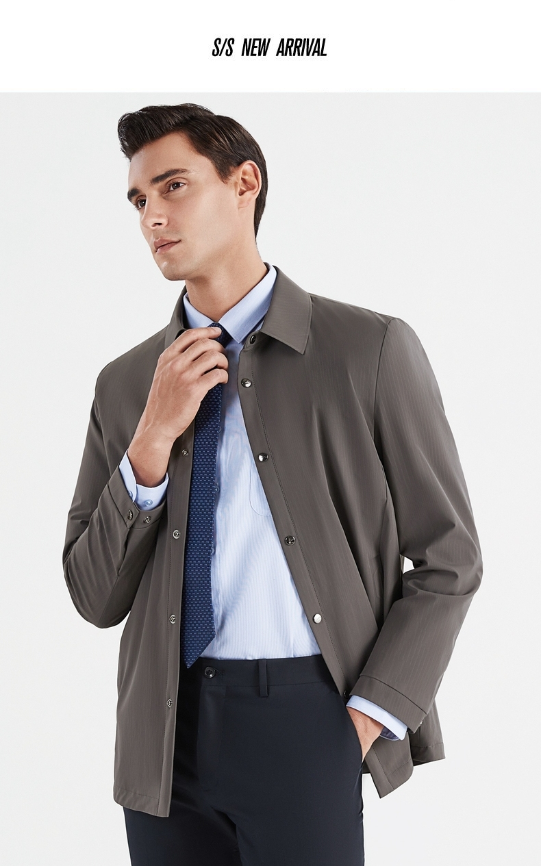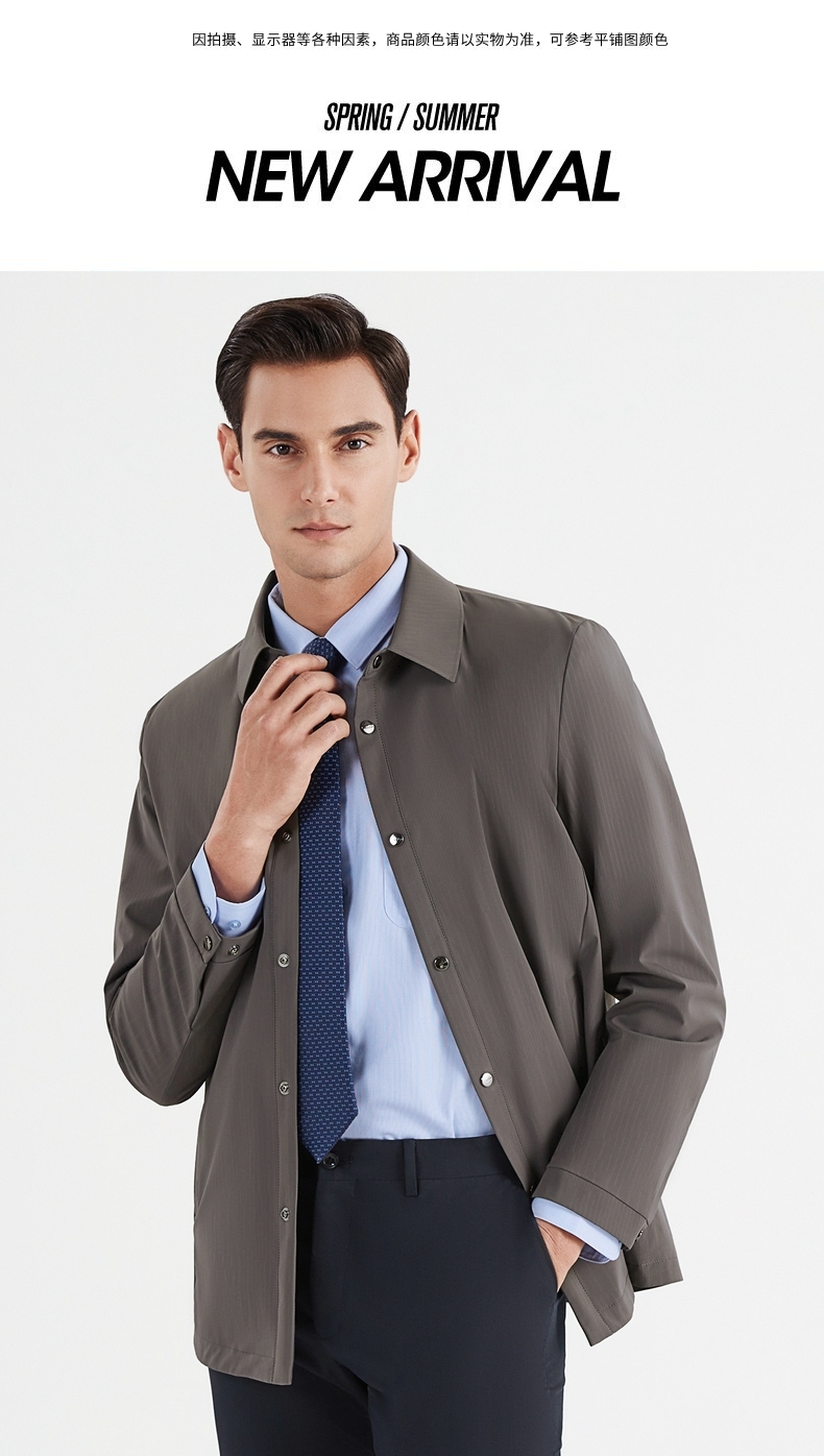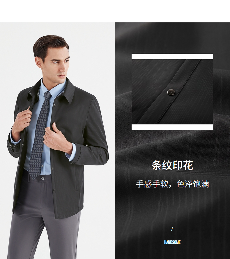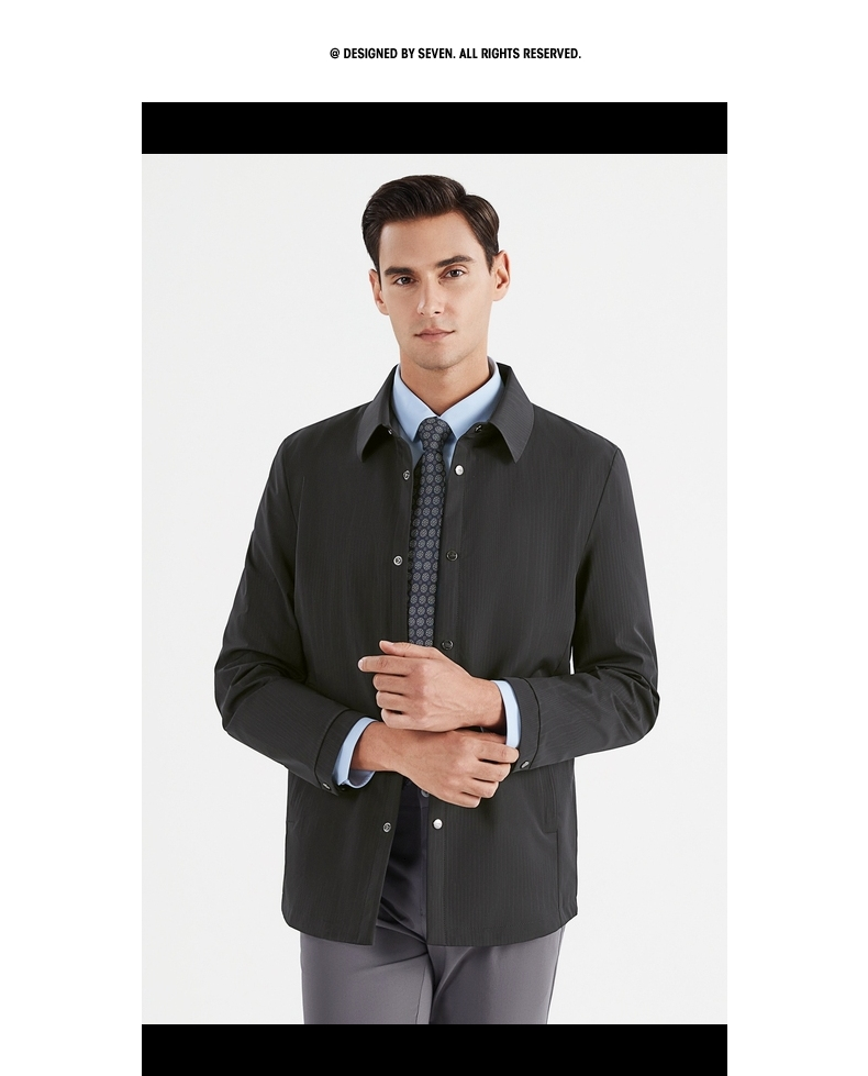 【特价】柒牌夹克外套男春秋新款商务休闲翻领条纹印花长袖茄克衫上衣 122K70120
