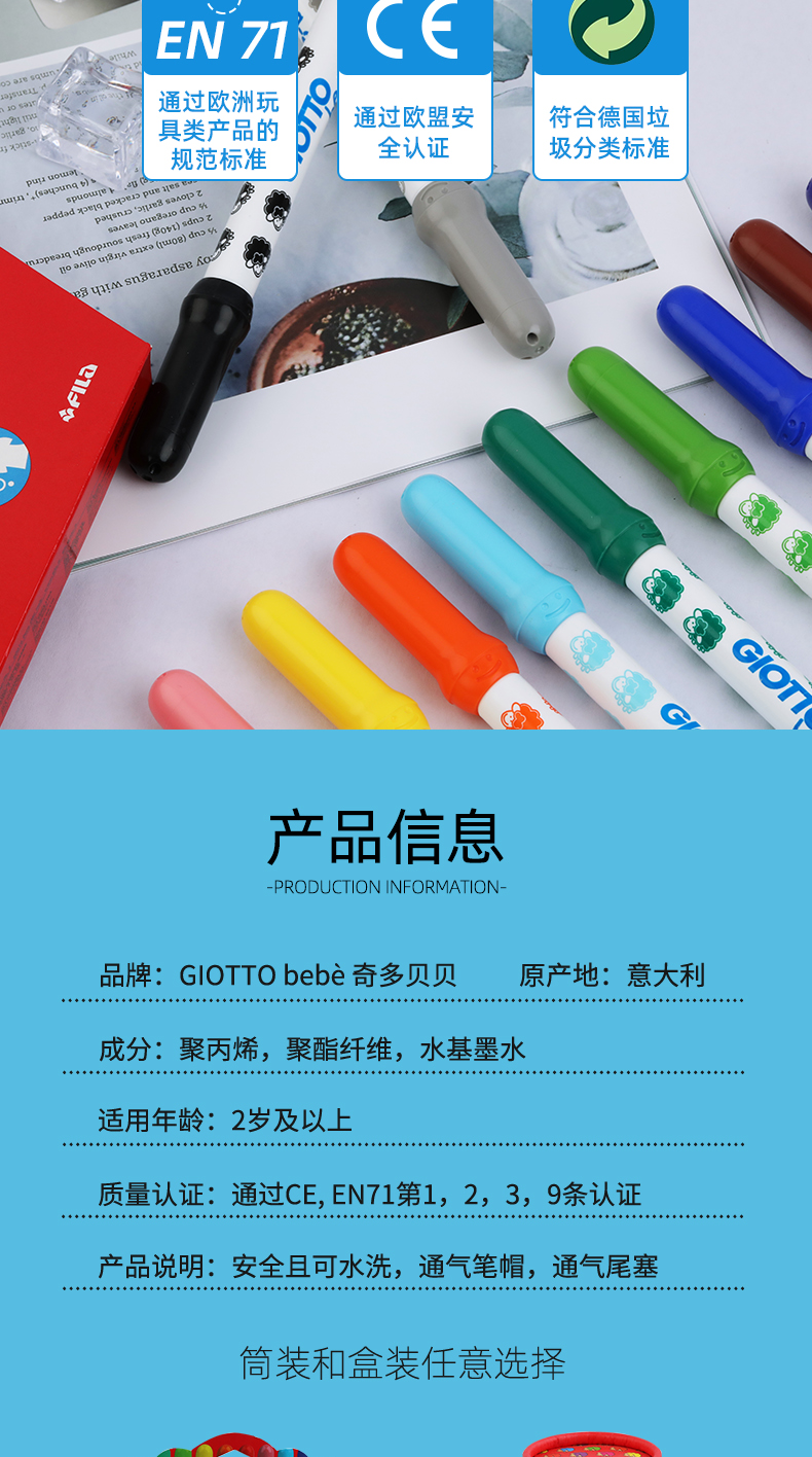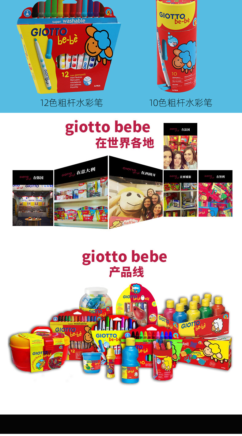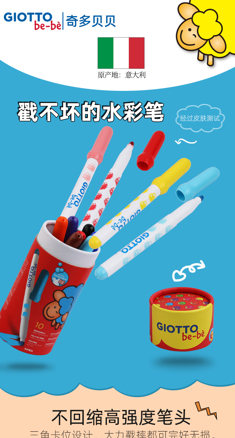 意大利进口/GIOTTO奇多贝贝/幼儿园专用水彩笔/宝宝戳不坏/安全无毒/可水洗