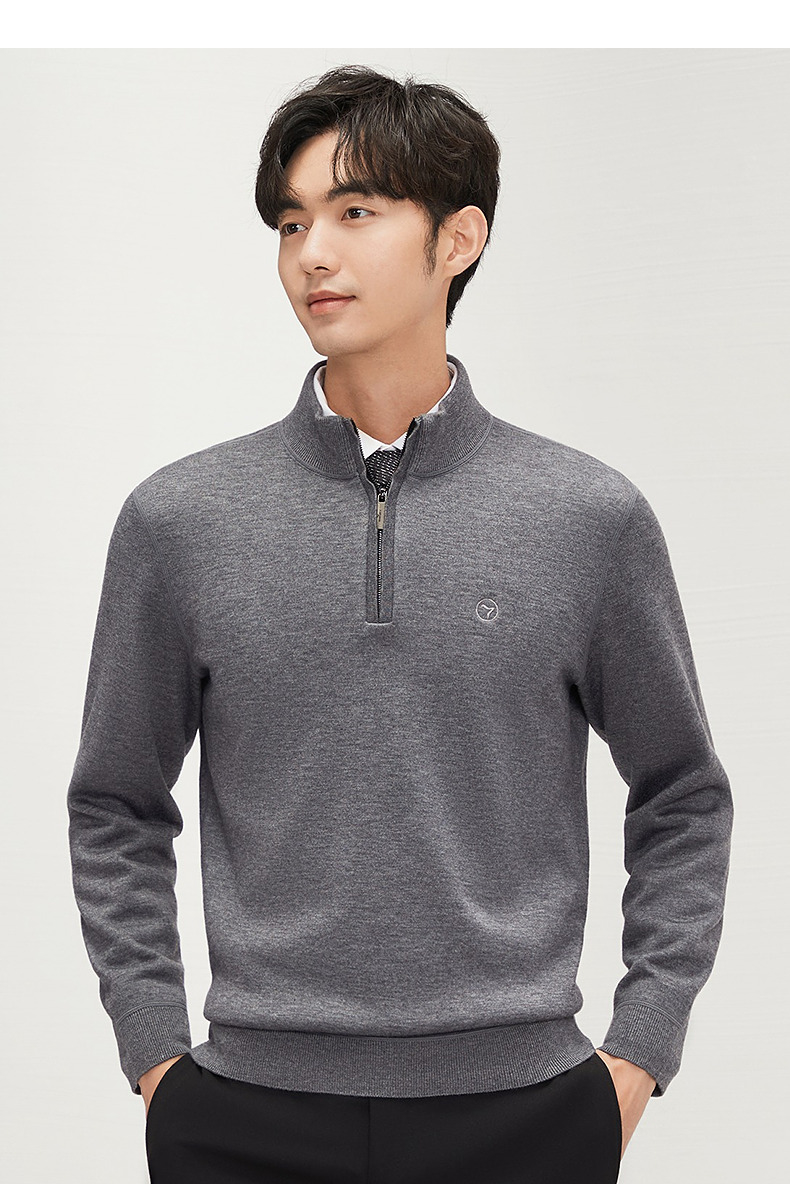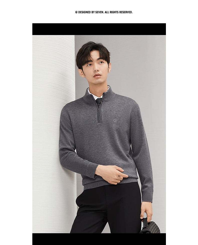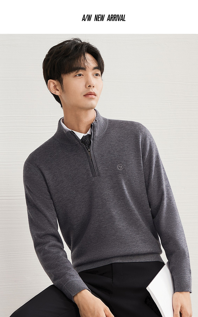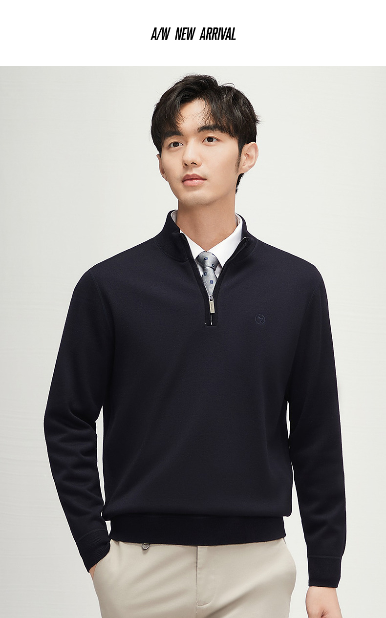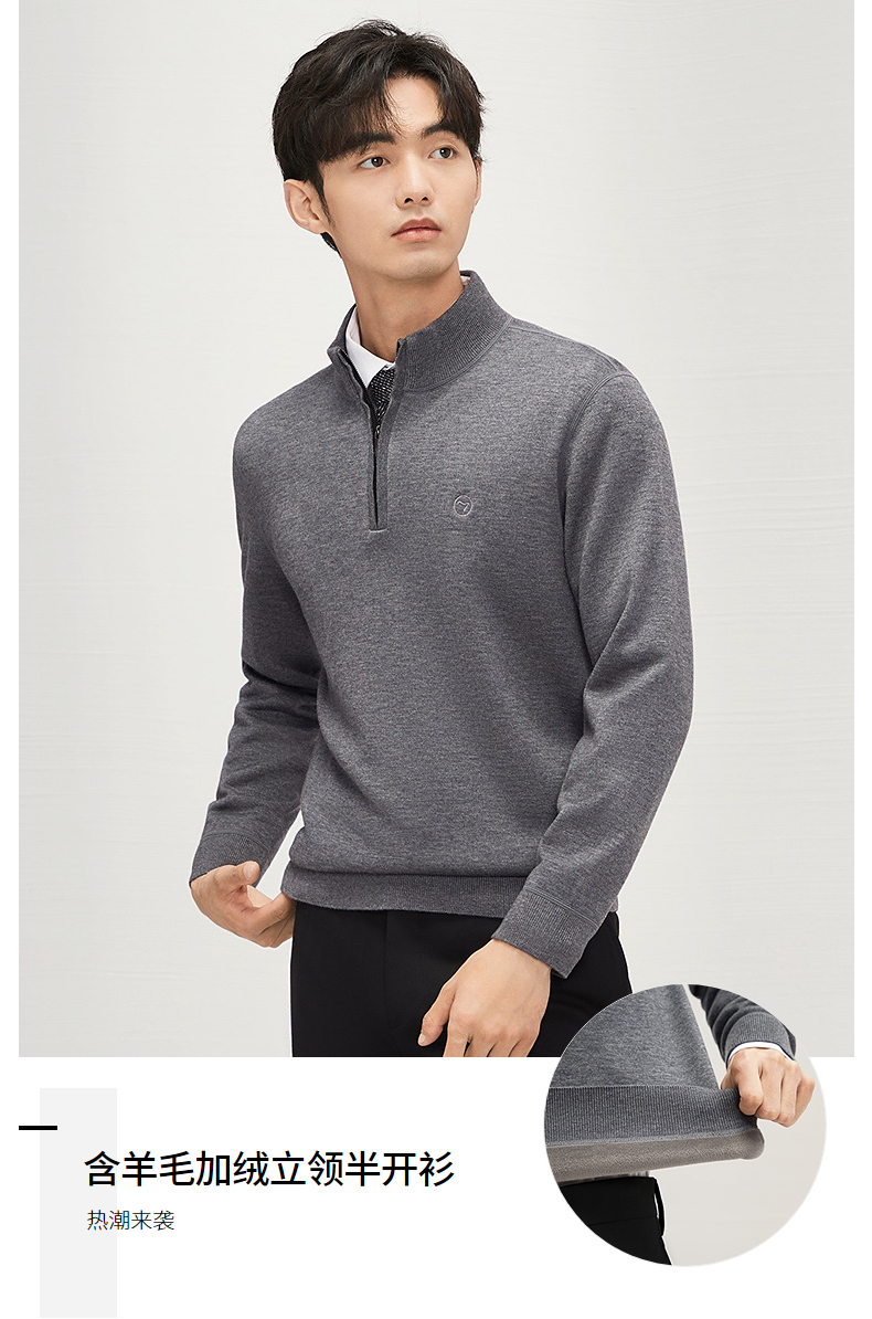 【加绒】柒牌毛衣男2024秋冬新款商务休闲含羊毛保暖半开立领毛衫 127Y70800