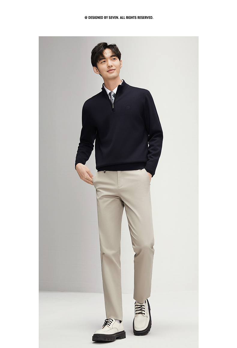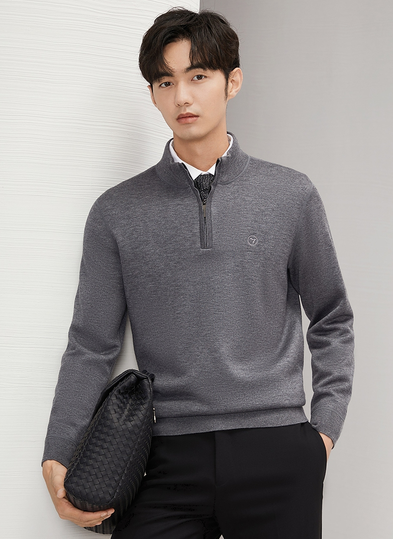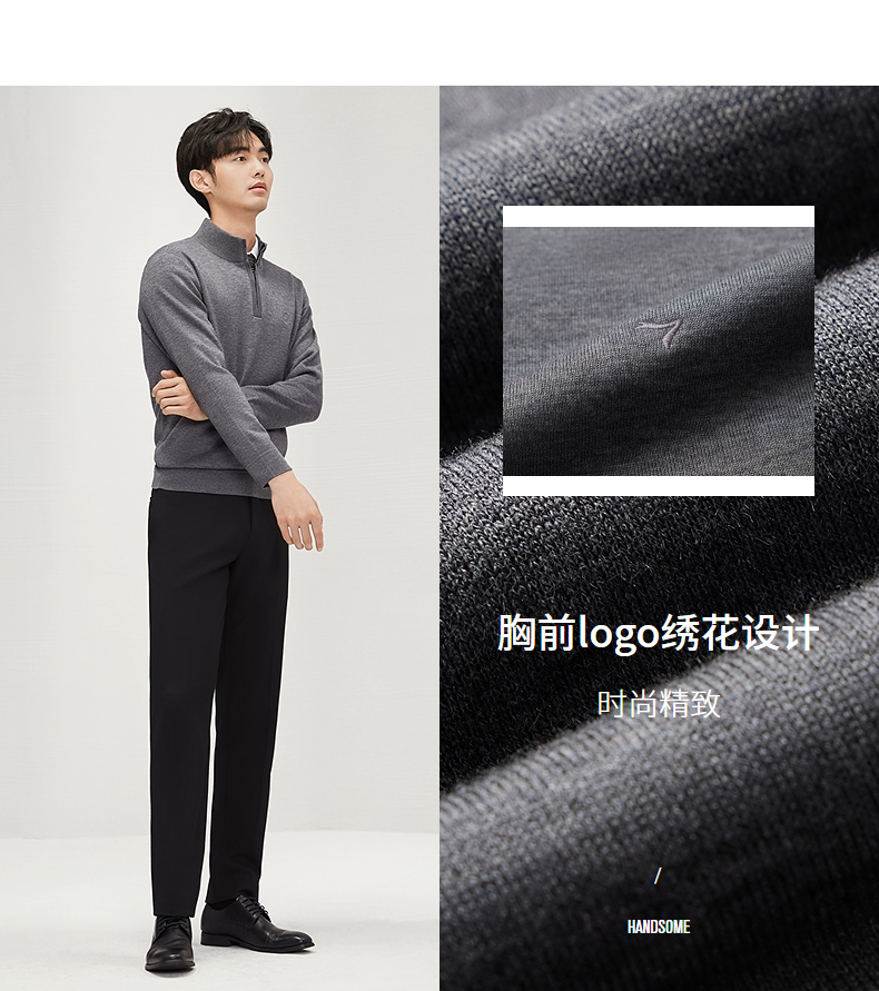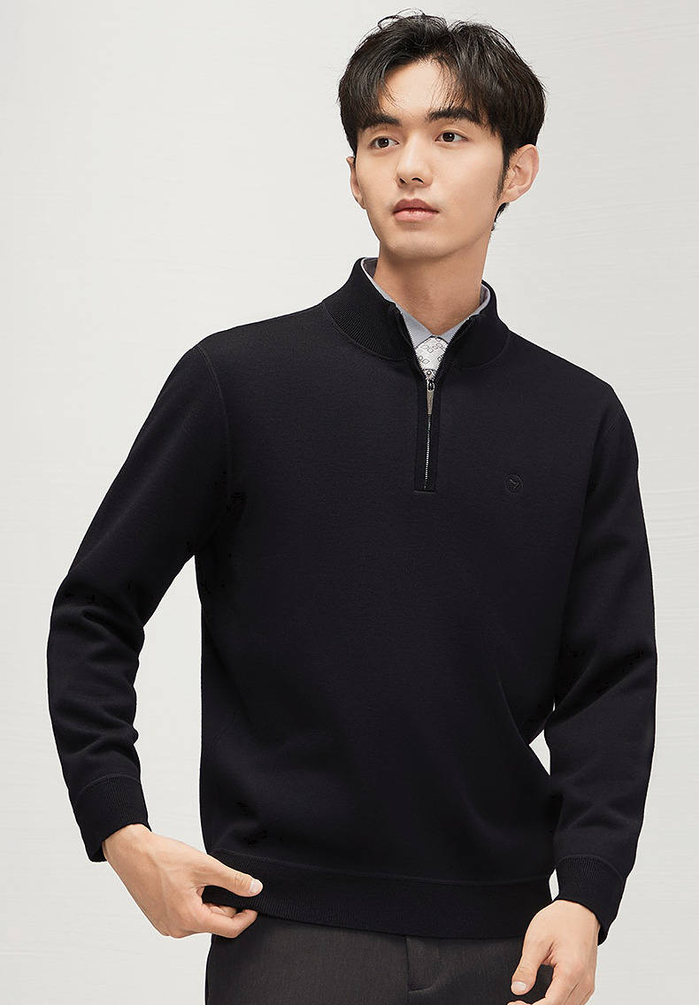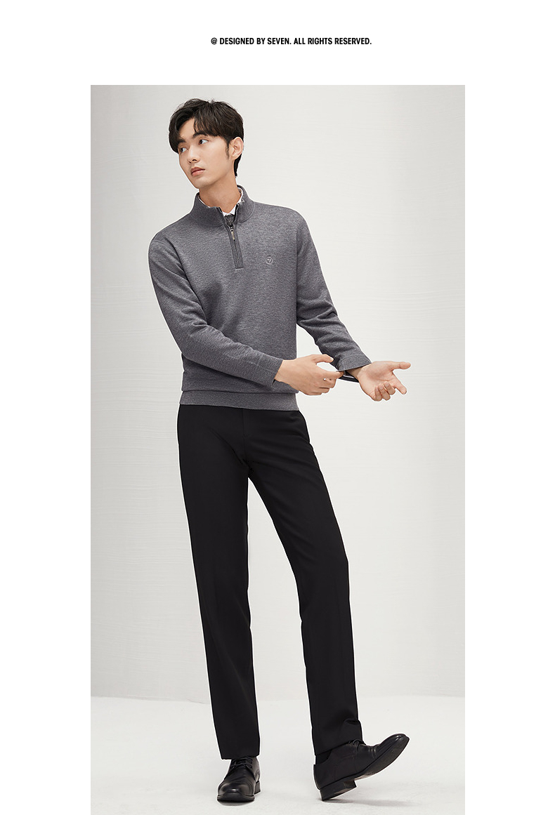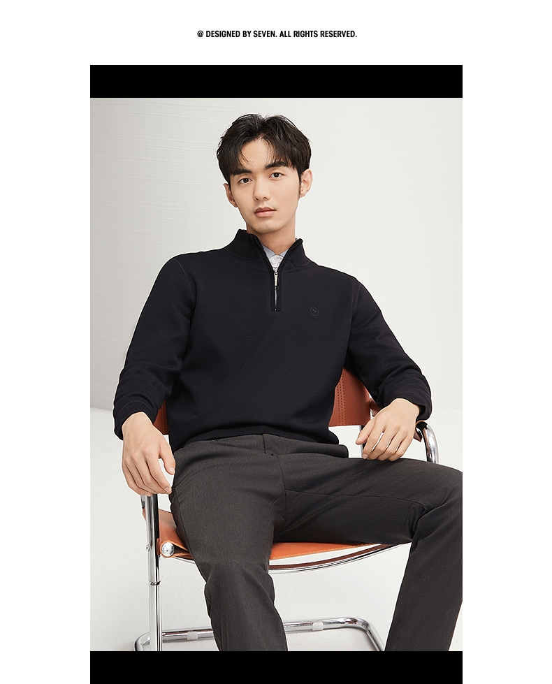 【加绒】柒牌毛衣男2024秋冬新款商务休闲含羊毛保暖半开立领毛衫 127Y70800