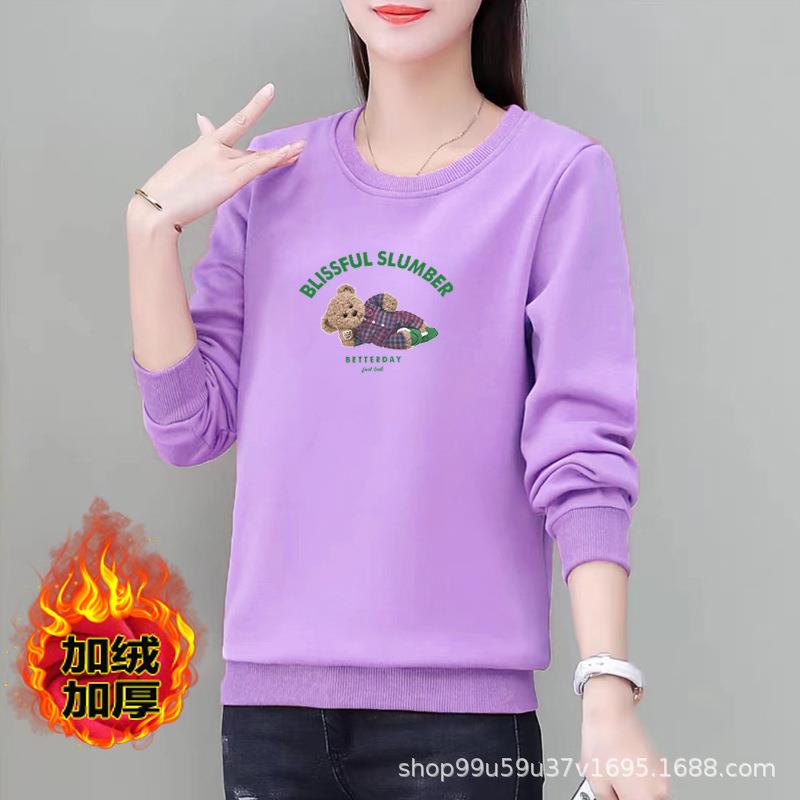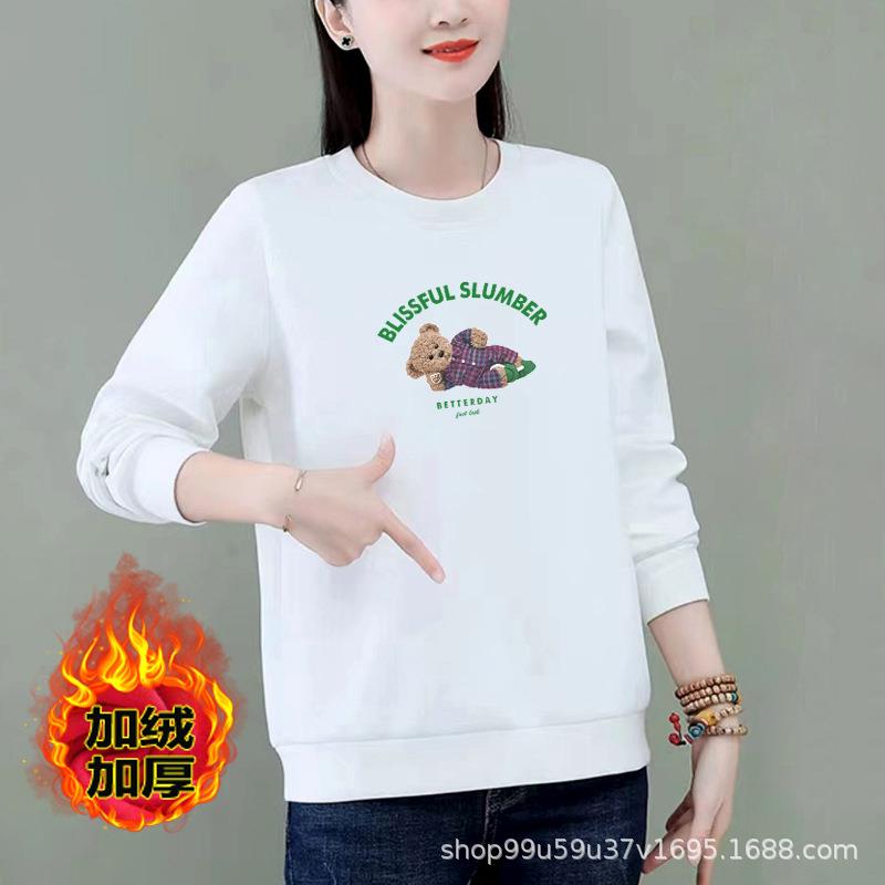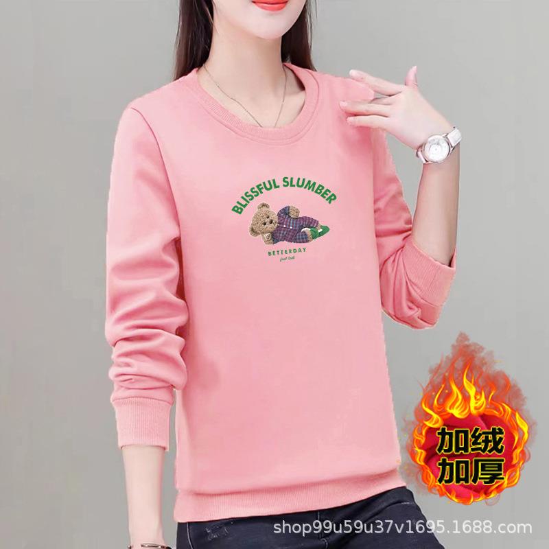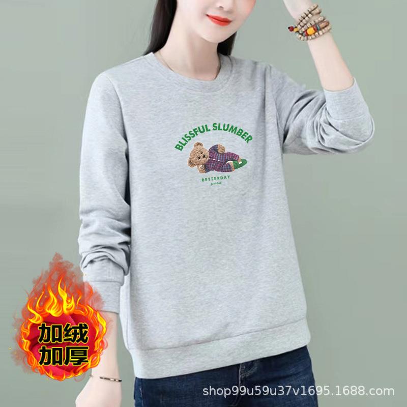 棉质圆领宽松卫衣加绒字母印花女式休闲运动衣显瘦时尚外套上衣