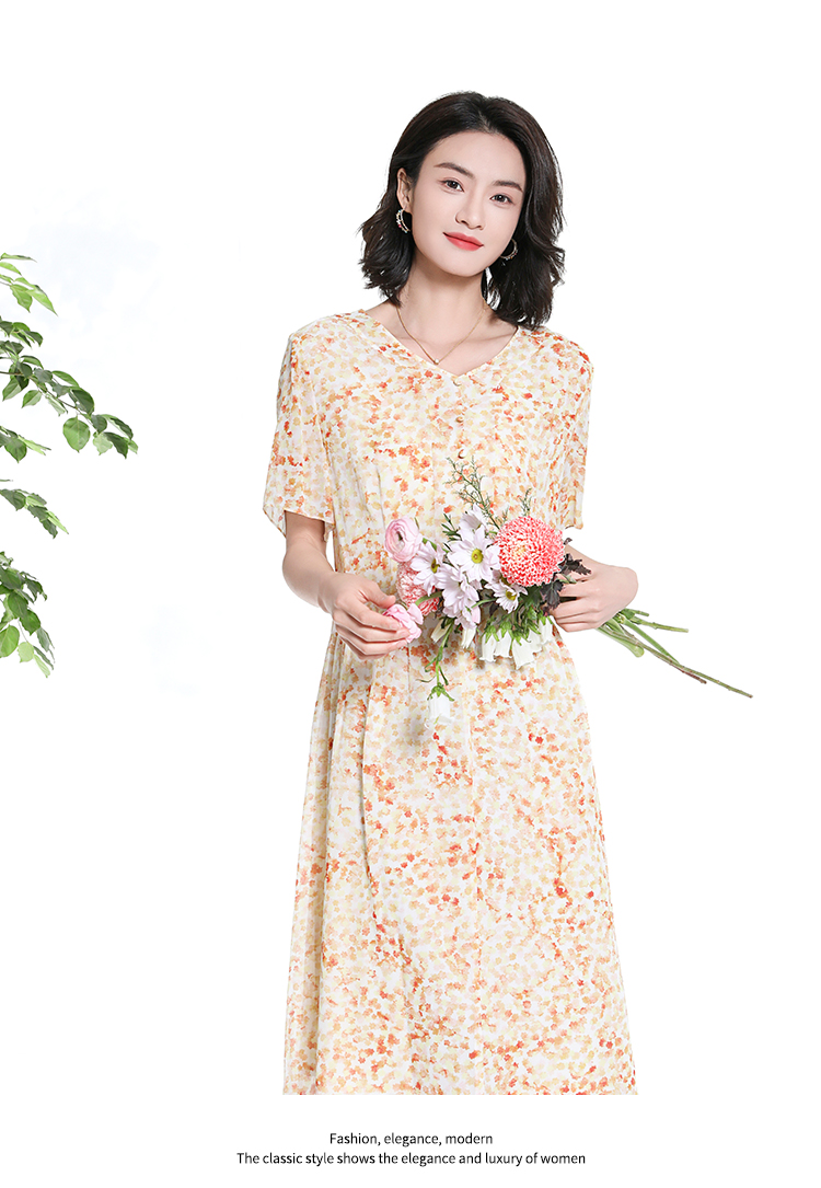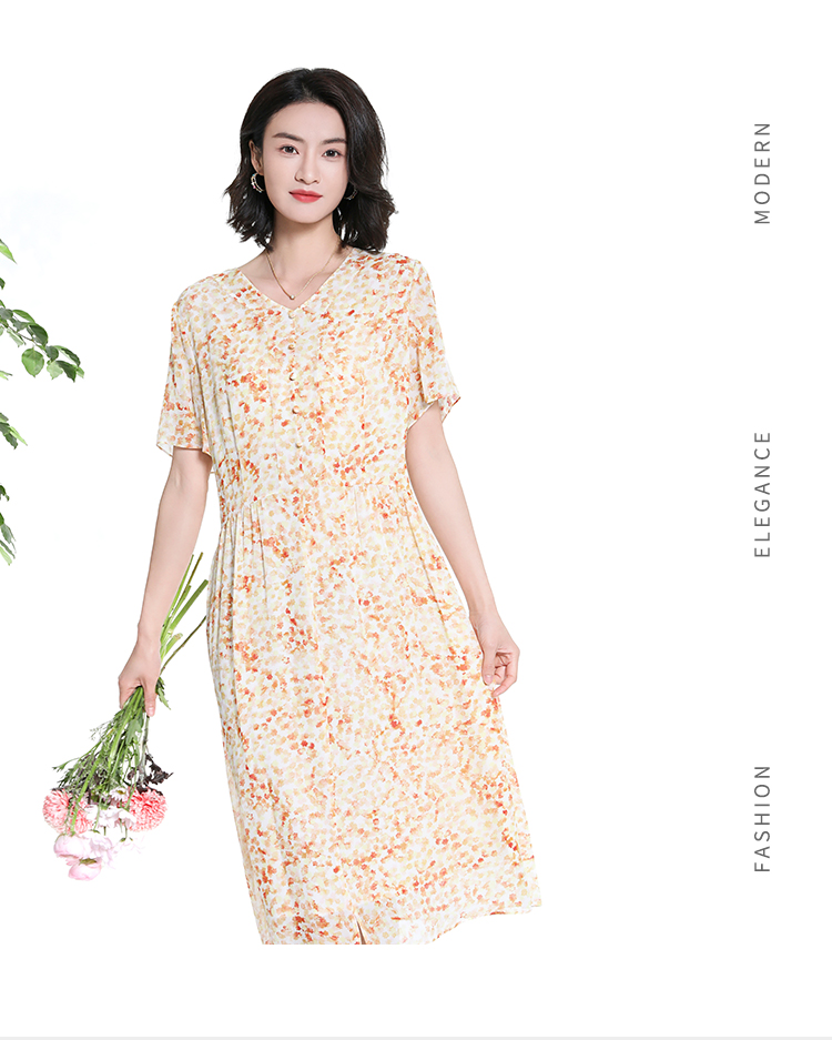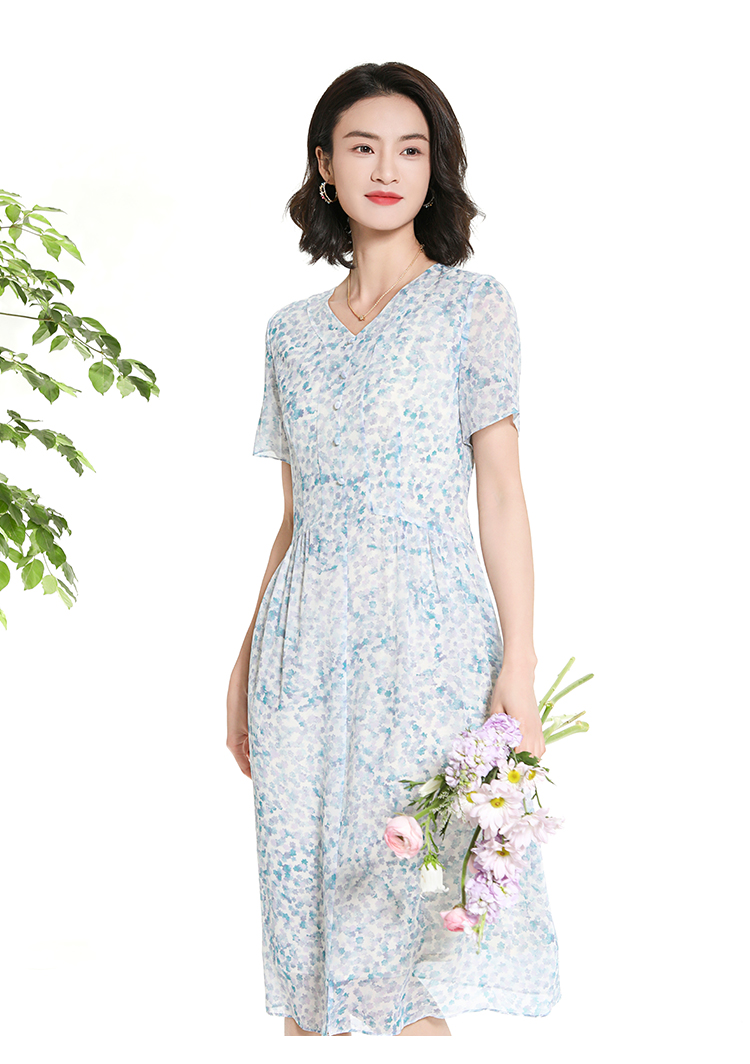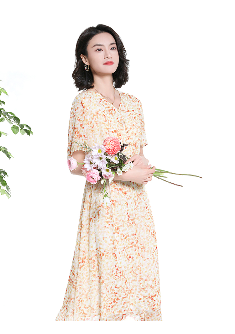 佐尔美夏季新款时尚气质碎花桑蚕丝短袖连衣裙女M42LS70