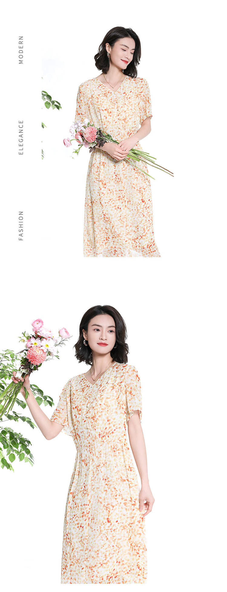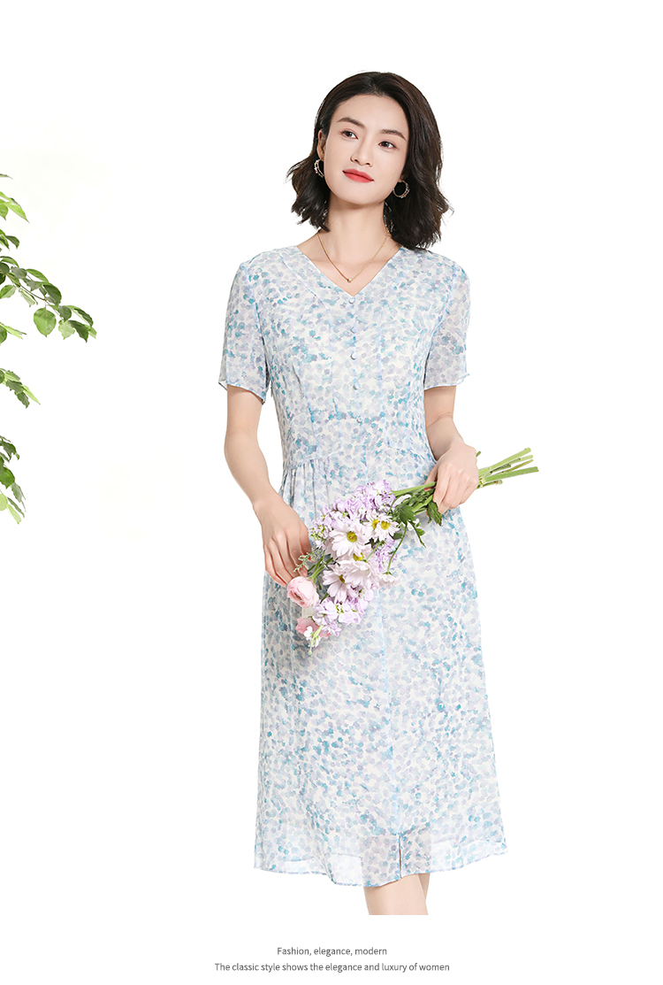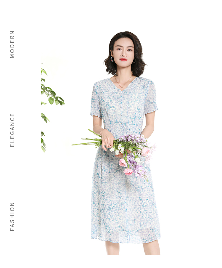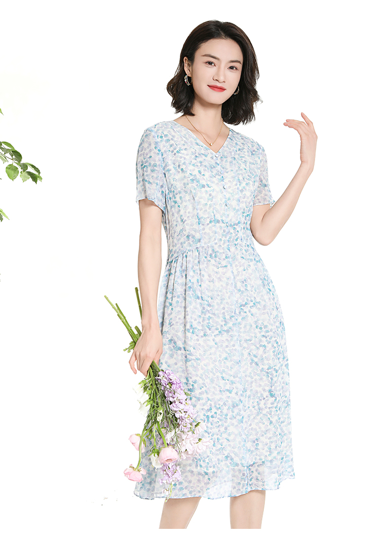 佐尔美夏季新款时尚气质碎花桑蚕丝短袖连衣裙女M42LS70