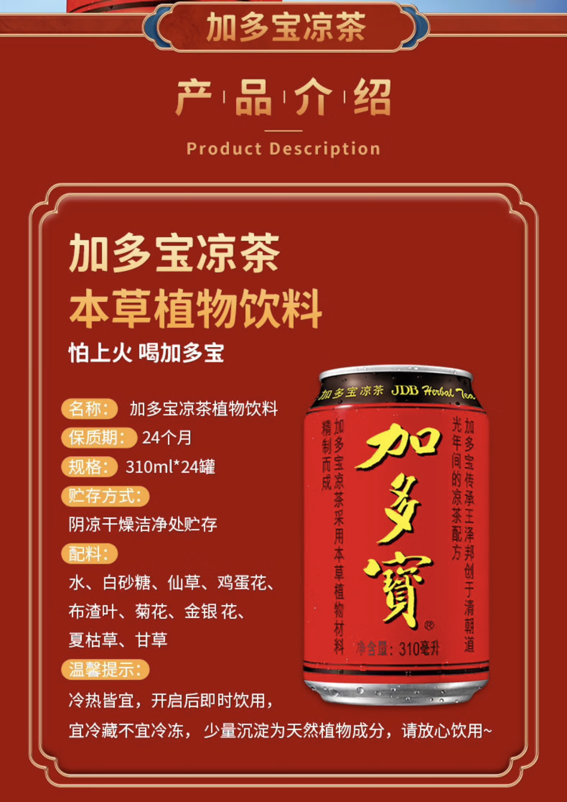 【清凉节】加多宝凉茶植物饮料 茶饮料 310ml*24罐