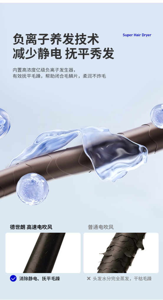 ✅负离子养发技术,2亿级负离子,减少静电,抚平秀发。