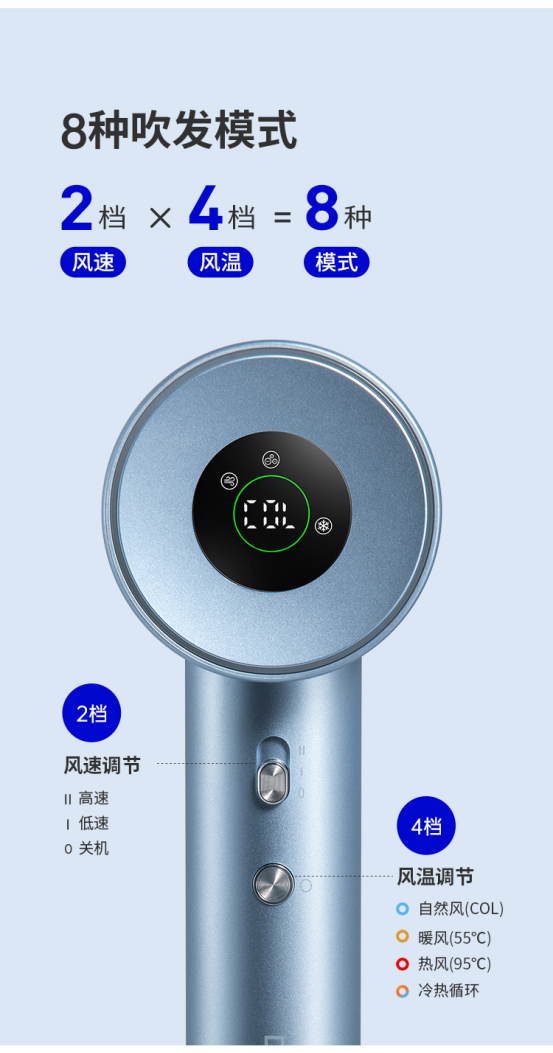✅温度显示灯环(尾部),时尚美观,使用模式易识别 🔺速干|护发|量轻|低噪|双层防烫|1.6M长线