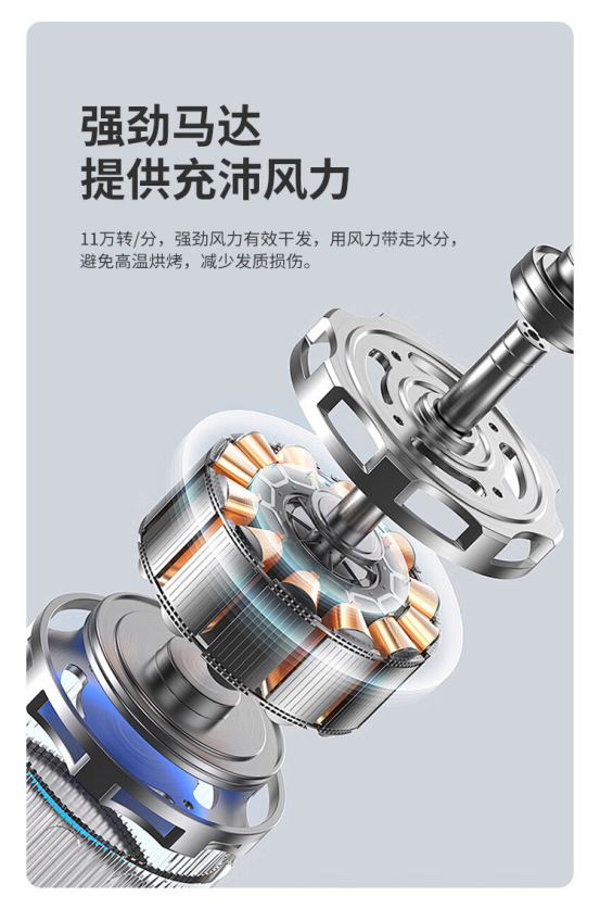 ✅高速无刷马达,110000转/分钟,强劲气流,快速干发