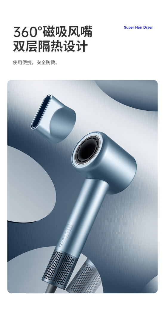 拿到手我就惊艳了 具备多种功能负离子护发、快速干燥、柔和模式等 ✅360度磁吸风嘴 ✅NTC智能恒温,自动调节温度,安全防烫 ✅1.6米长的电源线,吹风更自如 磁吸可拆卸风嘴,强劲大风量,急速吹干不久侯