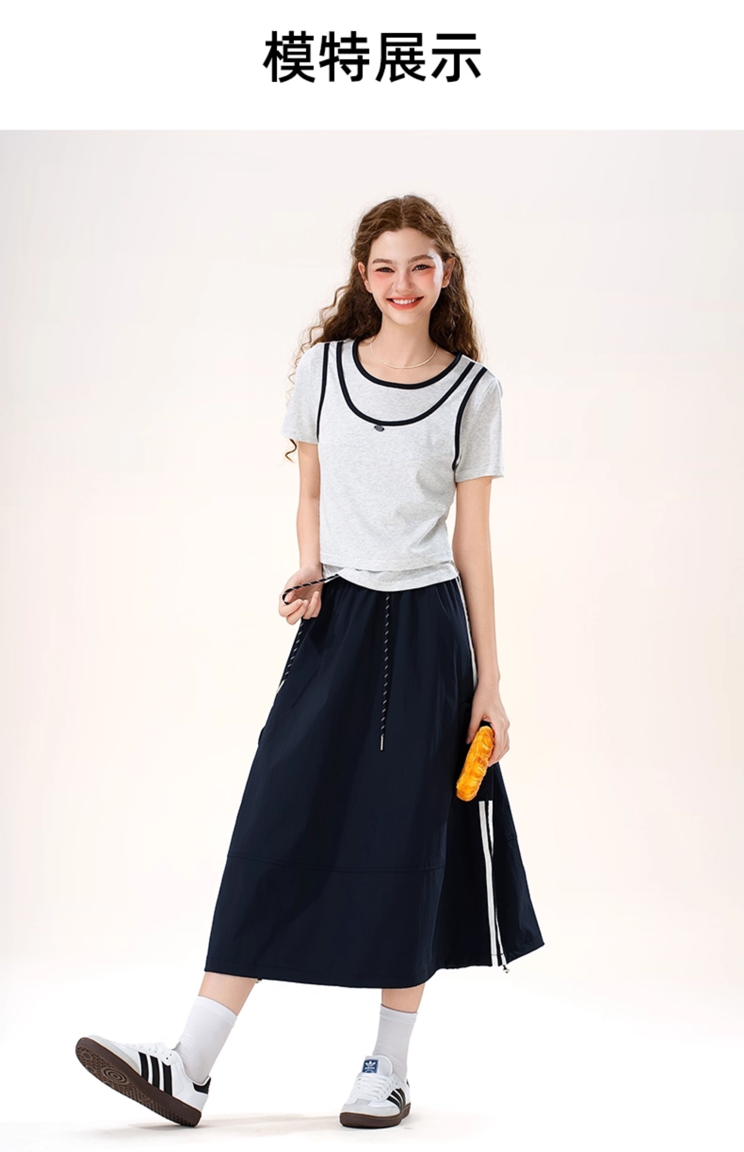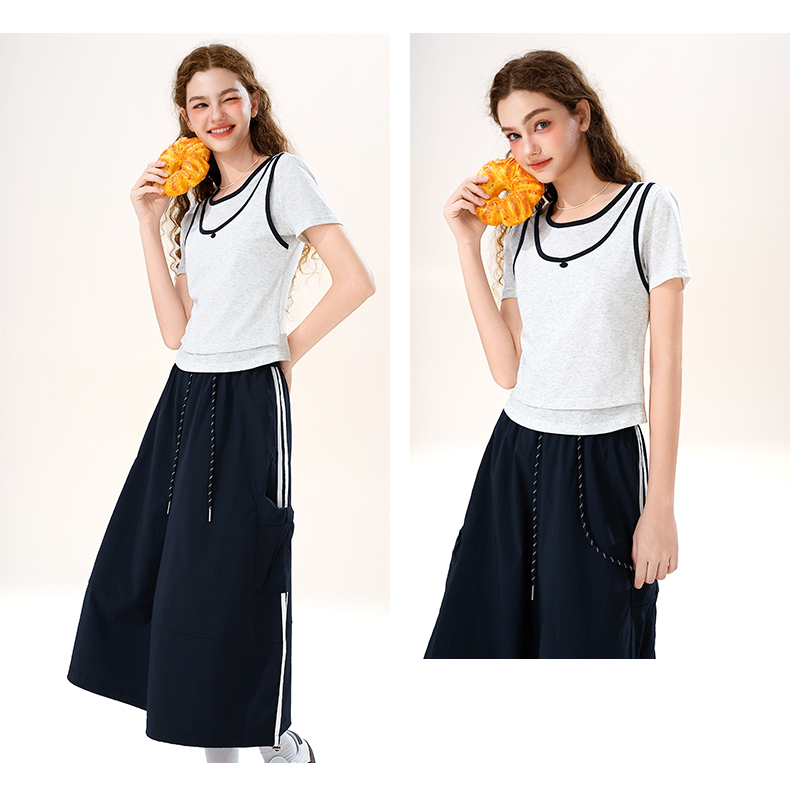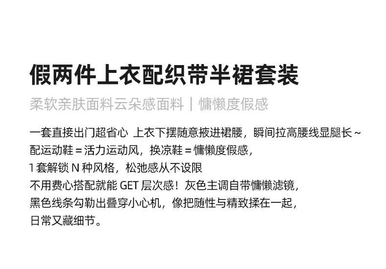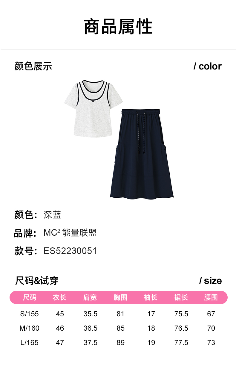 mc2假两件上衣配织带半身裙套装女装夏季新款时尚洋气两件套