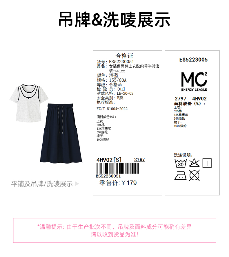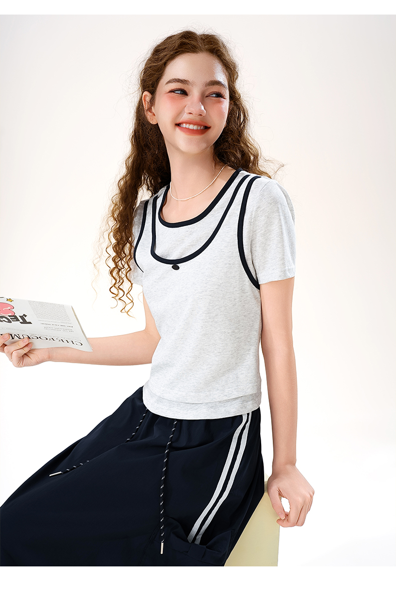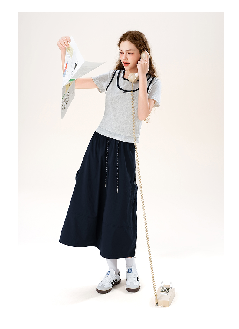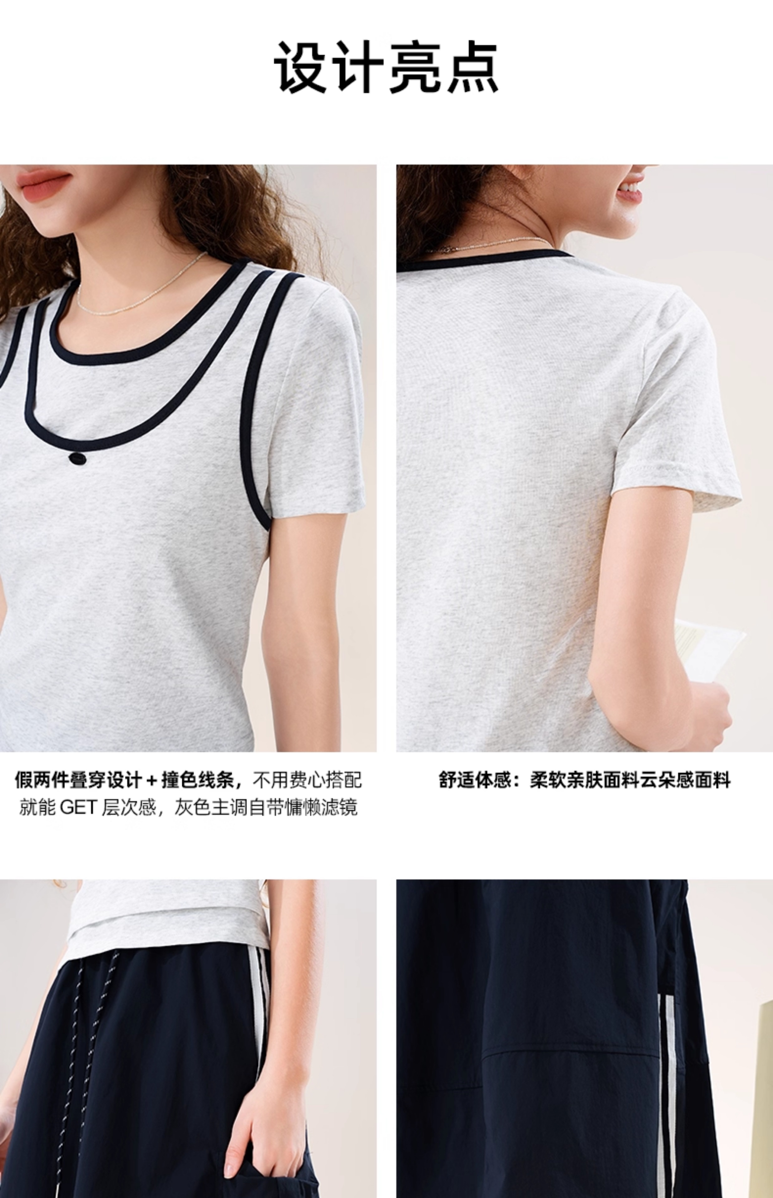 mc2假两件上衣配织带半身裙套装女装夏季新款时尚洋气两件套