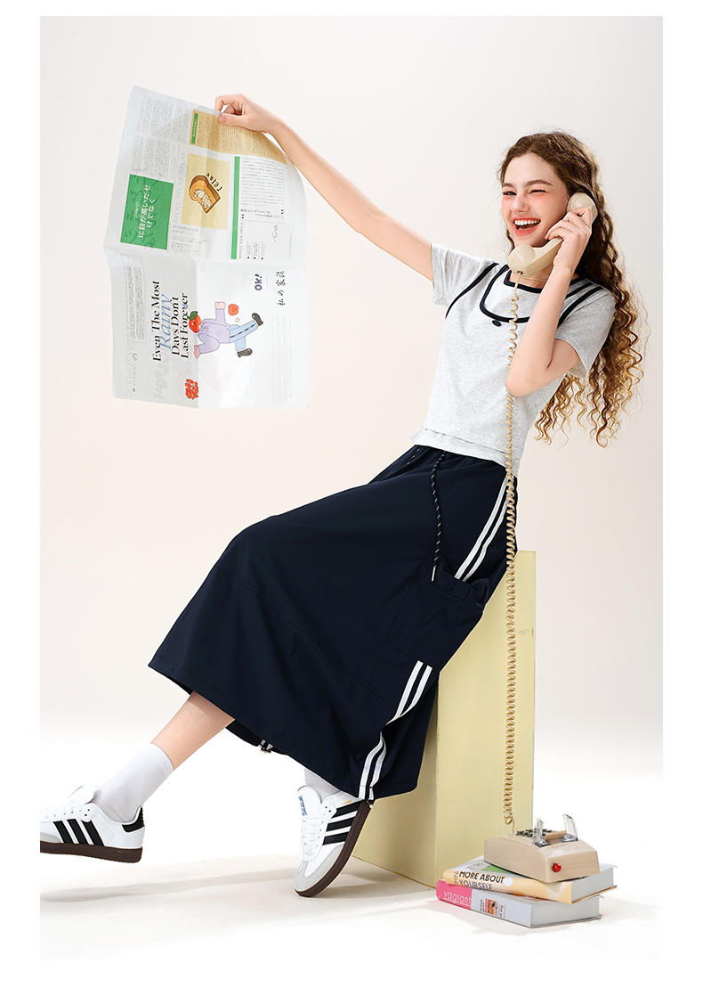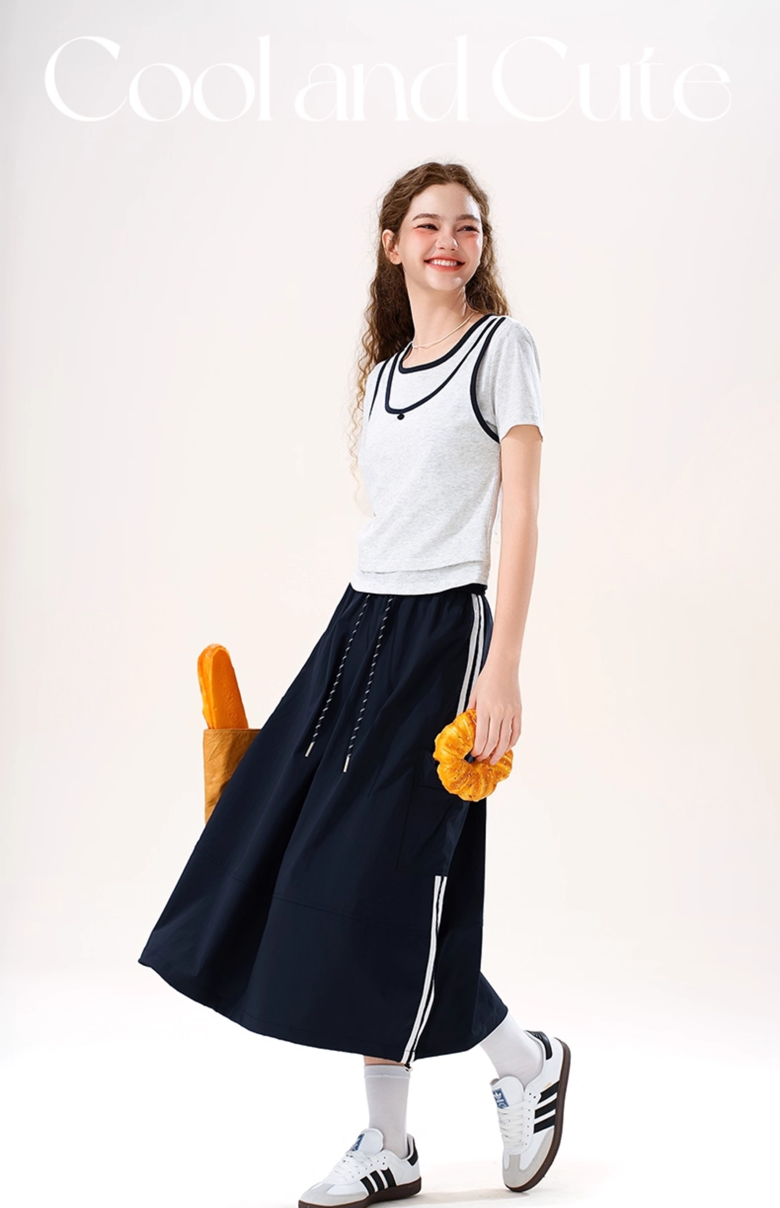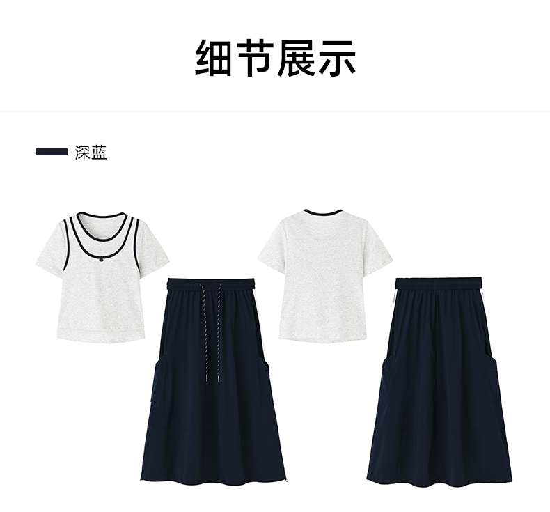女装圆领无袖A版娃娃衫+松紧腰半身裙套装-24398S4222398