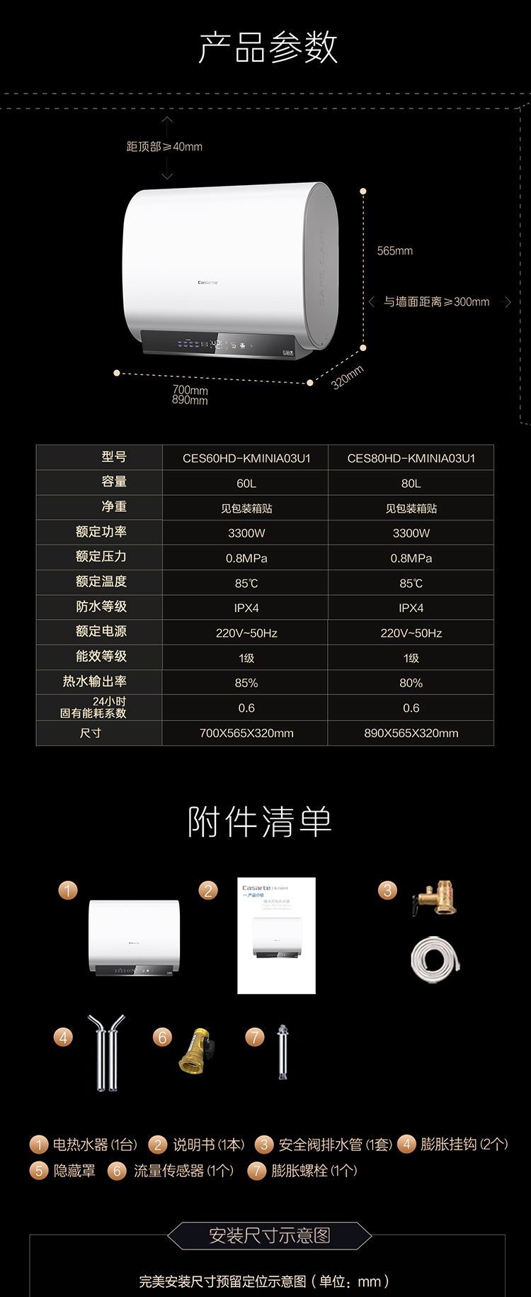卡萨帝(Casarte)热水器 CES60HD-KMINIA03U1
