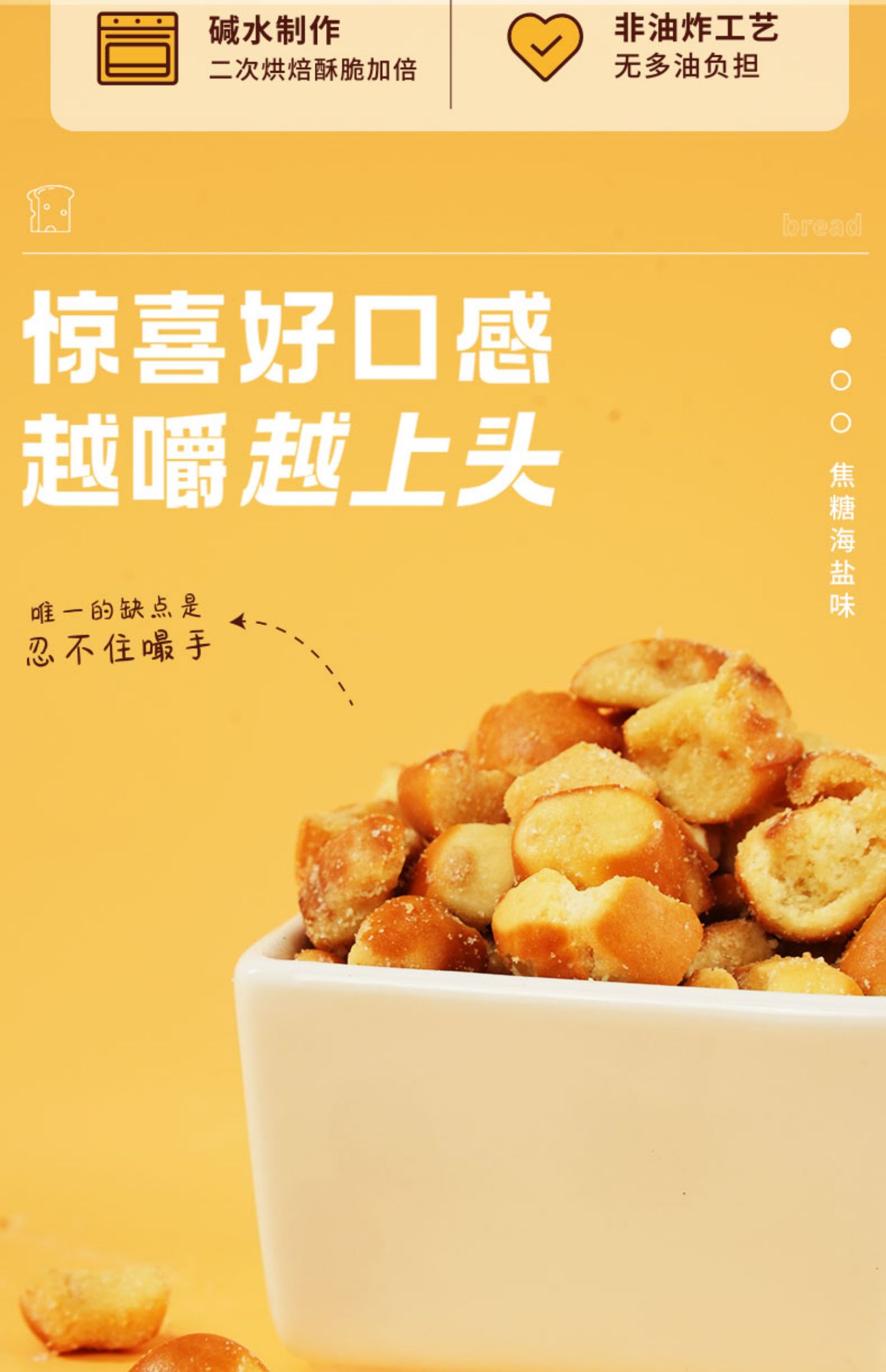 小饿小满足碱水香脆面包干 面包加点碱 健康多一点