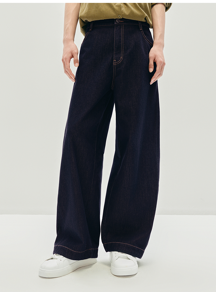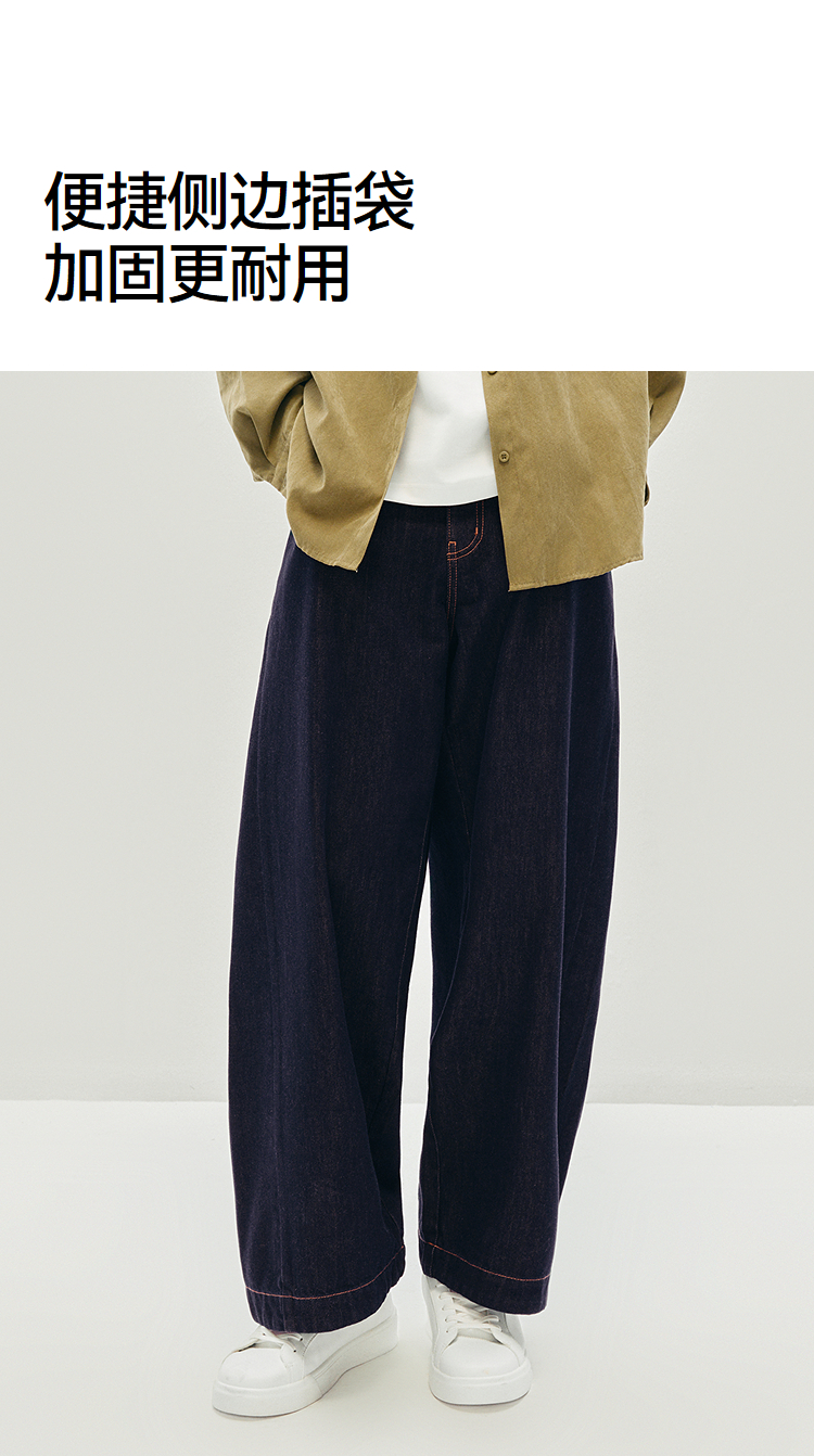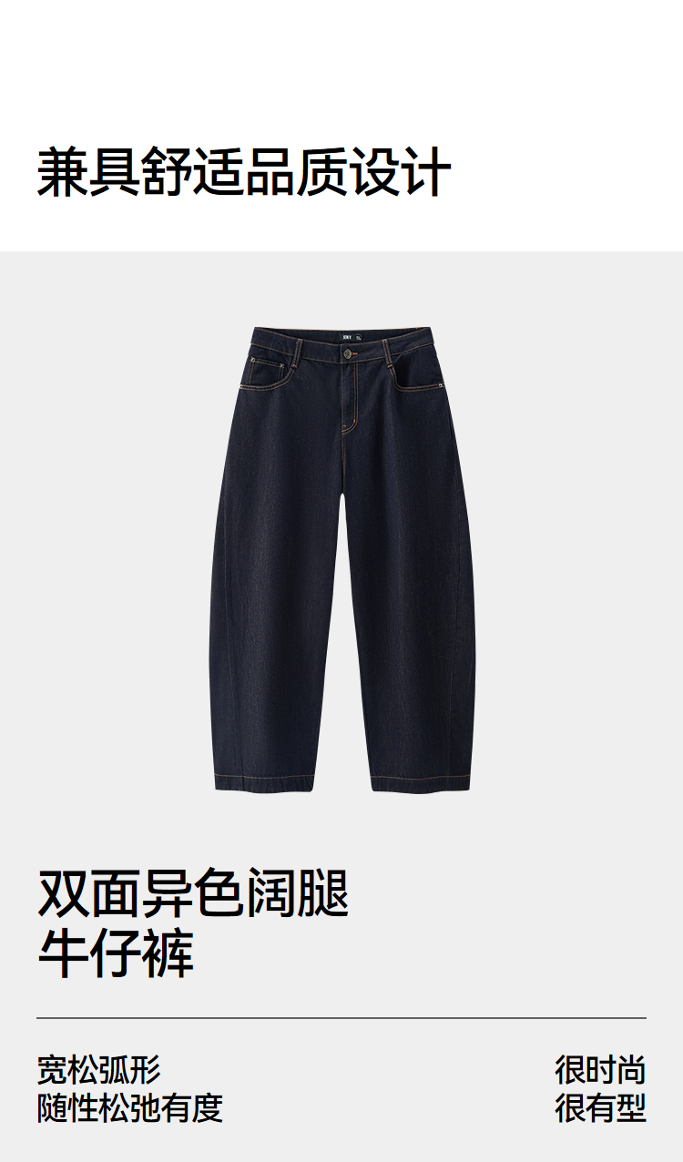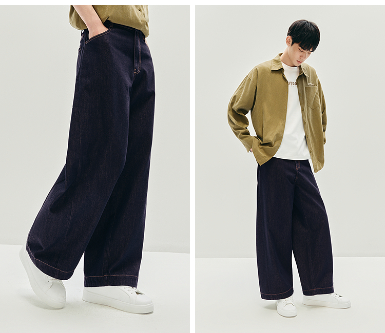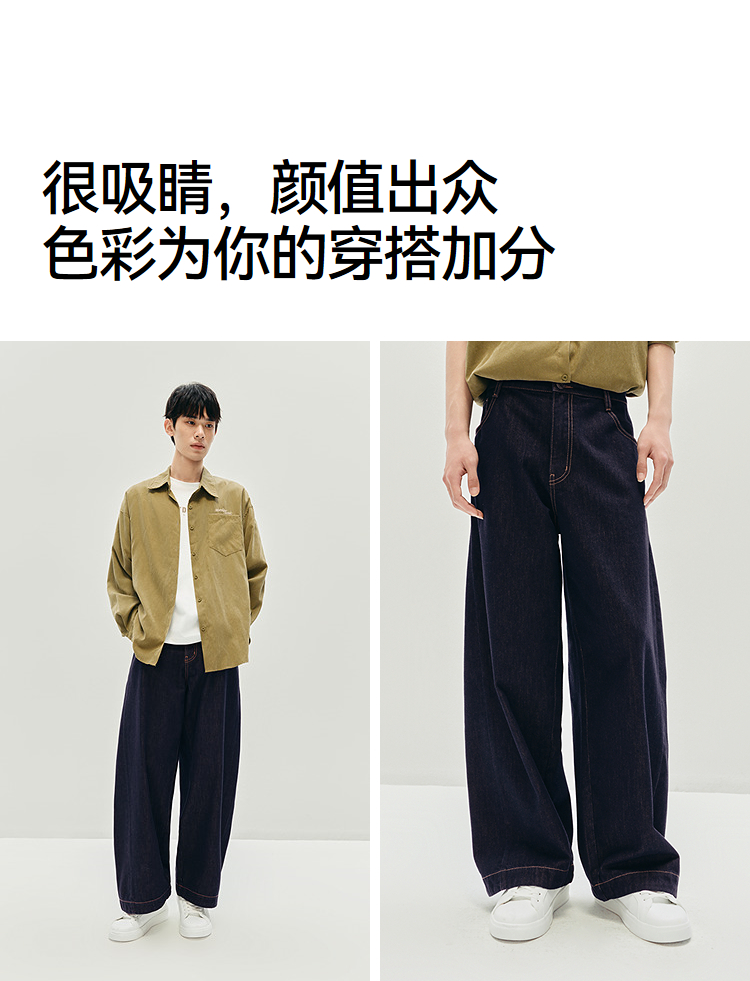 森马牛仔裤男秋季宽松弧形阔腿裤2025新款松弛感深色可翻边长裤子