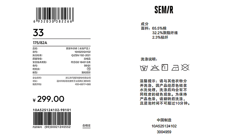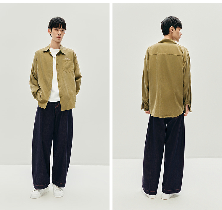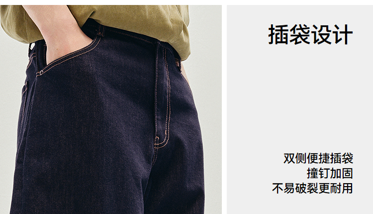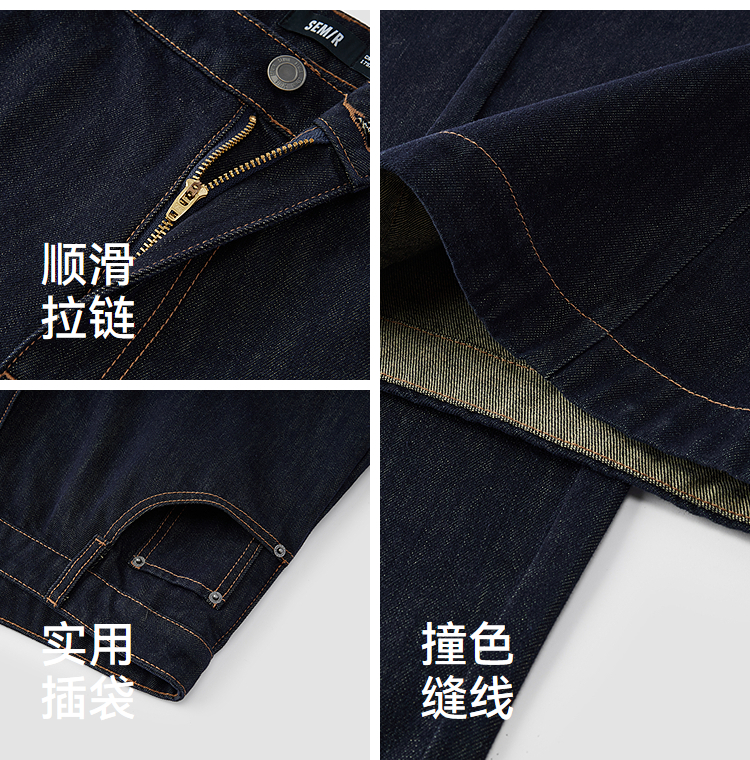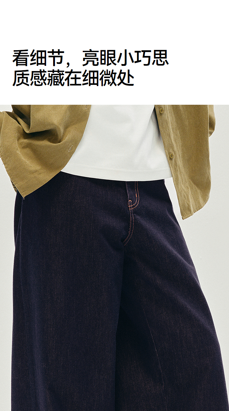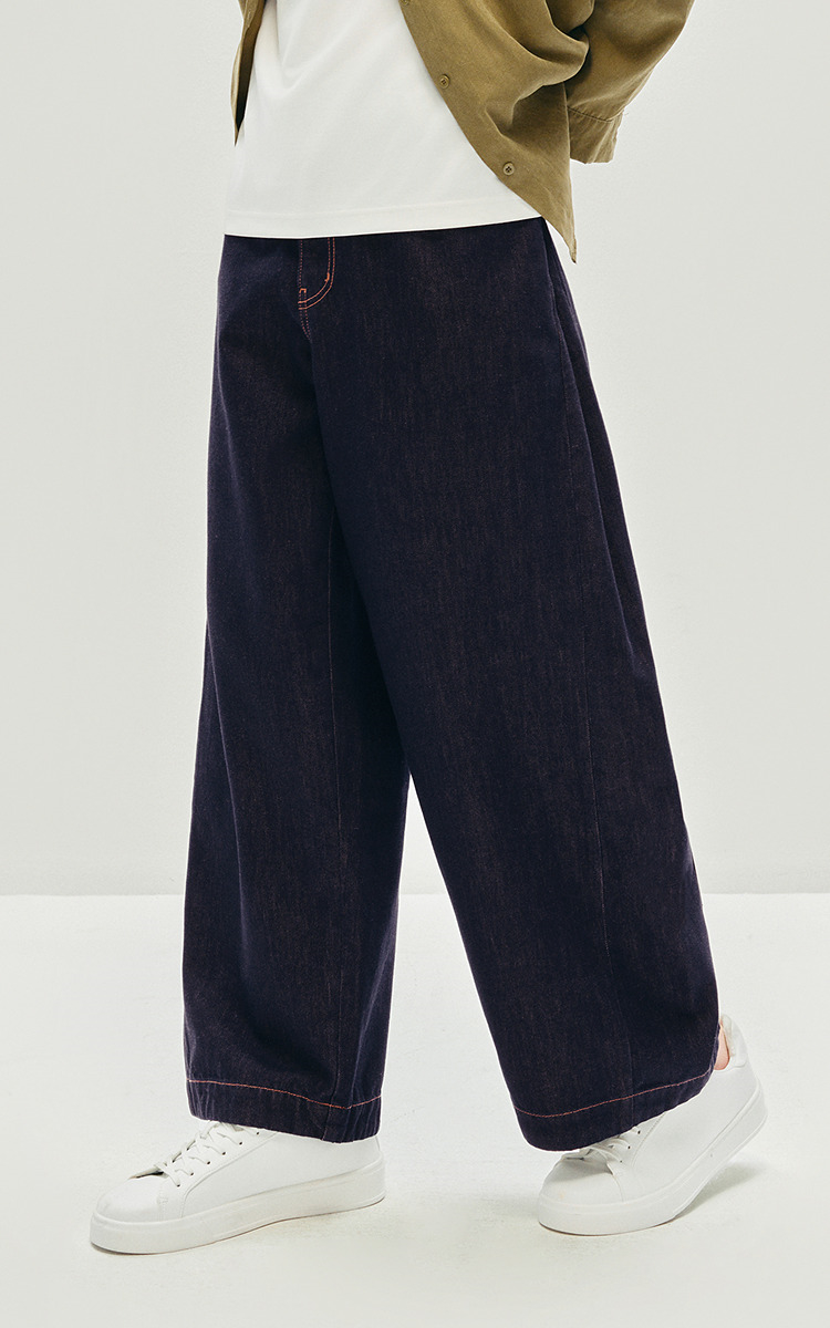 森马牛仔裤男秋季宽松弧形阔腿裤2025新款松弛感深色可翻边长裤子