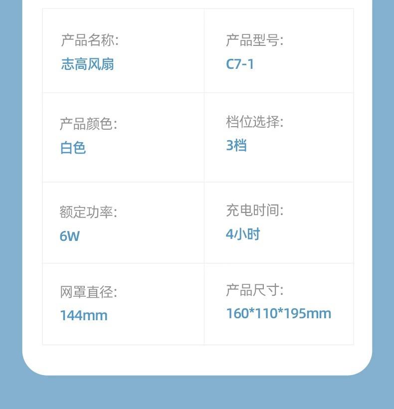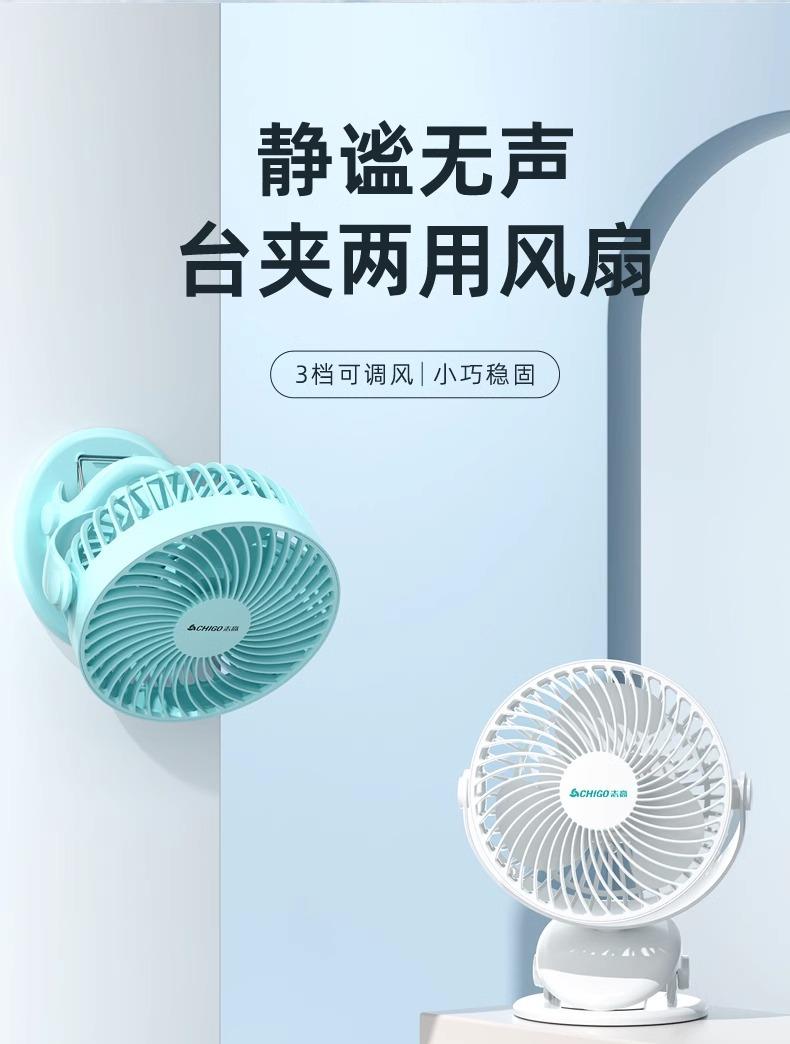 志高小风扇USB充电台夹扇办公室桌面小型家用宿舍电风扇便携式