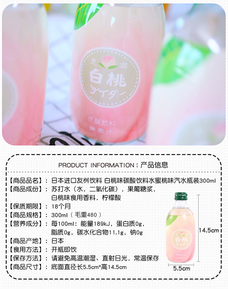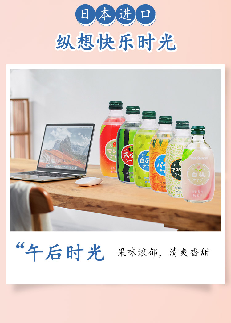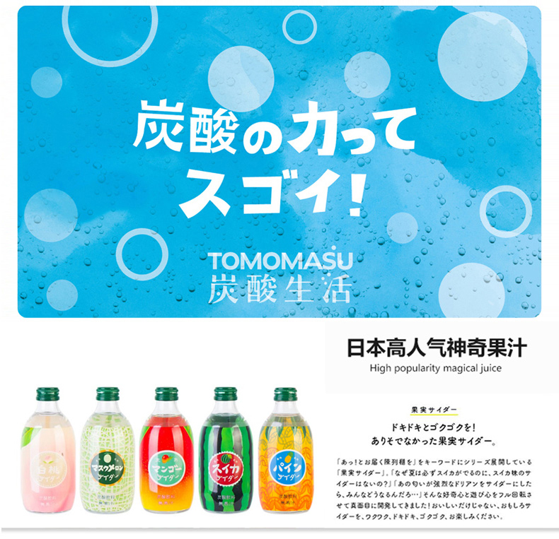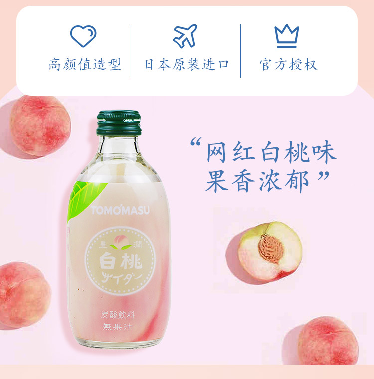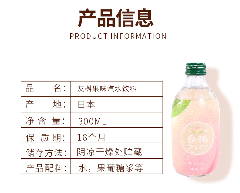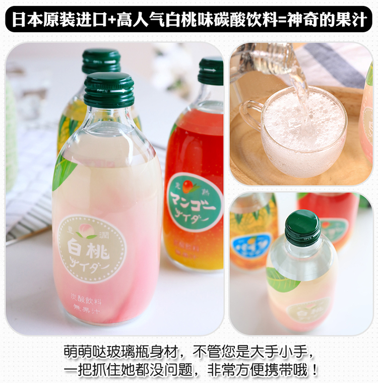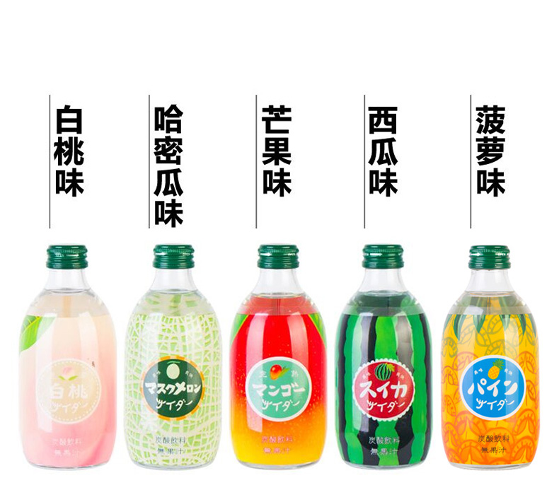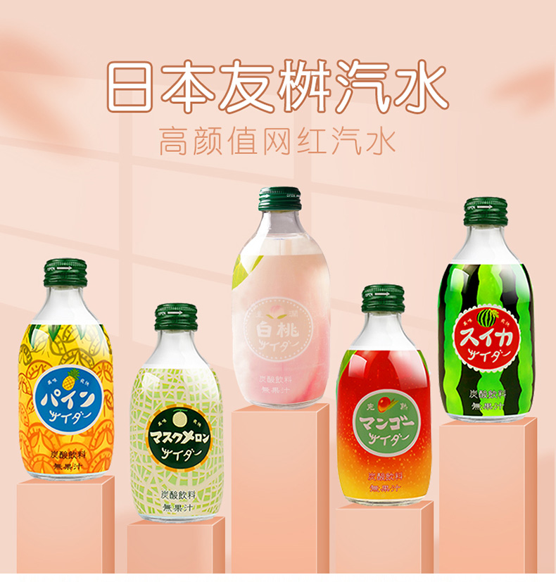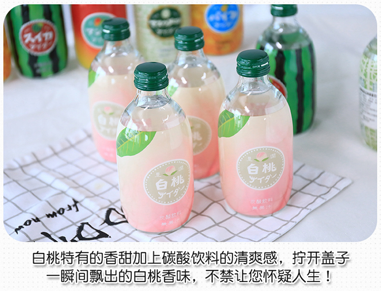 【中欧班列直供4瓶】日本汽水 原装进口日本友桝白桃味菠萝汽水300ml/瓶