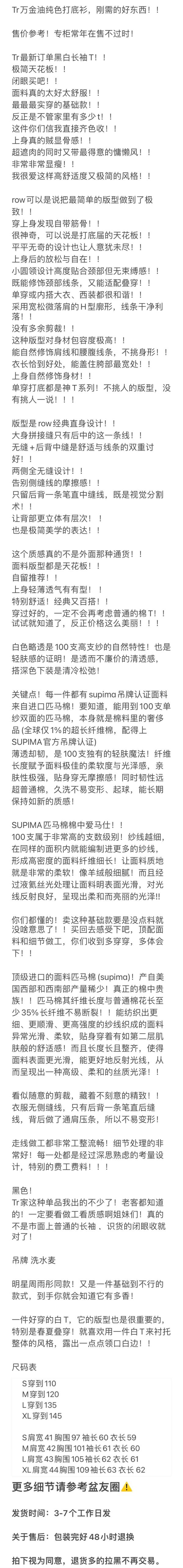 重磅! Row长袖T恤 100支超柔不透 松弛感叠穿长袖TEE恤