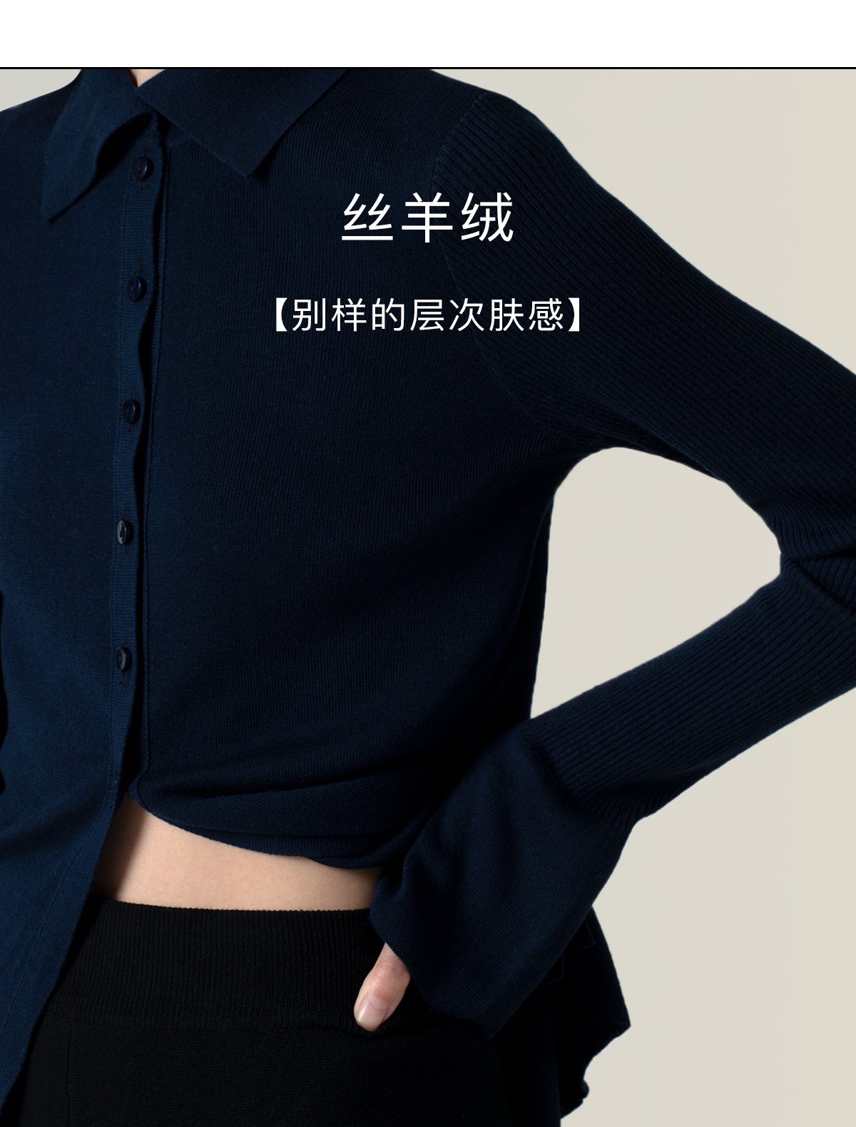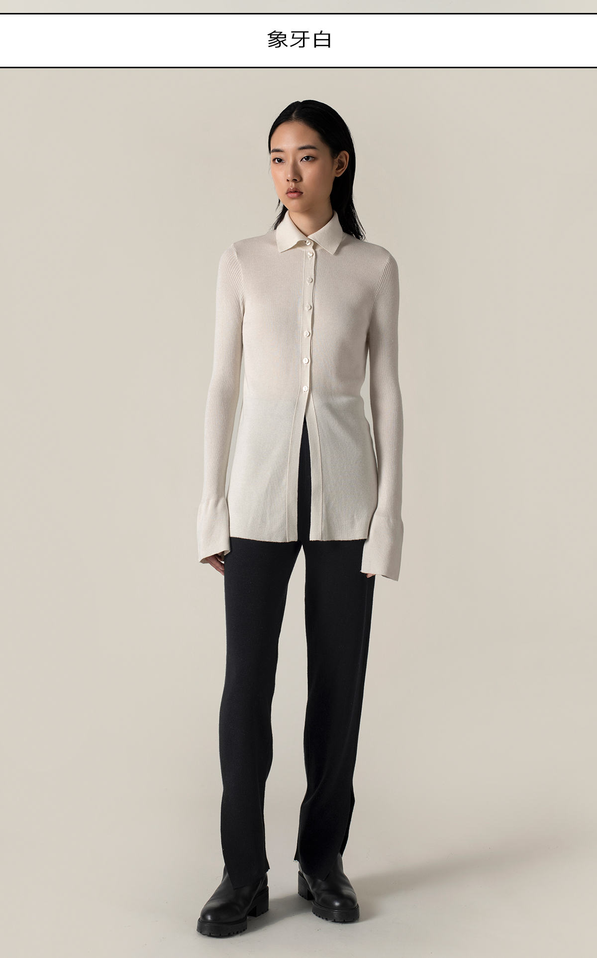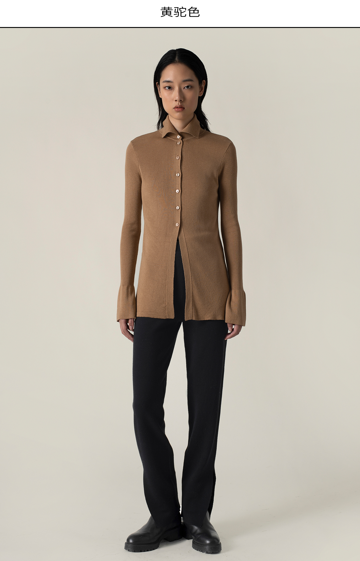 322工房丝羊绒翻领针织衬衣2022新款长袖修身外搭外套上衣女A950