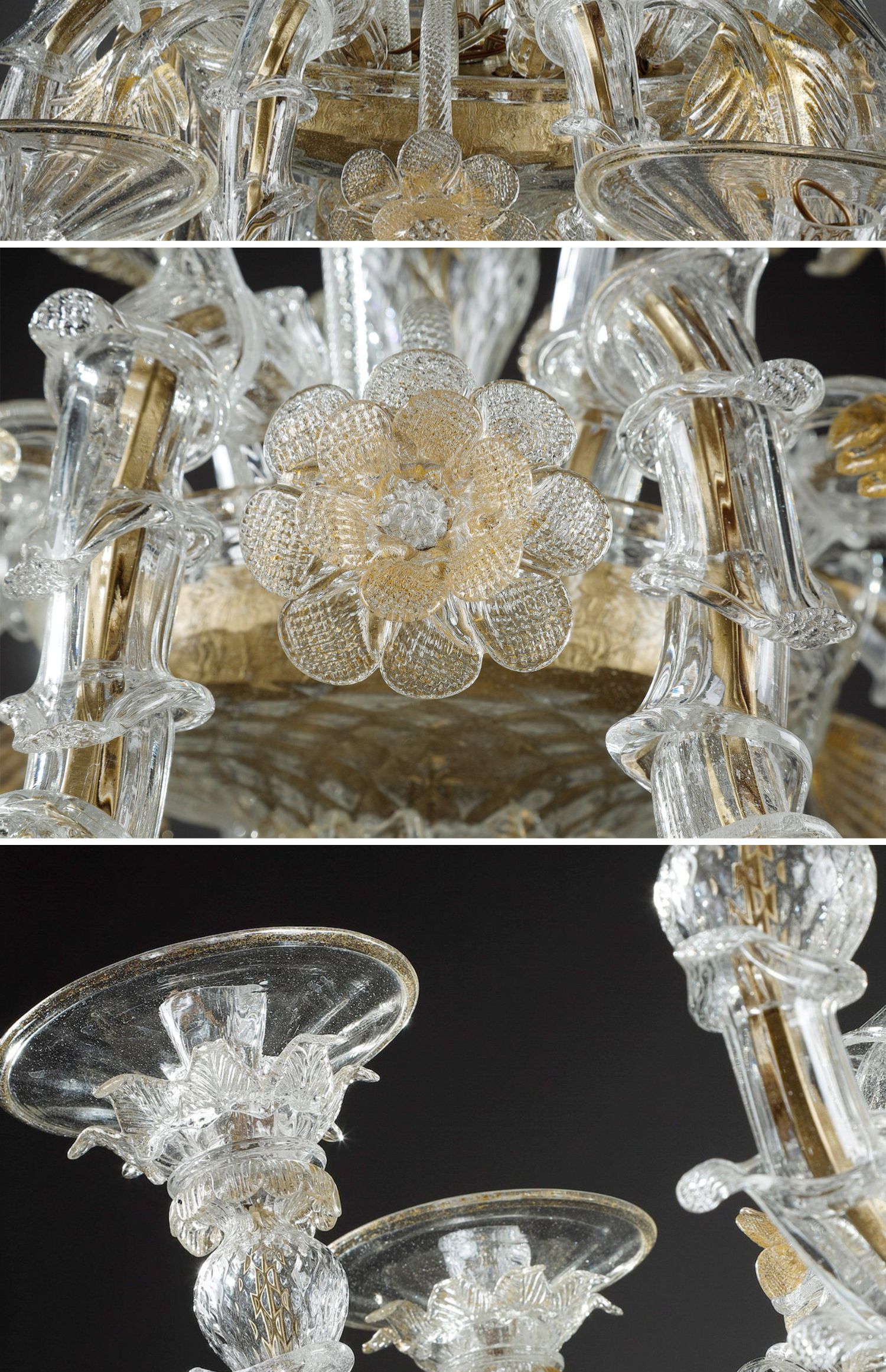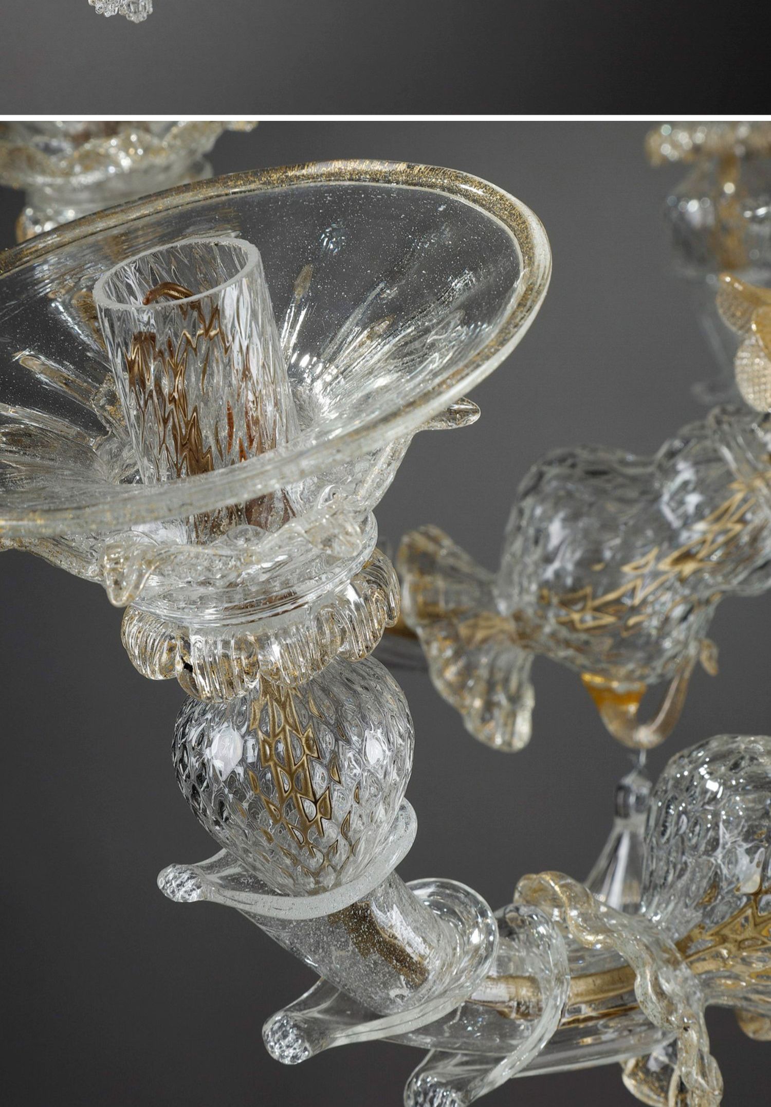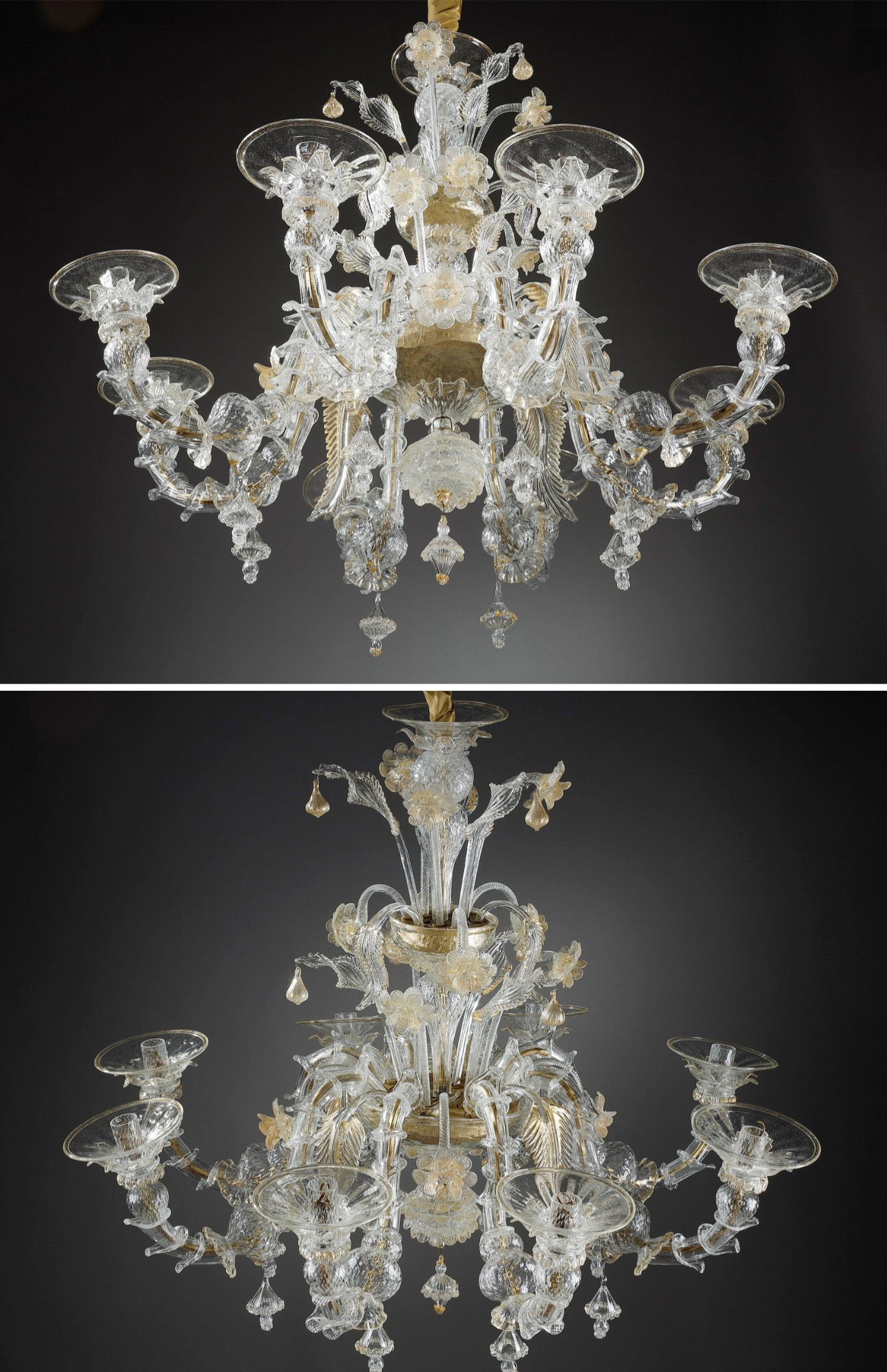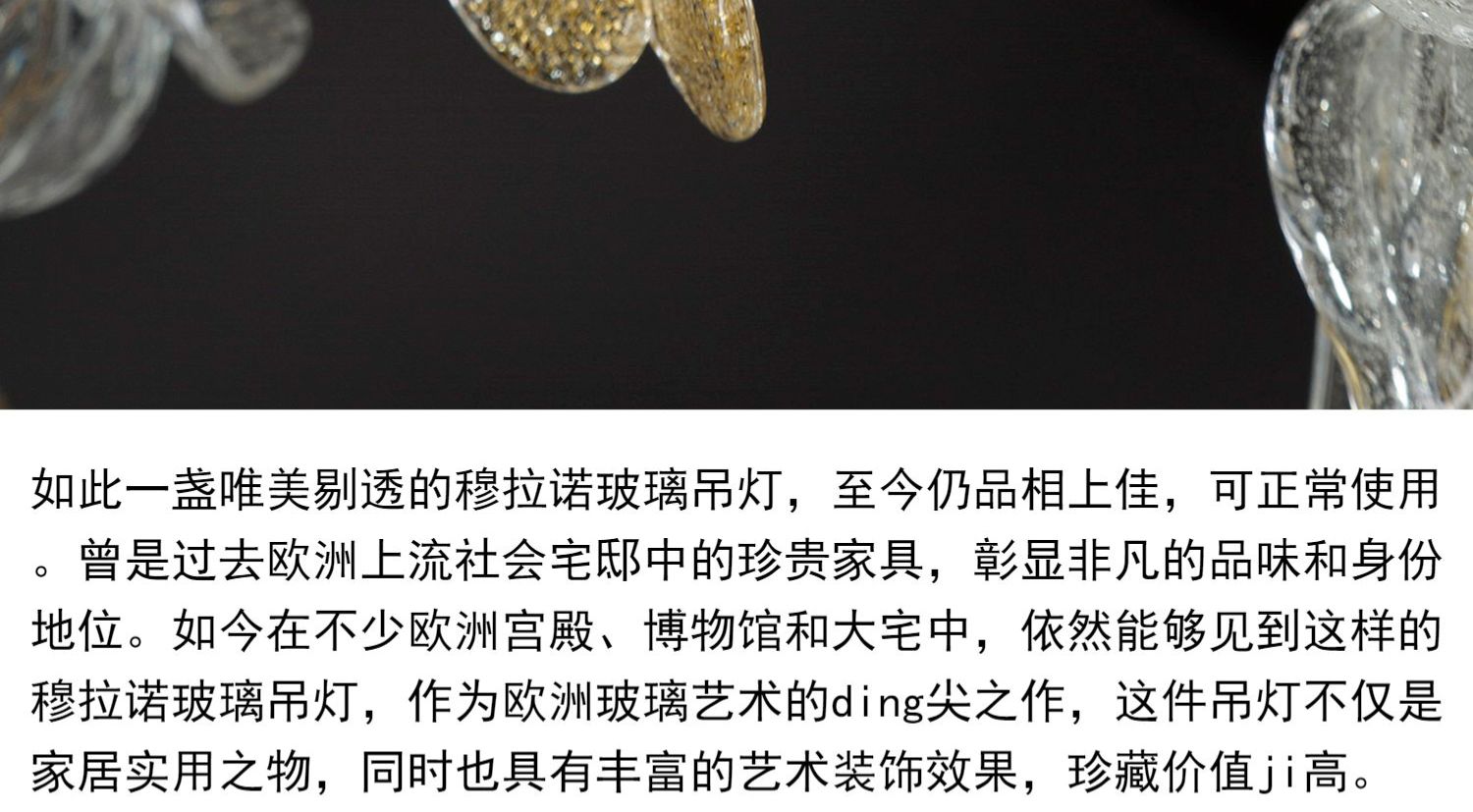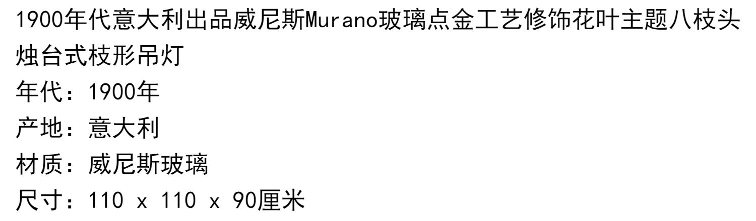 独角鹿西洋古董威尼斯Murano玻璃点金工艺花叶八枝头烛台枝形吊灯