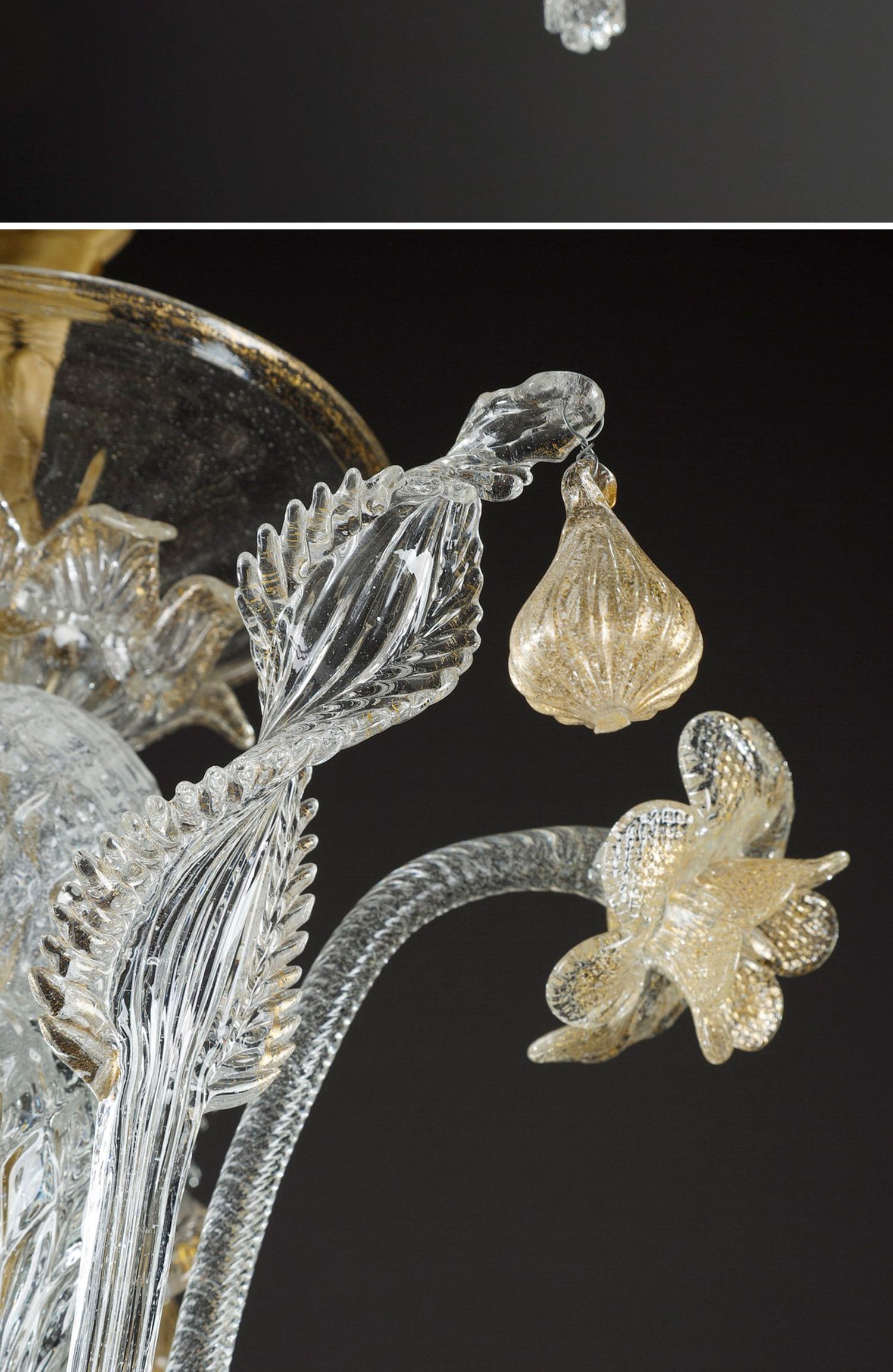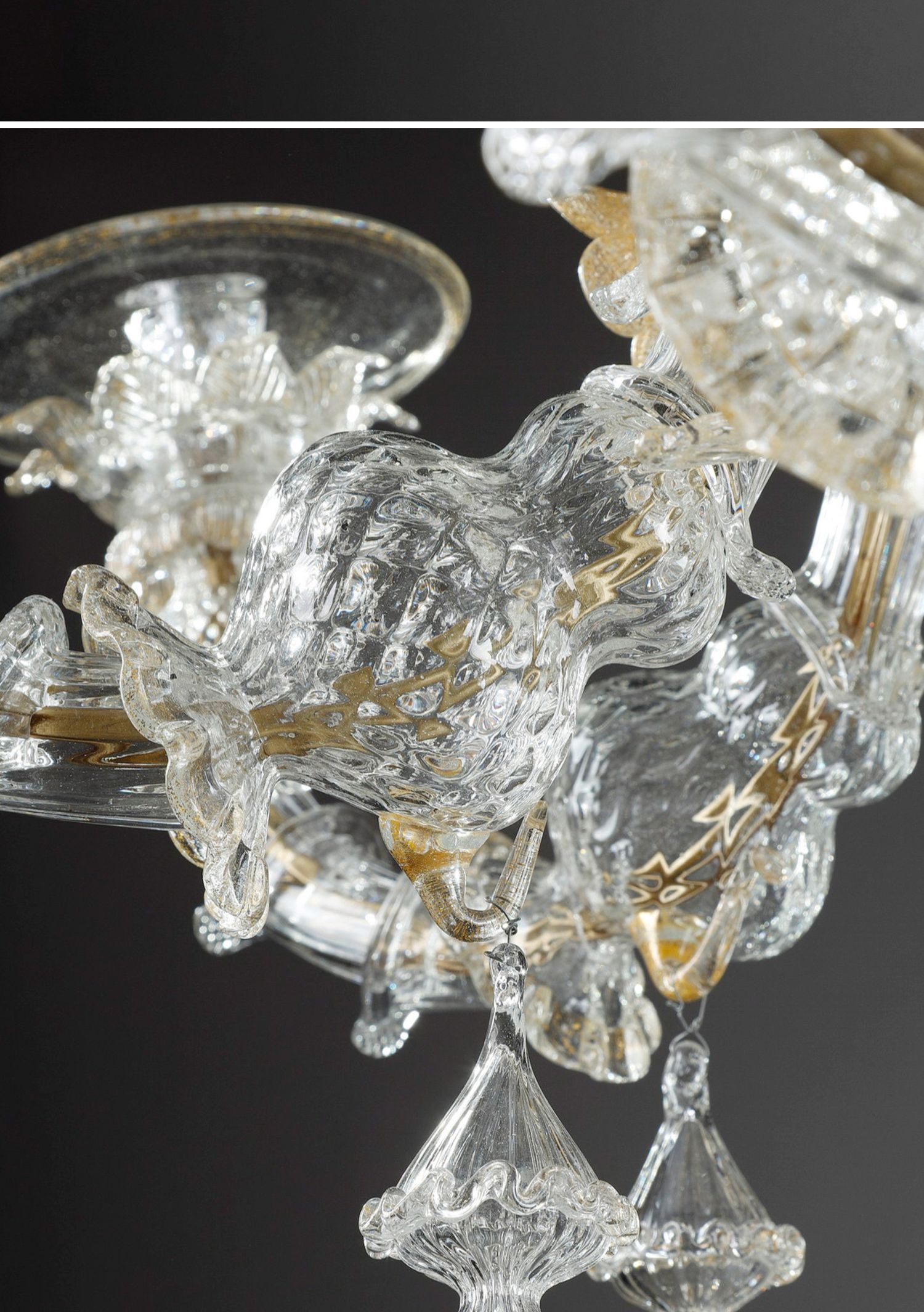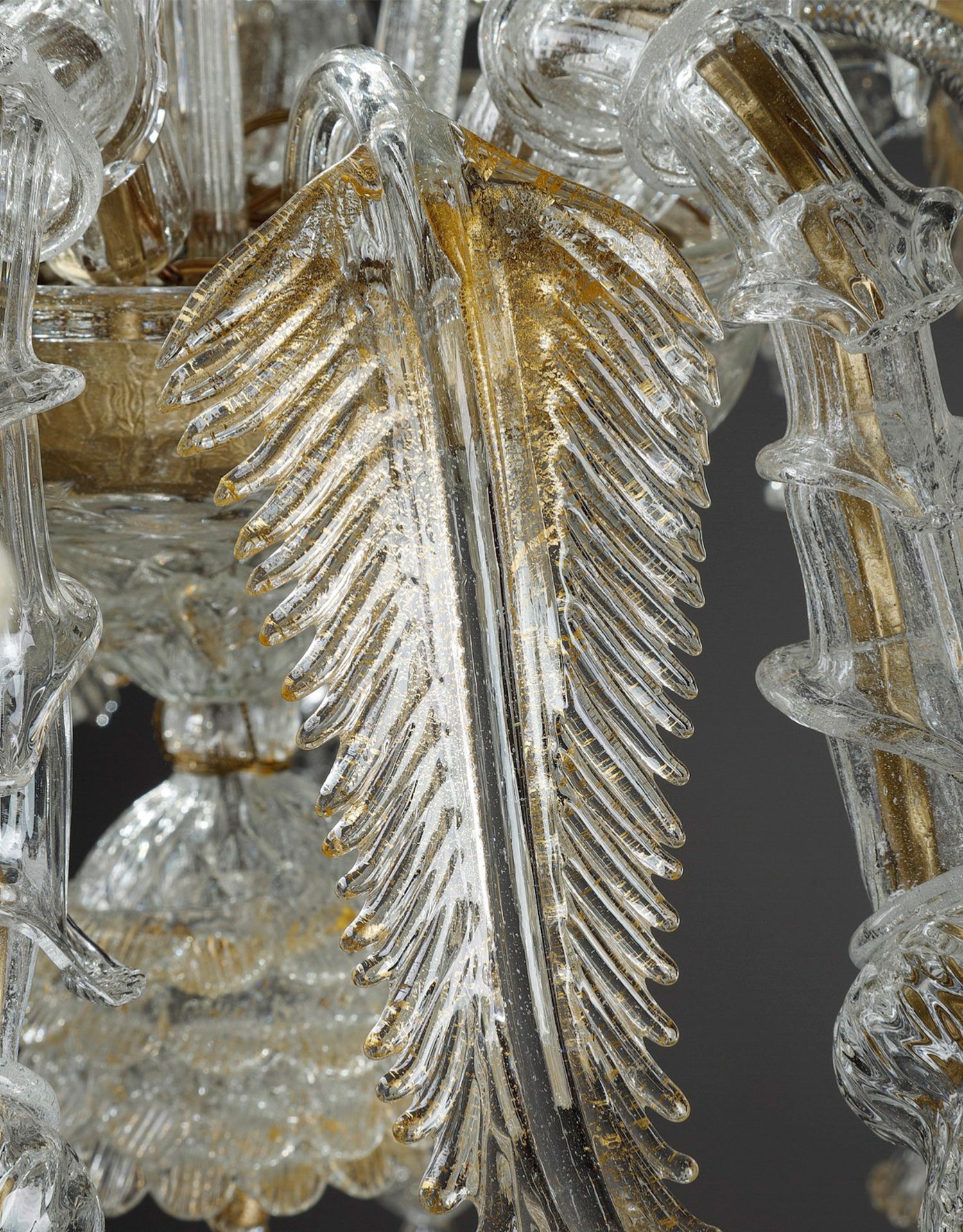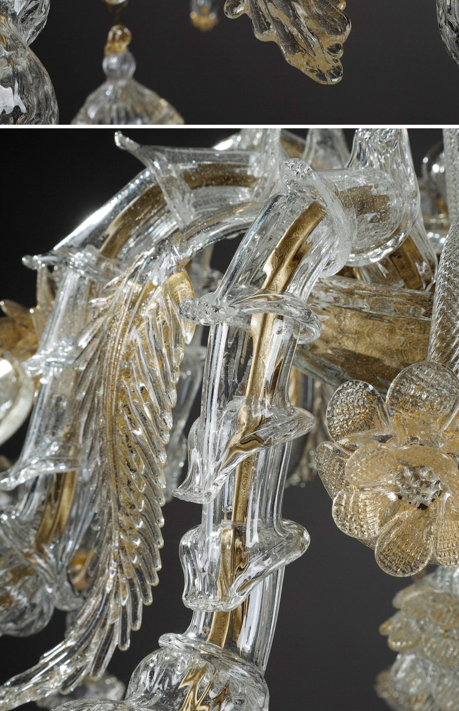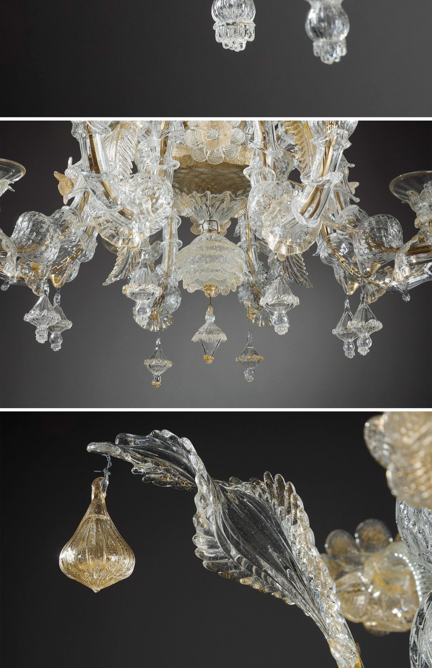 独角鹿西洋古董威尼斯Murano玻璃点金工艺花叶八枝头烛台枝形吊灯