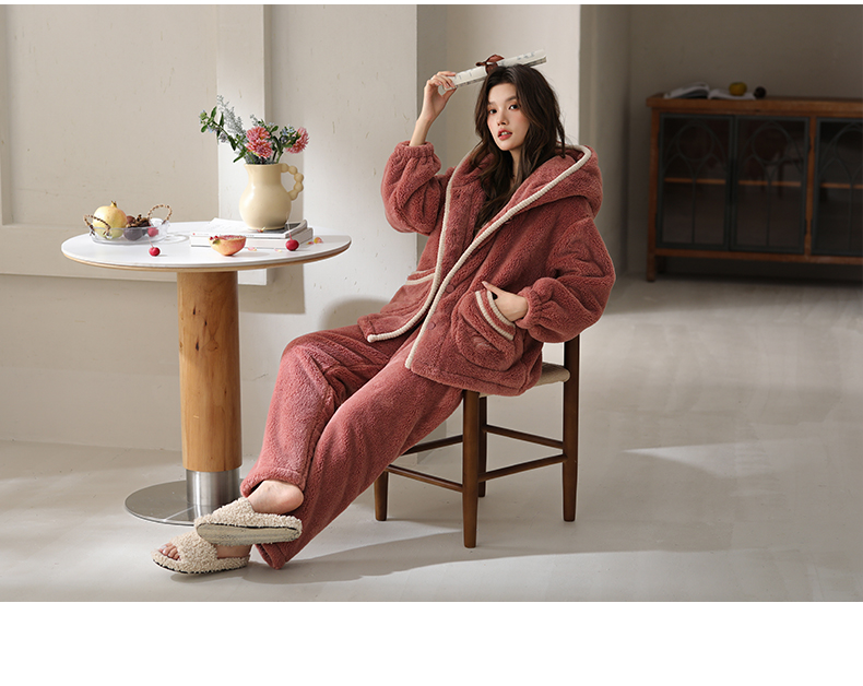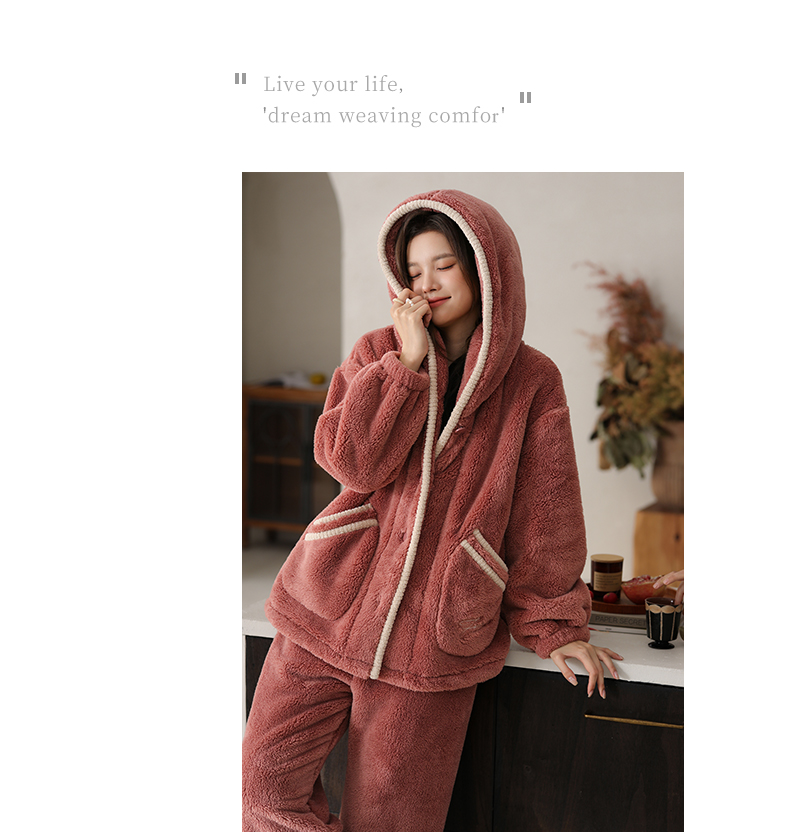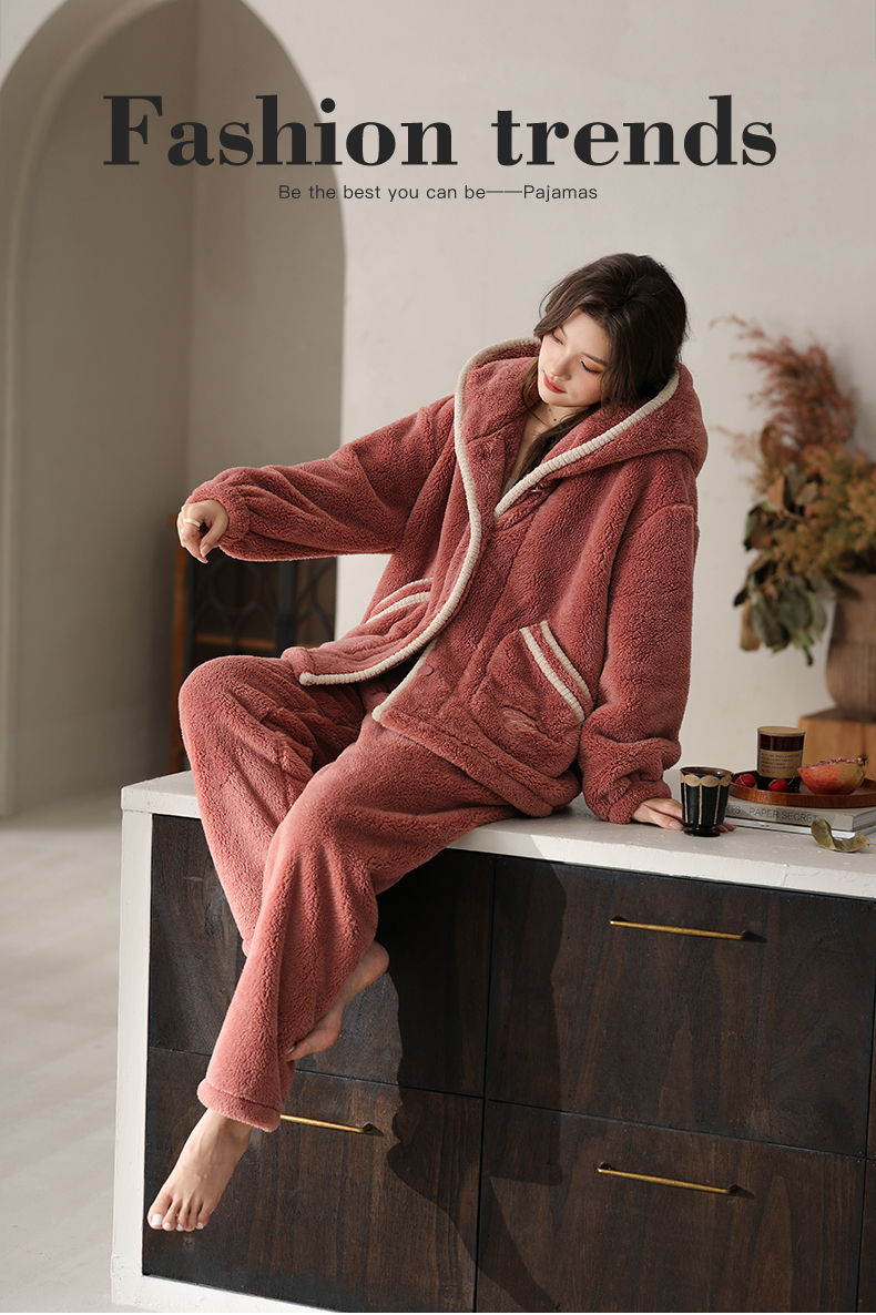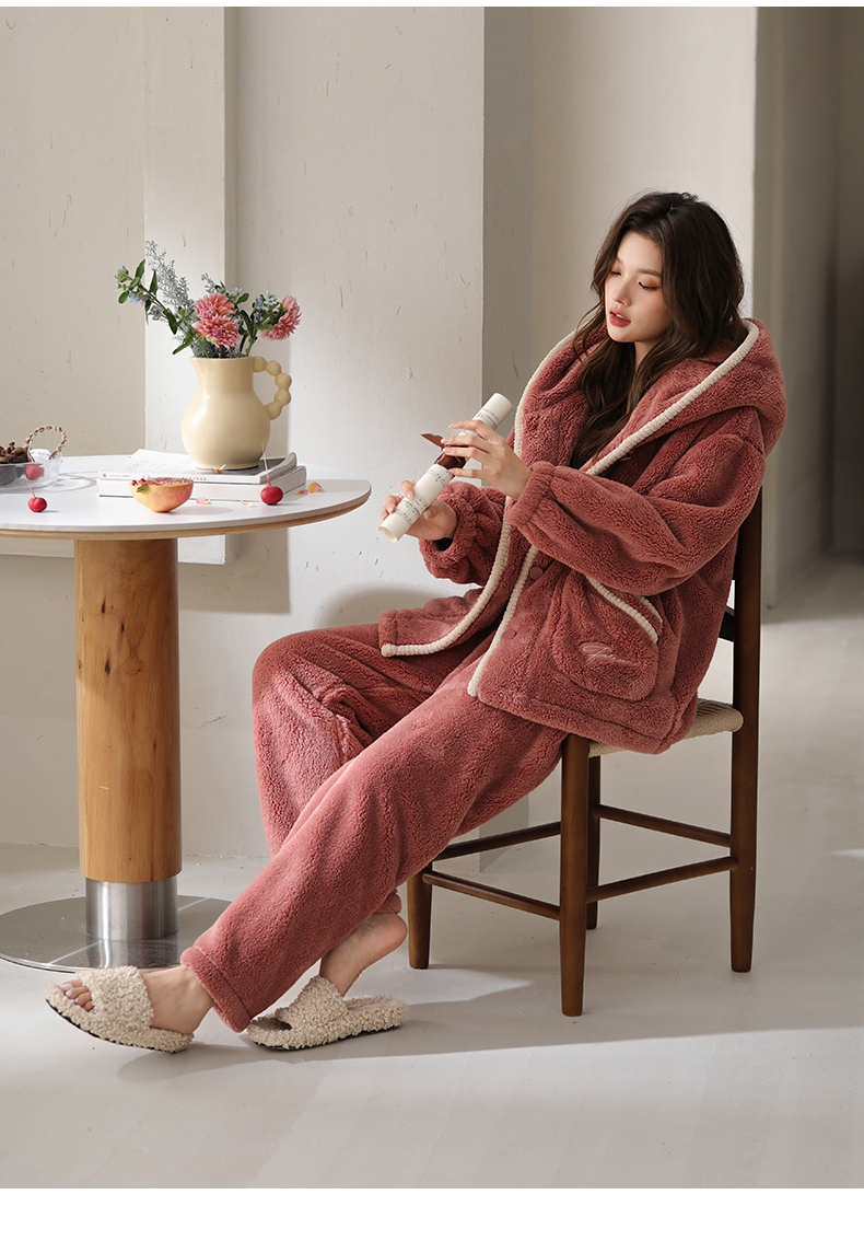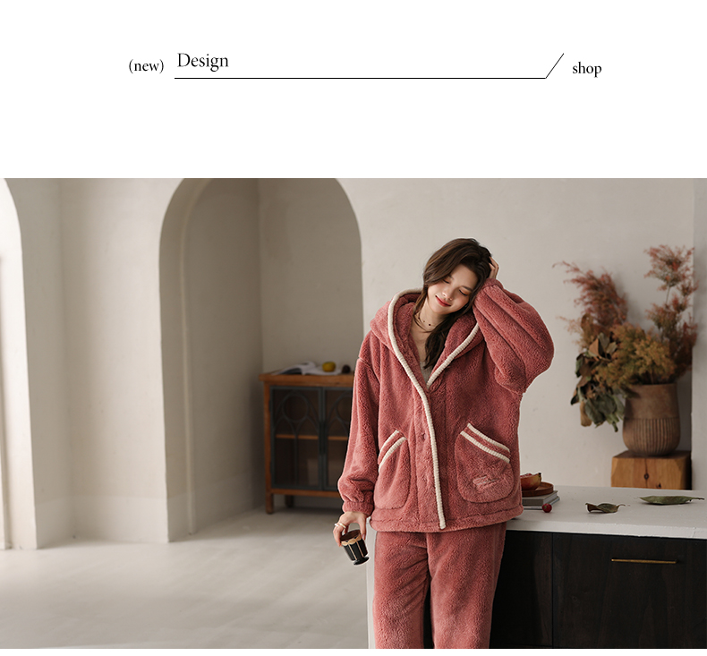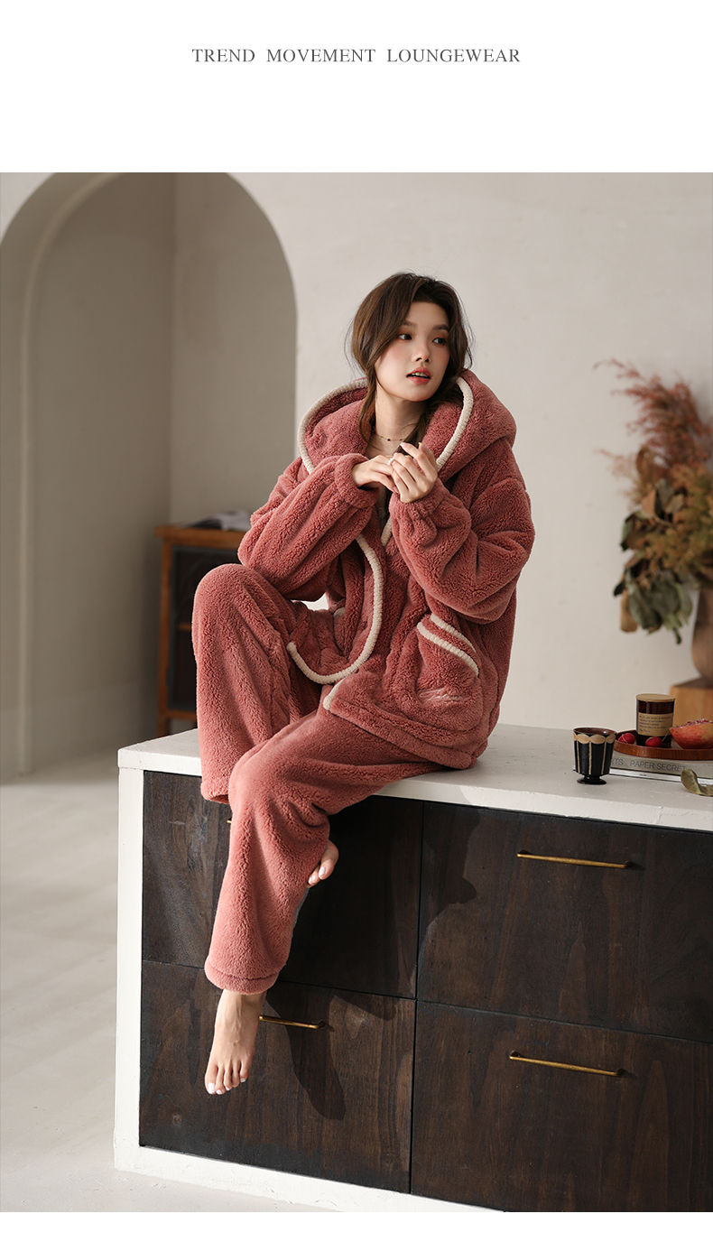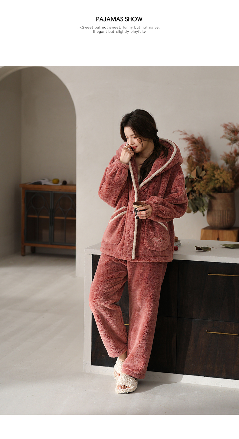 可人儿原创冬季舒棉绒女士睡衣韩系加厚保暖可外穿珊瑚绒家居服