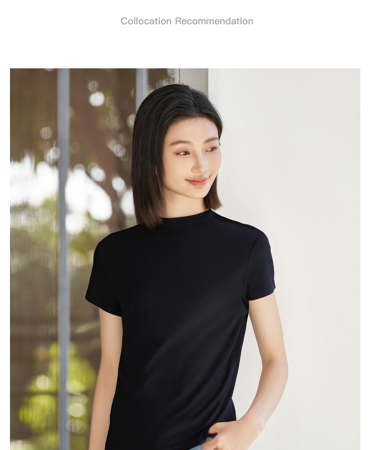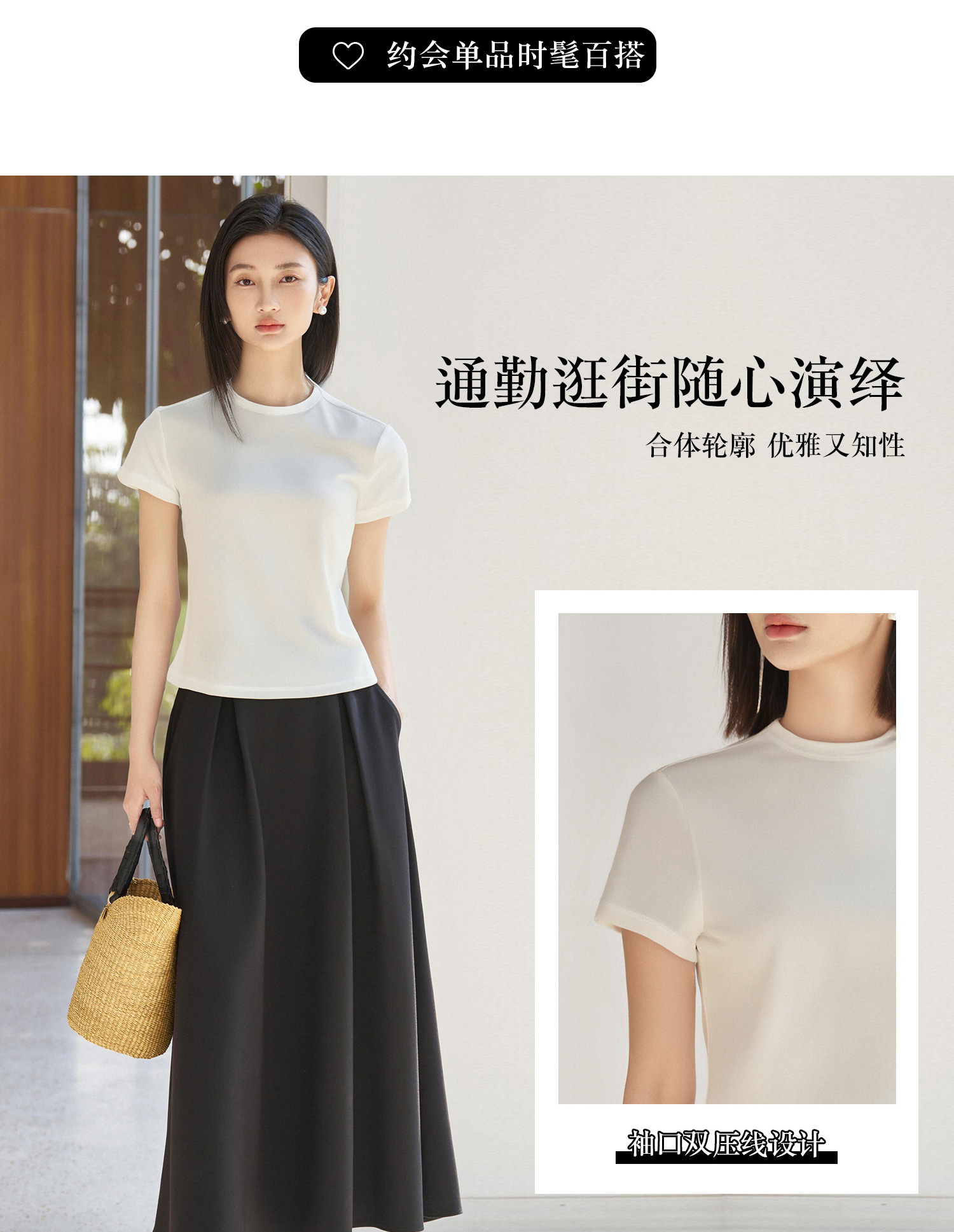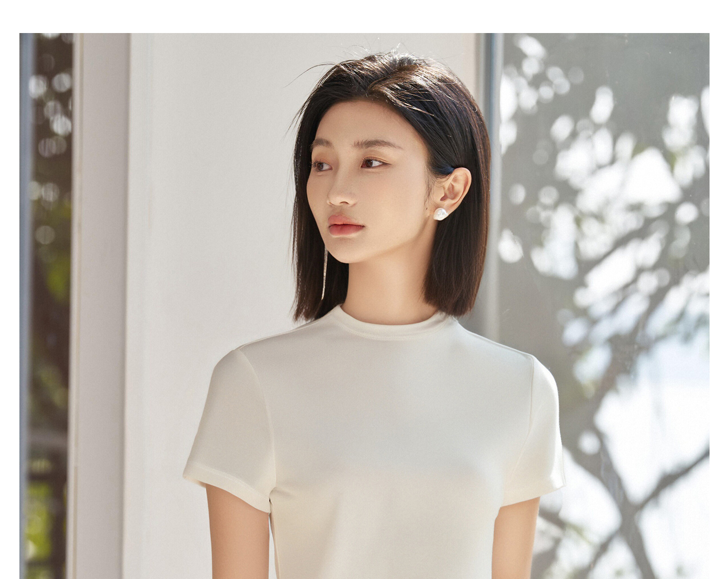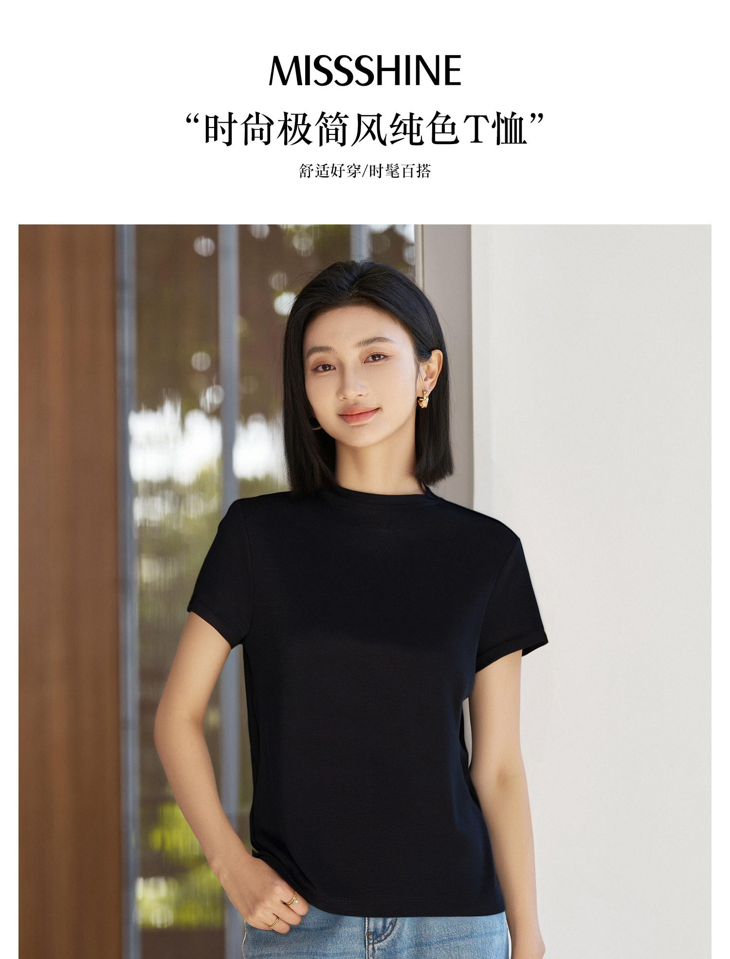 莱赛尔醋酸真丝T恤 时尚极简风纯色T恤 百搭不挑 人 短袖上衣女1244