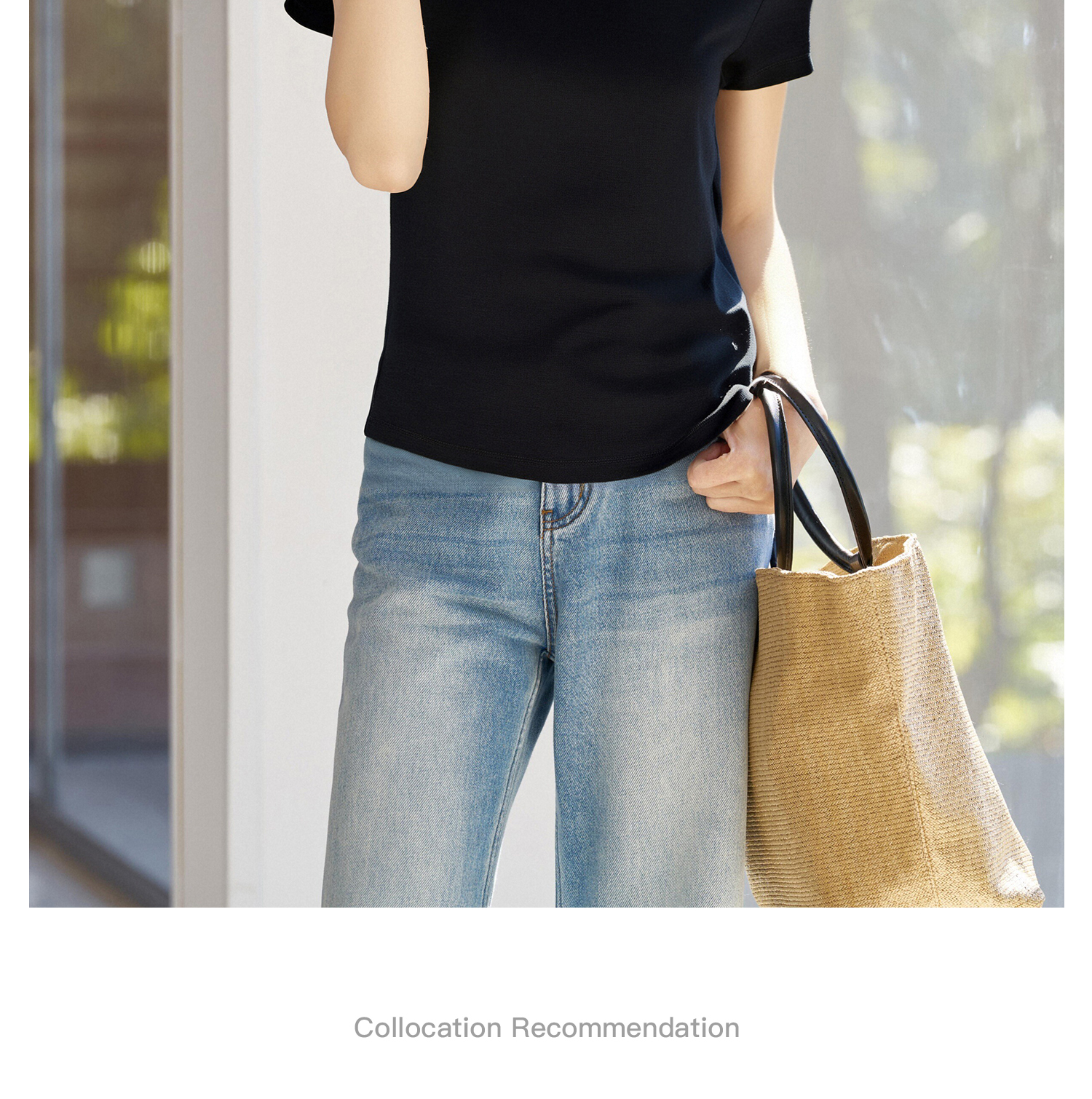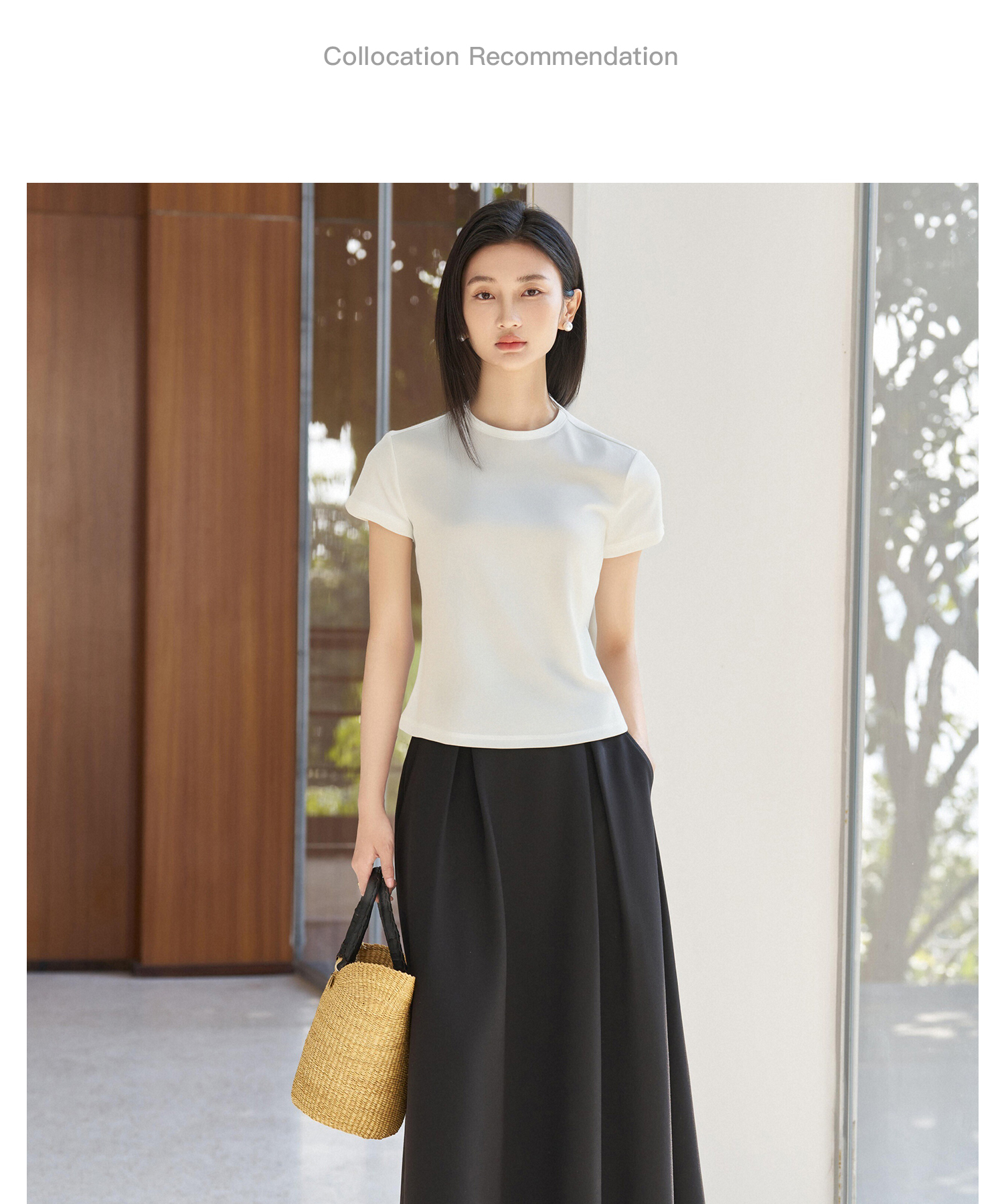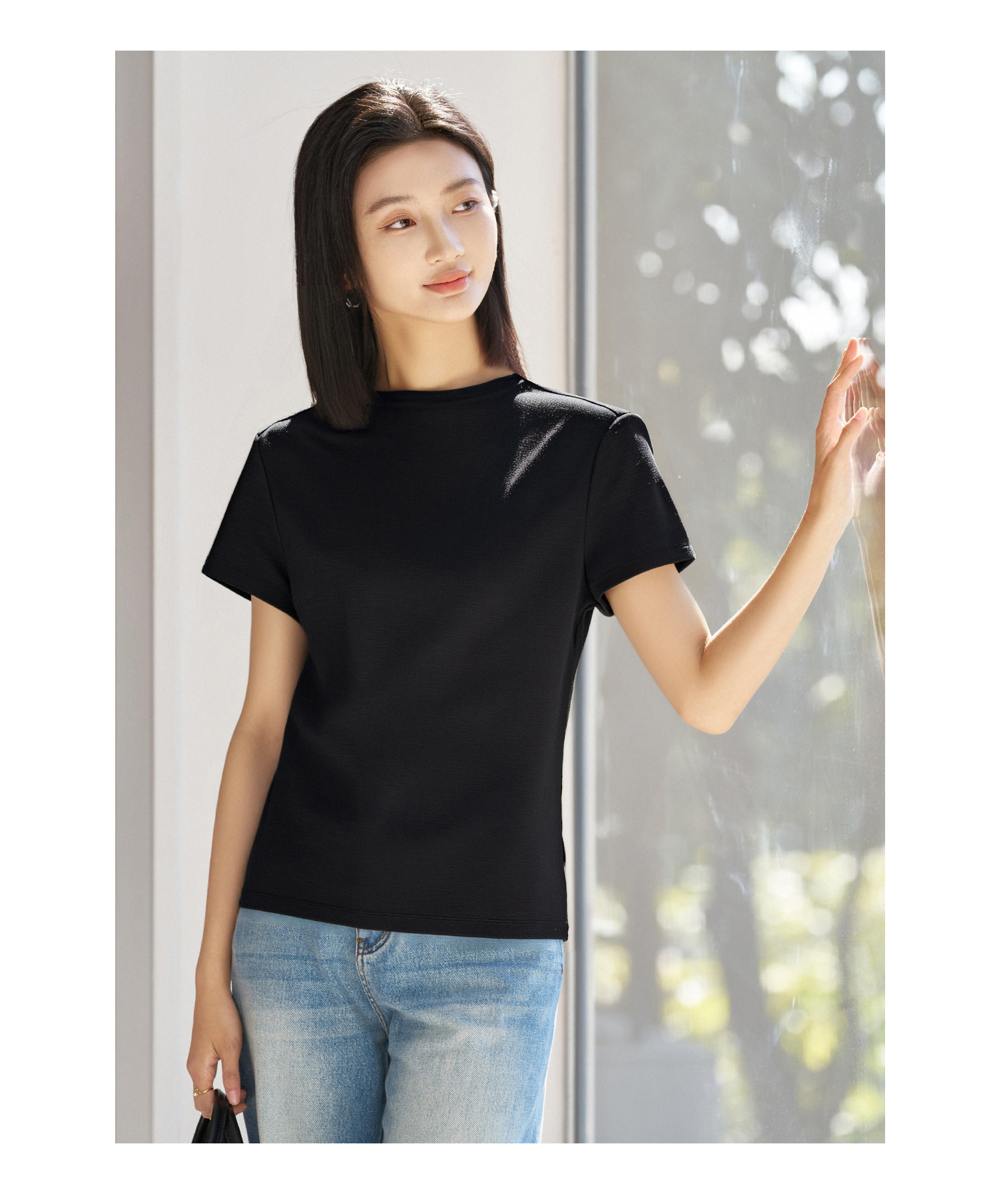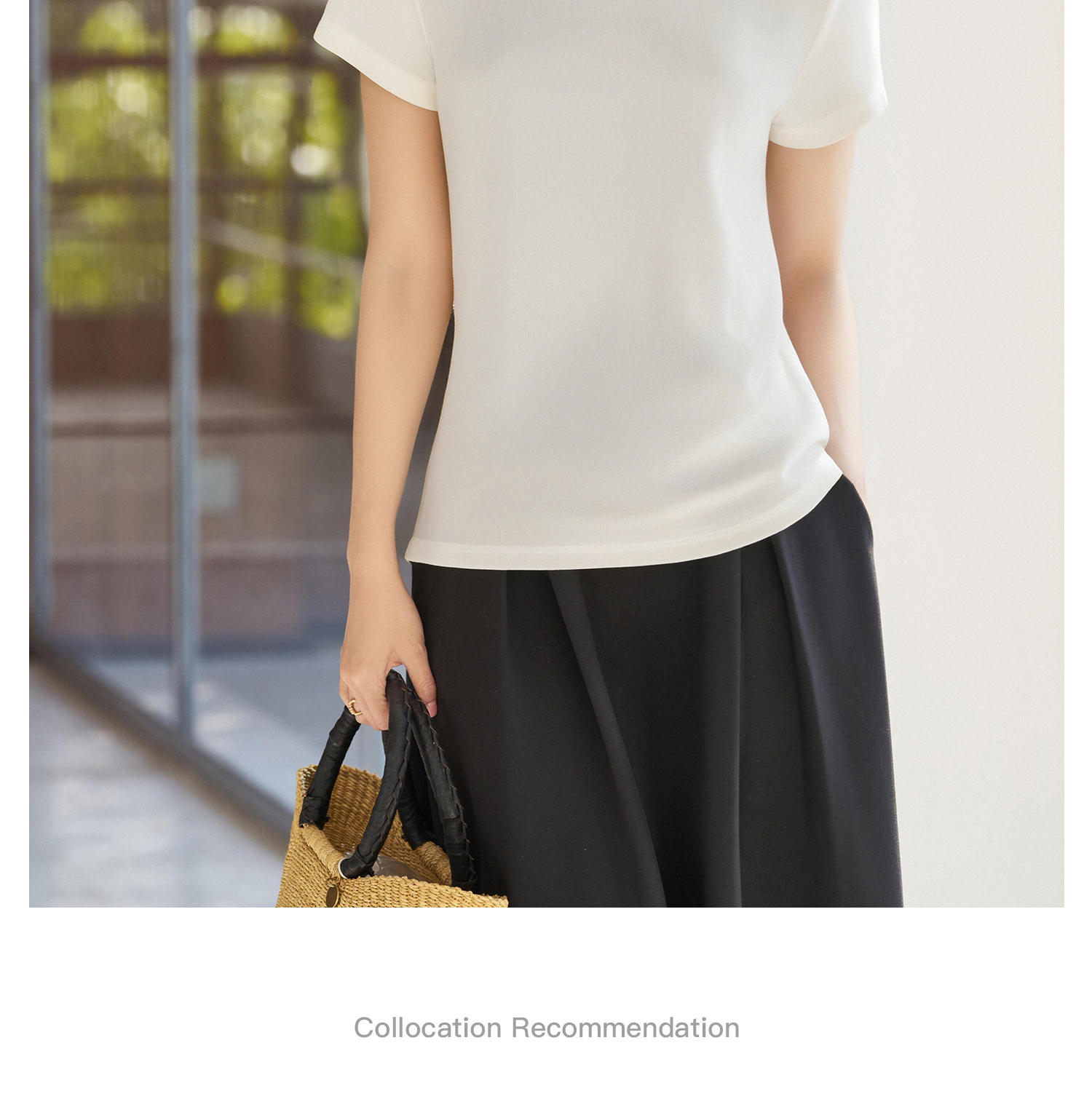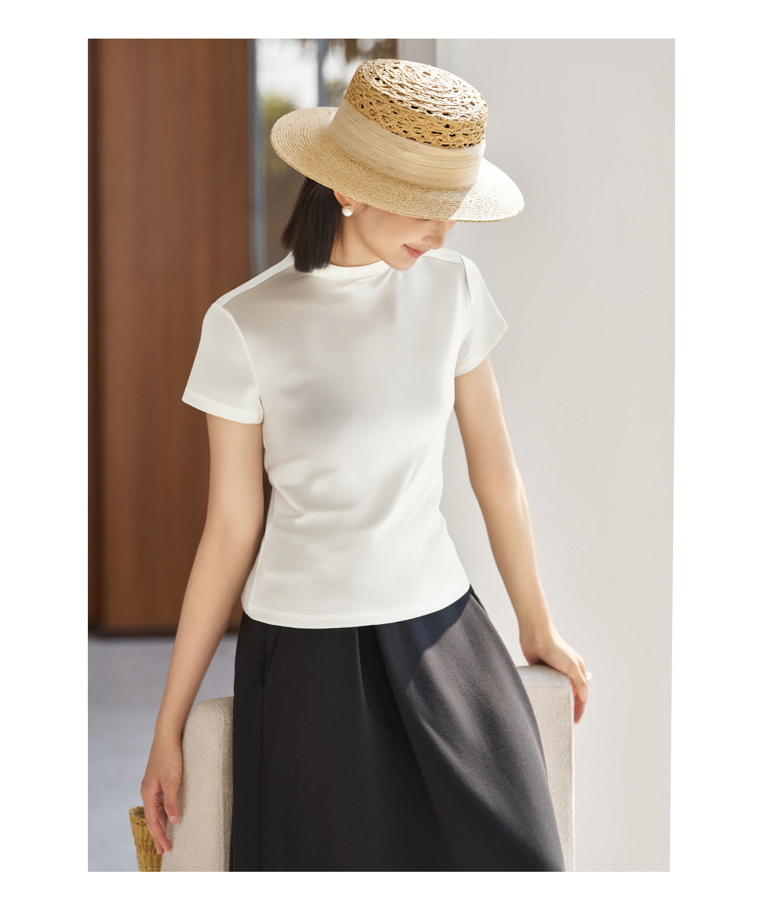 莱赛尔醋酸真丝T恤 时尚极简风纯色T恤 百搭不挑 人 短袖上衣女1244